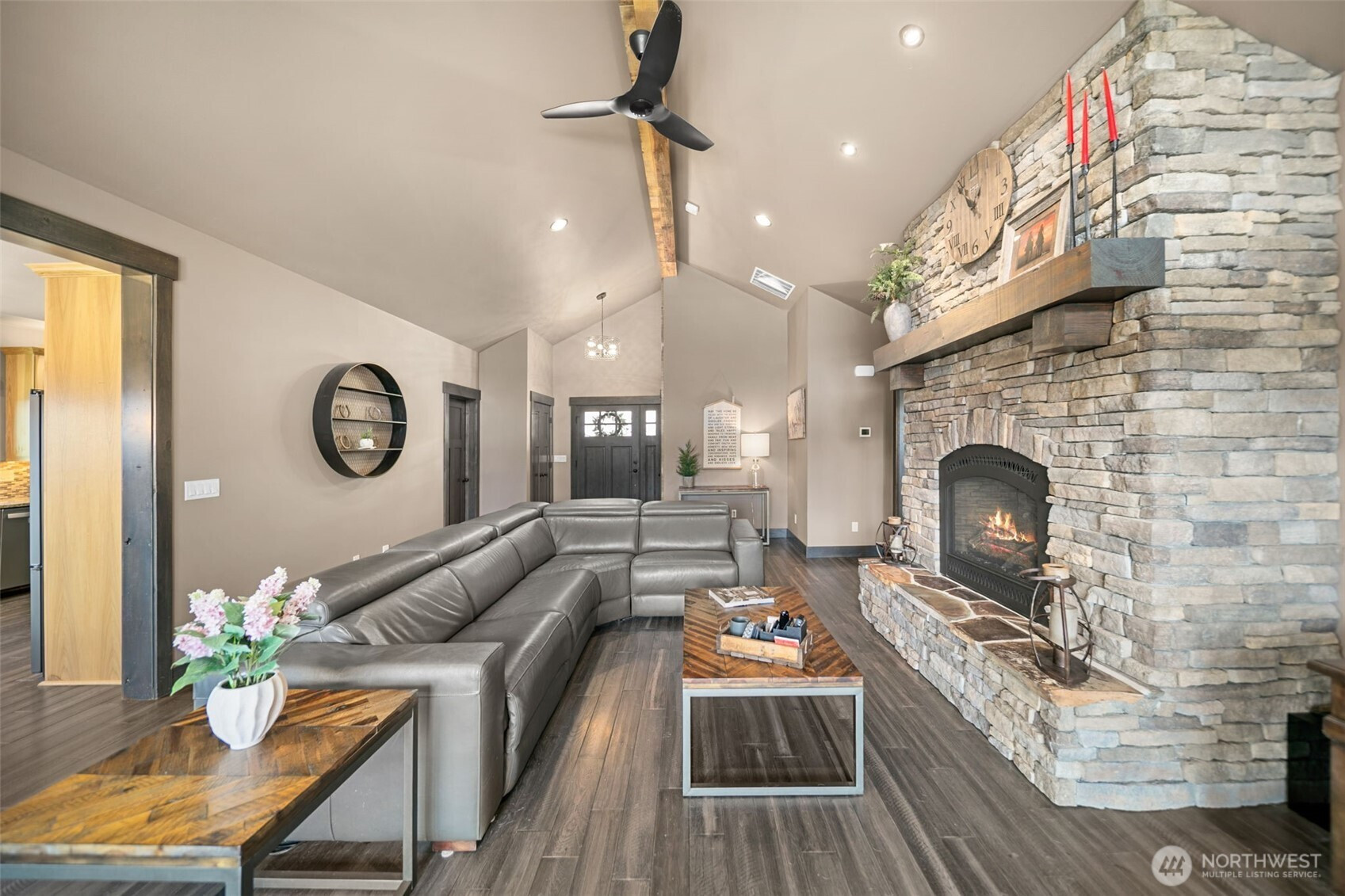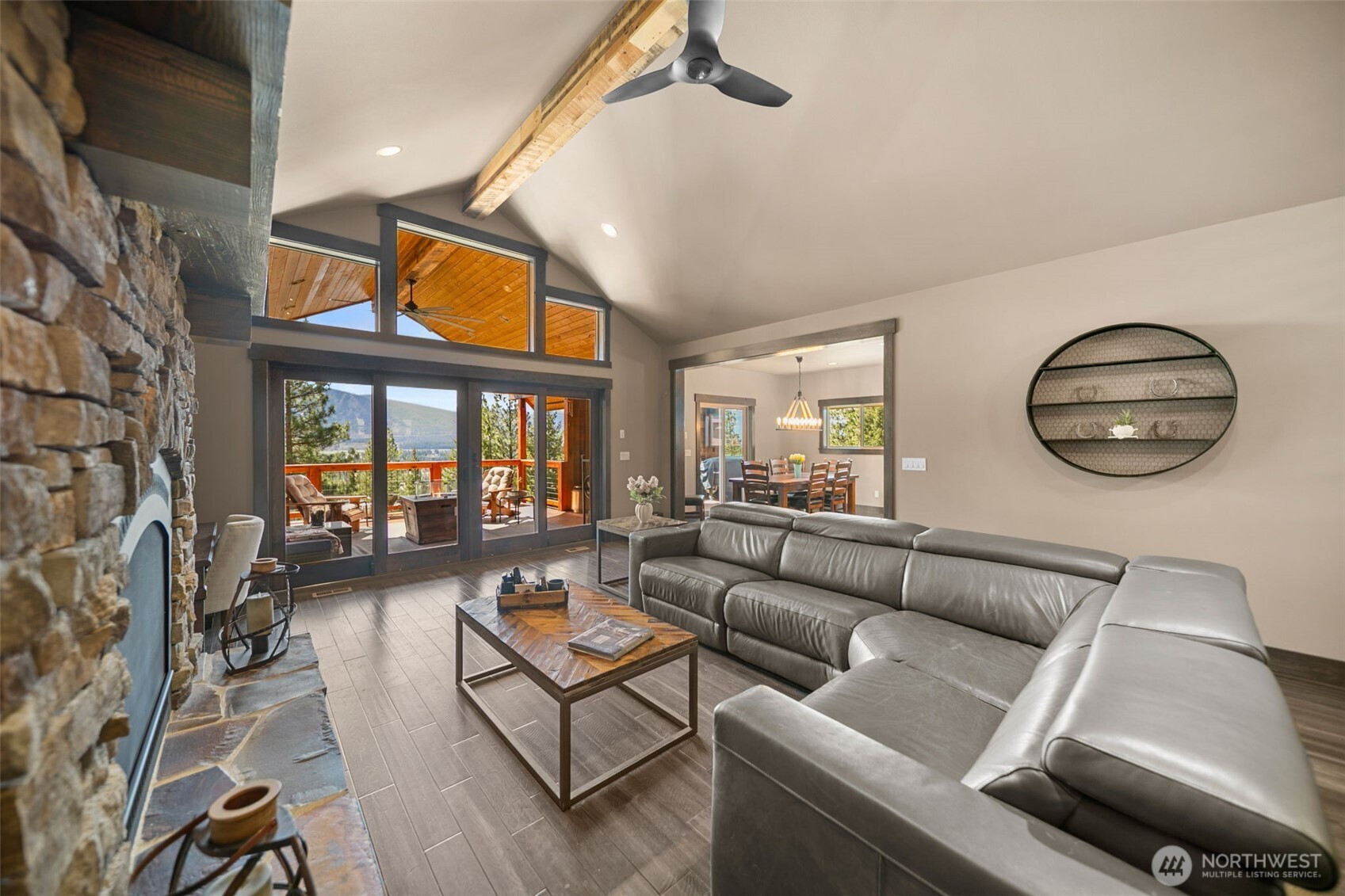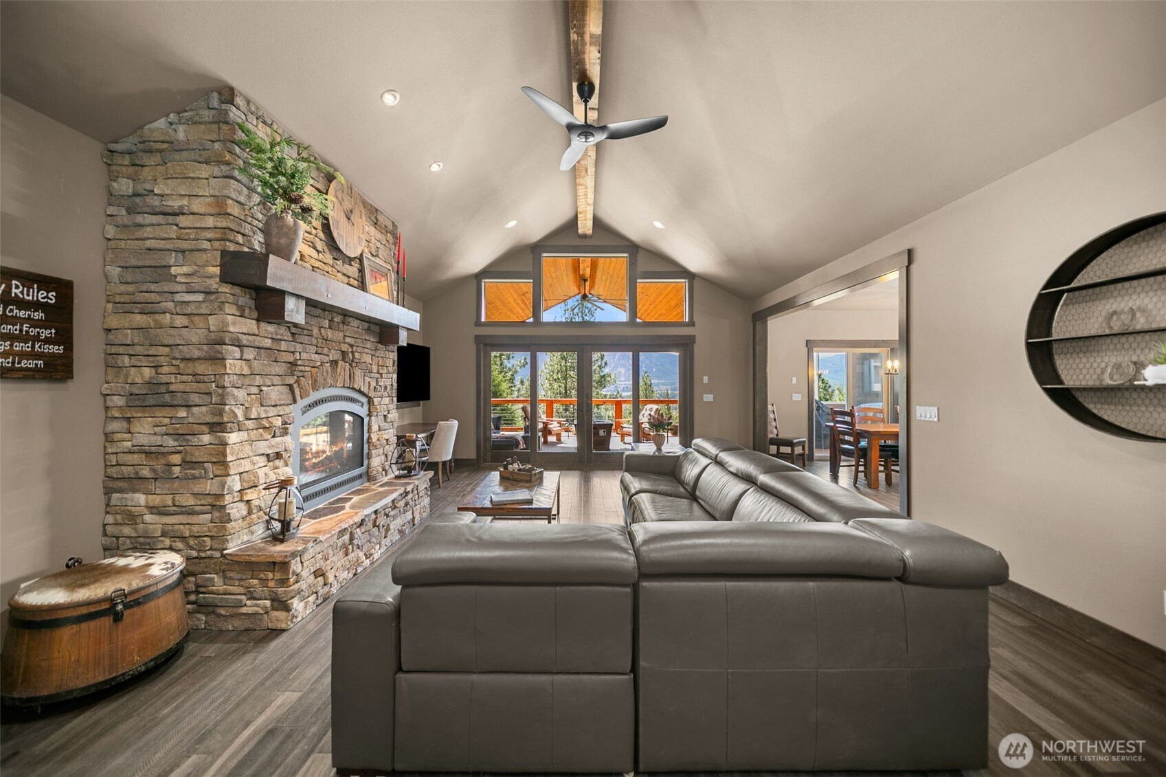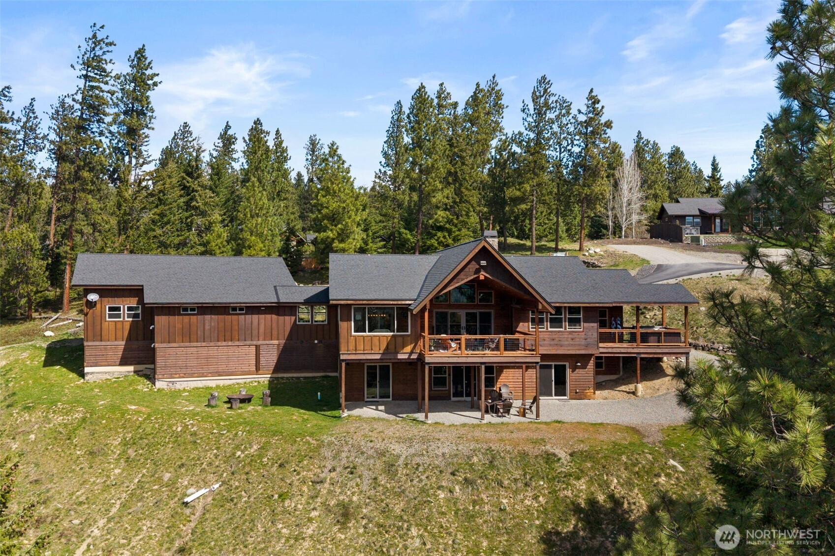 Luxury mountain home on 1 private acre with breathtaking Peoh Point views and designed for an elevated mountain lifestyle. This custom-built home features two primary suites and showcases a stunning great room with soaring vaulted ceilings, floor-to-ceiling stone fireplace, and expansive sliding doors that open to a covered, heated deck-perfect for year-round outdoor living, entertaining, and wildlife viewing. The kitchen has custom cabinetry, granite countertops, and seamless flow into the dining room and main living space. An oversized mudroom with built-in dog kennels & pet washing station adds everyday functionality. The main-level primary suite offers a private fireplace, spa-like bath with jetted tub, walk-in closet, and direct deck access with hot tub for ultimate relaxation. The daylight lower level is ideal for multi-generational living, guests, entertaining, or extended stays, featuring its own separate entrance, spacious rec room with kitchenette, wine cellar, second primary suite, and additional bedrooms-all positioned to capture stunning mountain views. Premium features include a heated 4-car garage (25x40) with 10’ doors, RV hookup and clean-out, whole-home generator, central vacuum, tankless water heater, roof and gutter heat cables, and abundant storage. High-speed internet makes working from home effortless. Located in a private gated community just minutes from town, this luxury home offers unmatched privacy, modern efficiency, and flexible living space.