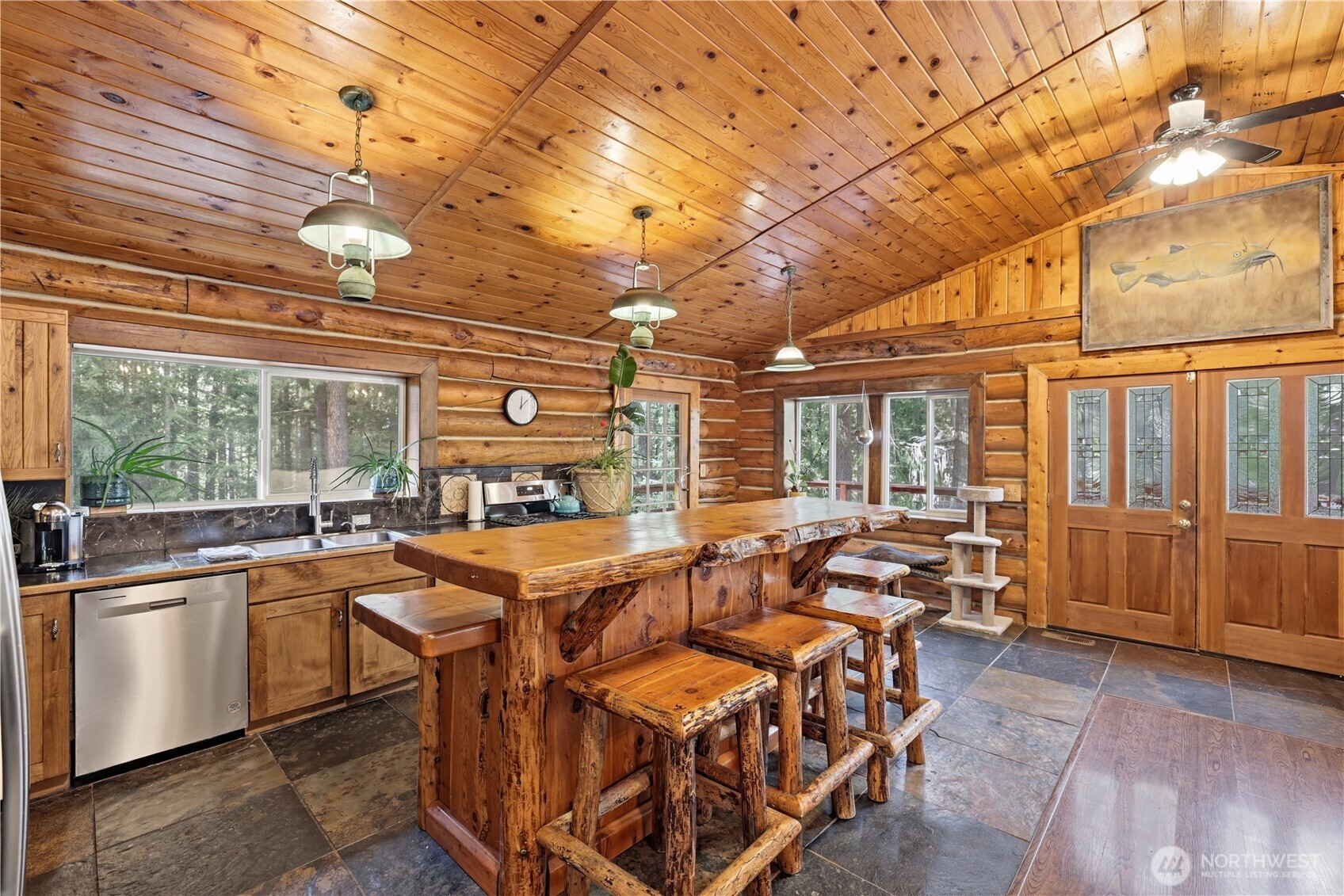 Rustic Charm on nearly 3 private acres. Tucked away in the trees just ouside of Ronald, this authentic log home sits on just shy of 3 acres offering the perfect blend of privacy and mountain character. Surrounded by towering evergreens, the setting feels like your own secluded retreat while still being minutes from year-round recreation. The open-concept kitchen and great room creat a warm and inviting gathering space, ideal for entertaining or cozy nights by the fire. Expansive decking wraps the home, providing multiple spaces to relax, host or simply take in the tranquil forest surroundings. A large detached garage offers plenty of room for vehicles, outdoor toys, or workshop space - perfect for embracing the mountain lifestyle. Located near the highly desirable Roslyn Ridge Community - having access to the community center (with paid dues) this property presents strong Airbnb/short term rental potential or an incredible full time residence or weekend getaway. Privacy, character, investment opportunity. Mountain Living at it's best.