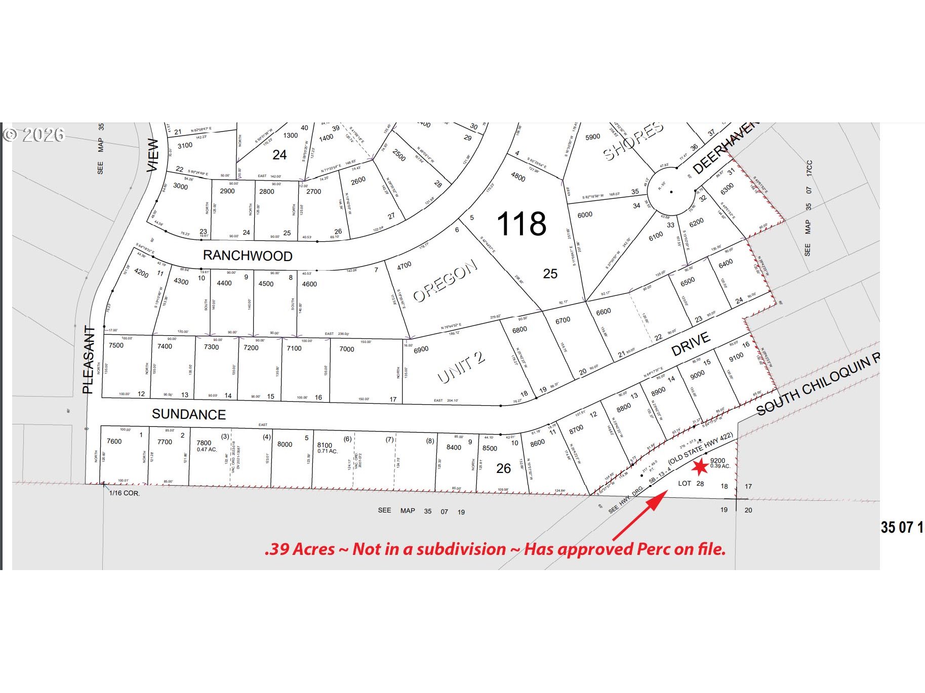 Very attractive triangular-shaped corner parcel. Has large pine tree. Well needed, septic needed. Old approved perk on file at the county per the seller. Power and phone on the road and close by. Nice mountain view lot close to Agency Lake, golfing, boating, and other recreational activities. Great parcel on paved road for modular or stick-framed home. Has a previous expired perc on file with the county.