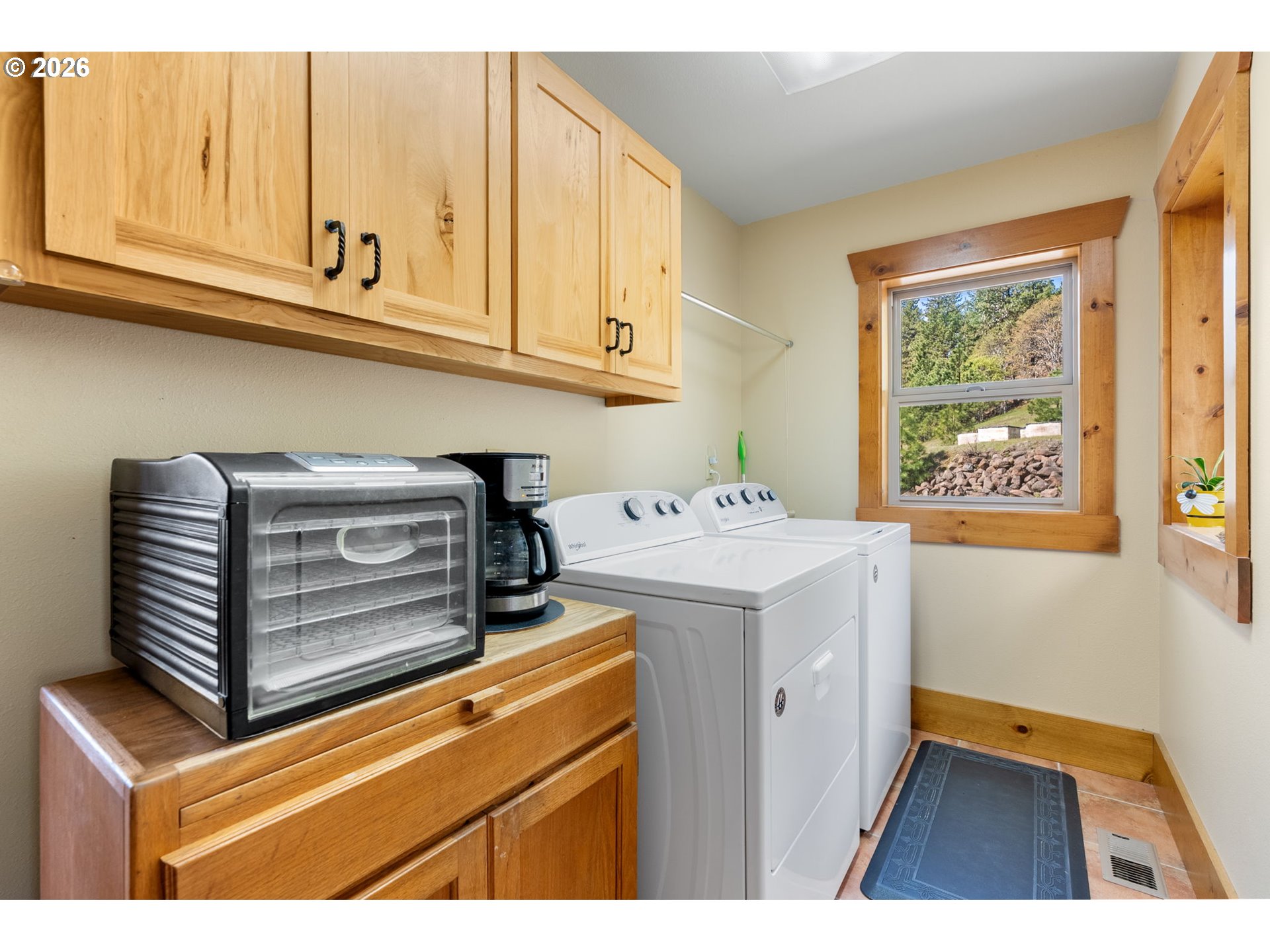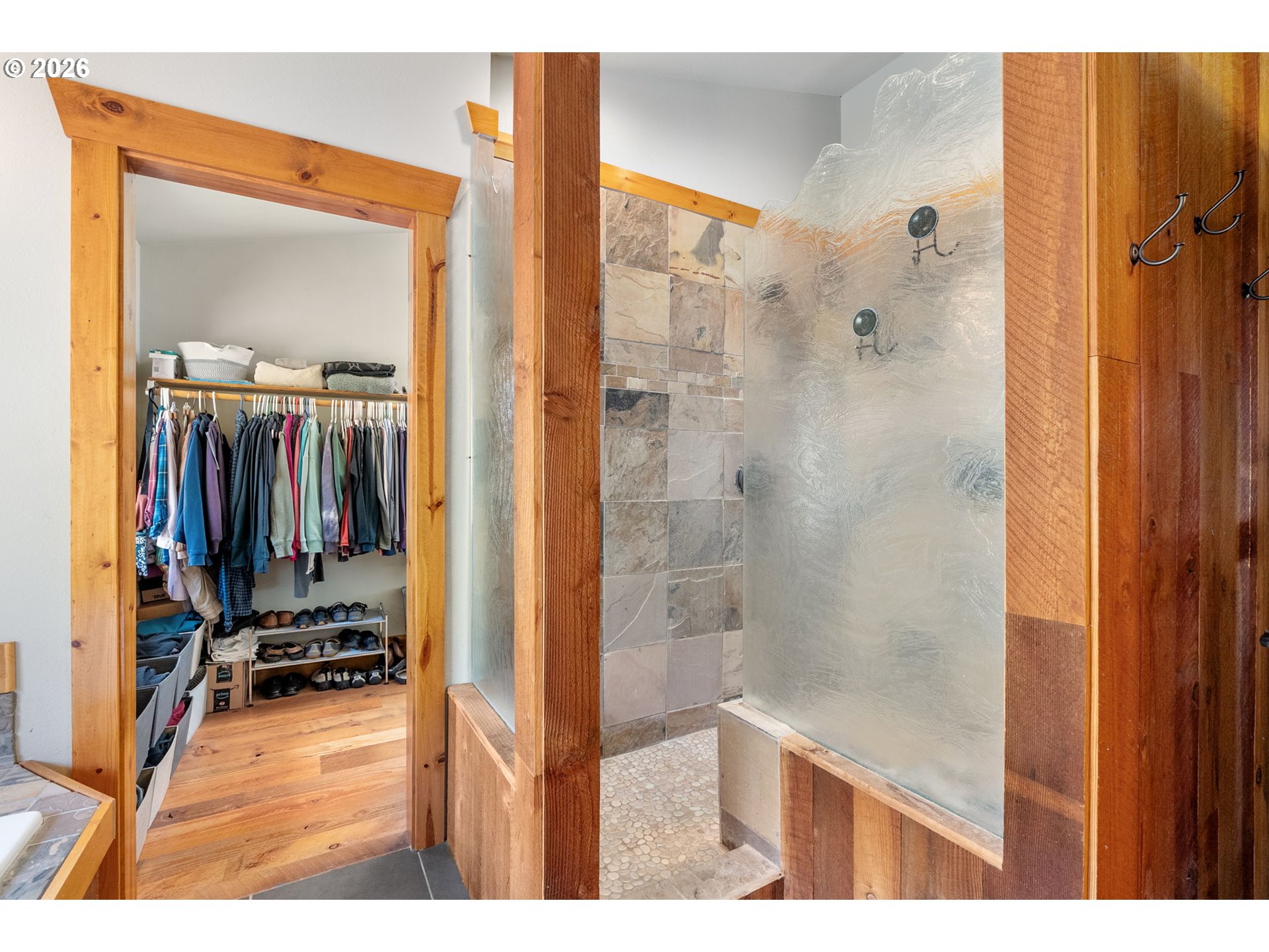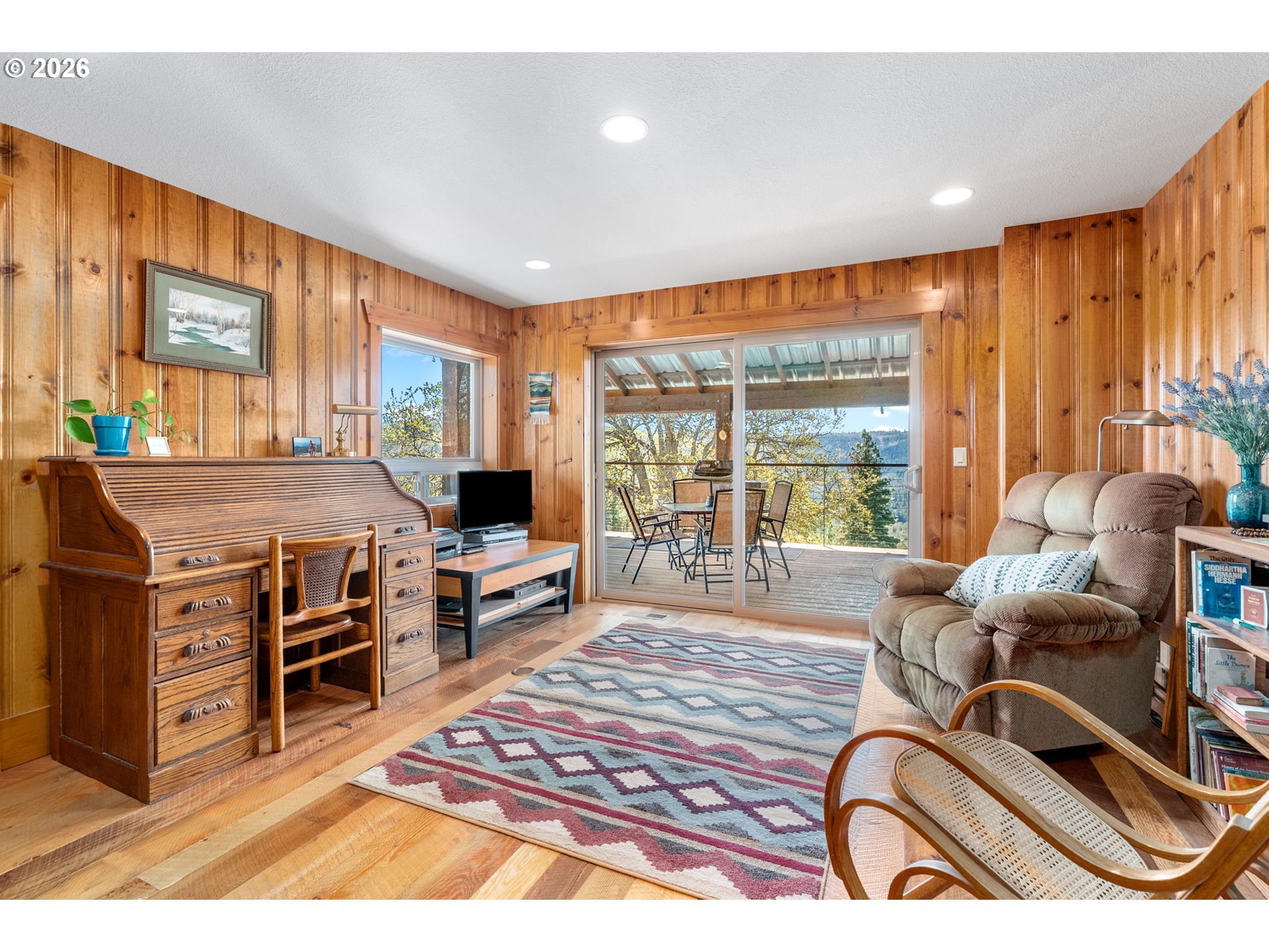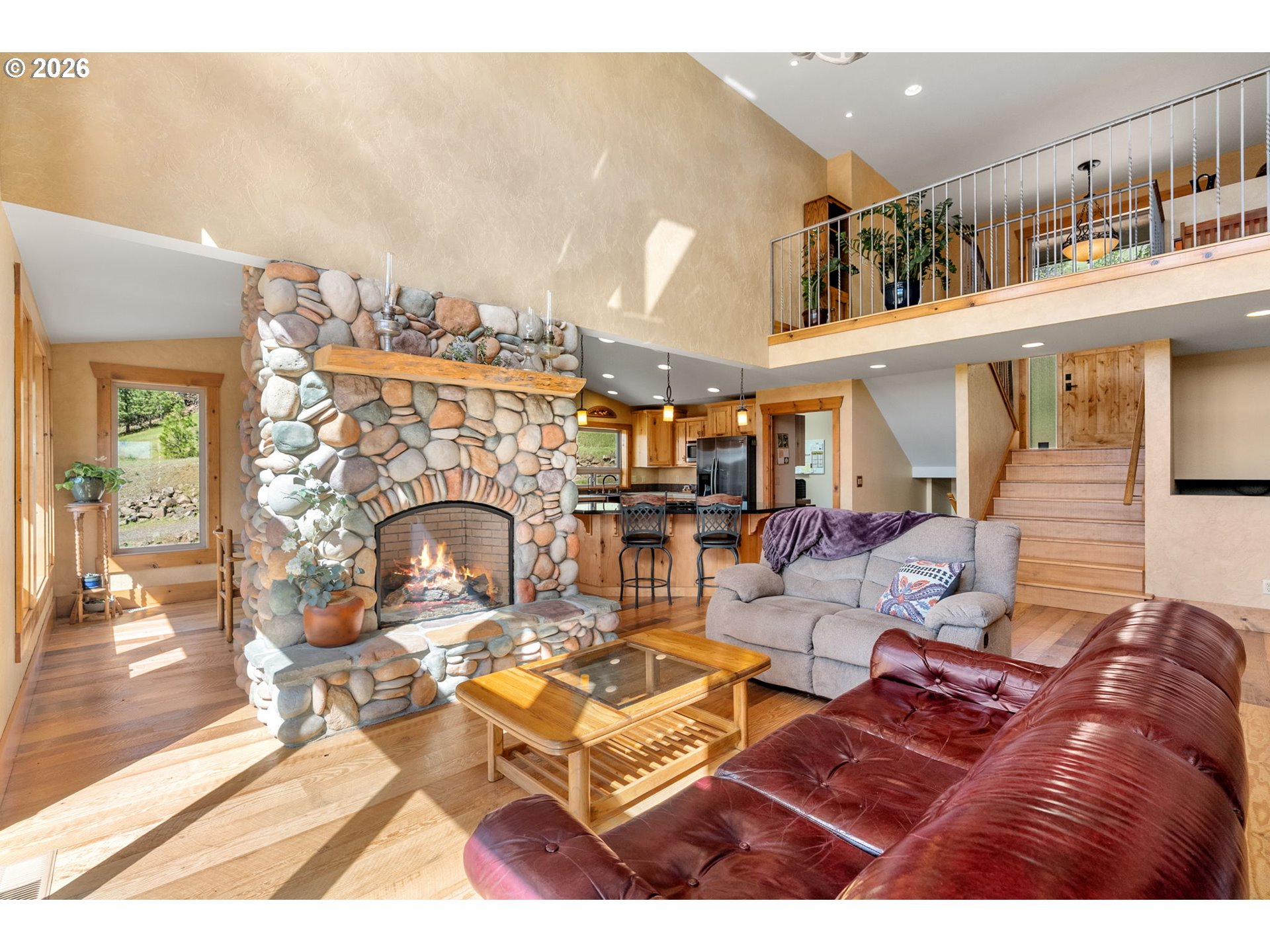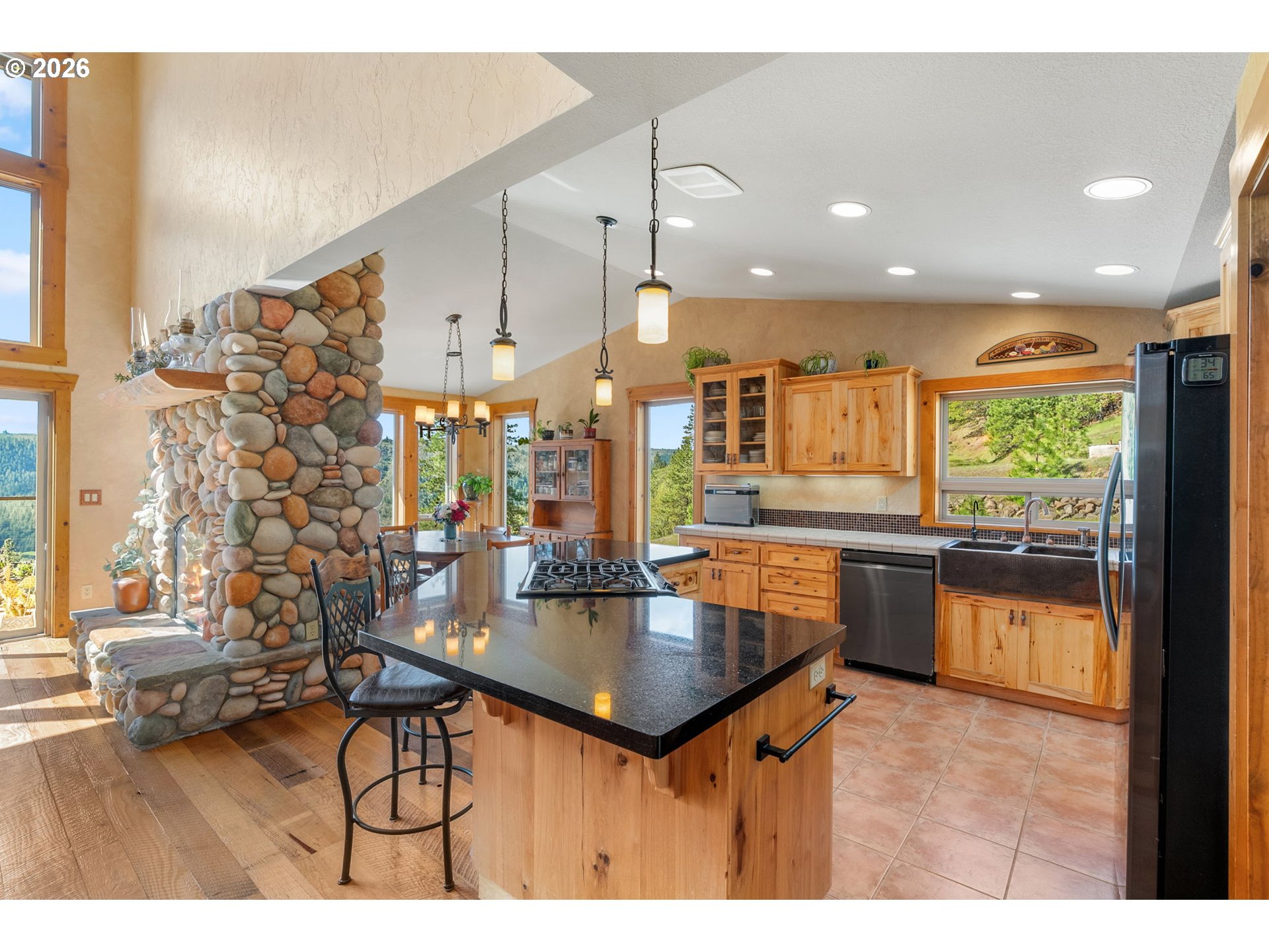 Welcome home to this custom lodge-style home set on just over 20 acres of private, wooded landscape overlooking the Klickitat Canyon. Thoughtfully designed to embrace its surroundings, this three-story home offers expansive decks positioned to capture sweeping territorial views and create a seamless connection to the landscape. A beautiful river rock fireplace anchors the main living space, complemented by hardwood flooring, quartz countertops, and an open-concept kitchen and living area designed for both everyday living and entertaining. Flexible layout offers multiple living options, with the choice of a main-level or upper-level primary, a lower level that can function as a bedroom suite or bonus living space, and a spacious main-level room ideal for an office or additional bedroom. Enjoy a large walk-in shower, relaxing soaking tub, and heated tile floor in the primary bathroom. Wide staircases provide an effortless flow between levels. The property offers a lovely blend of privacy, natural beauty, and usability, with established hiking and biking trails throughout and several tranquil spots to sit and take in the quiet and surrounding wildlife. The south portion of the acreage lends itself to a variety of uses—from your own private campground or RV setup to space for an additional outbuilding or shop. Ideally located near the 31-mile Klickitat River Trail for year-round hiking, biking & fishing. Enjoy nearby dining at Huntington’s Steakhouse or the local Klickitat coffee shop & café, or take a scenic drive along Hwy 142 to Lyle for world class wineries & hiking or the many restaurants & shops of Hood River or White Salmon, then return to a setting that feels private, peaceful, and distinctly your own.
