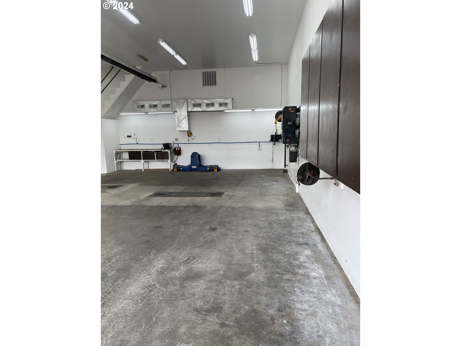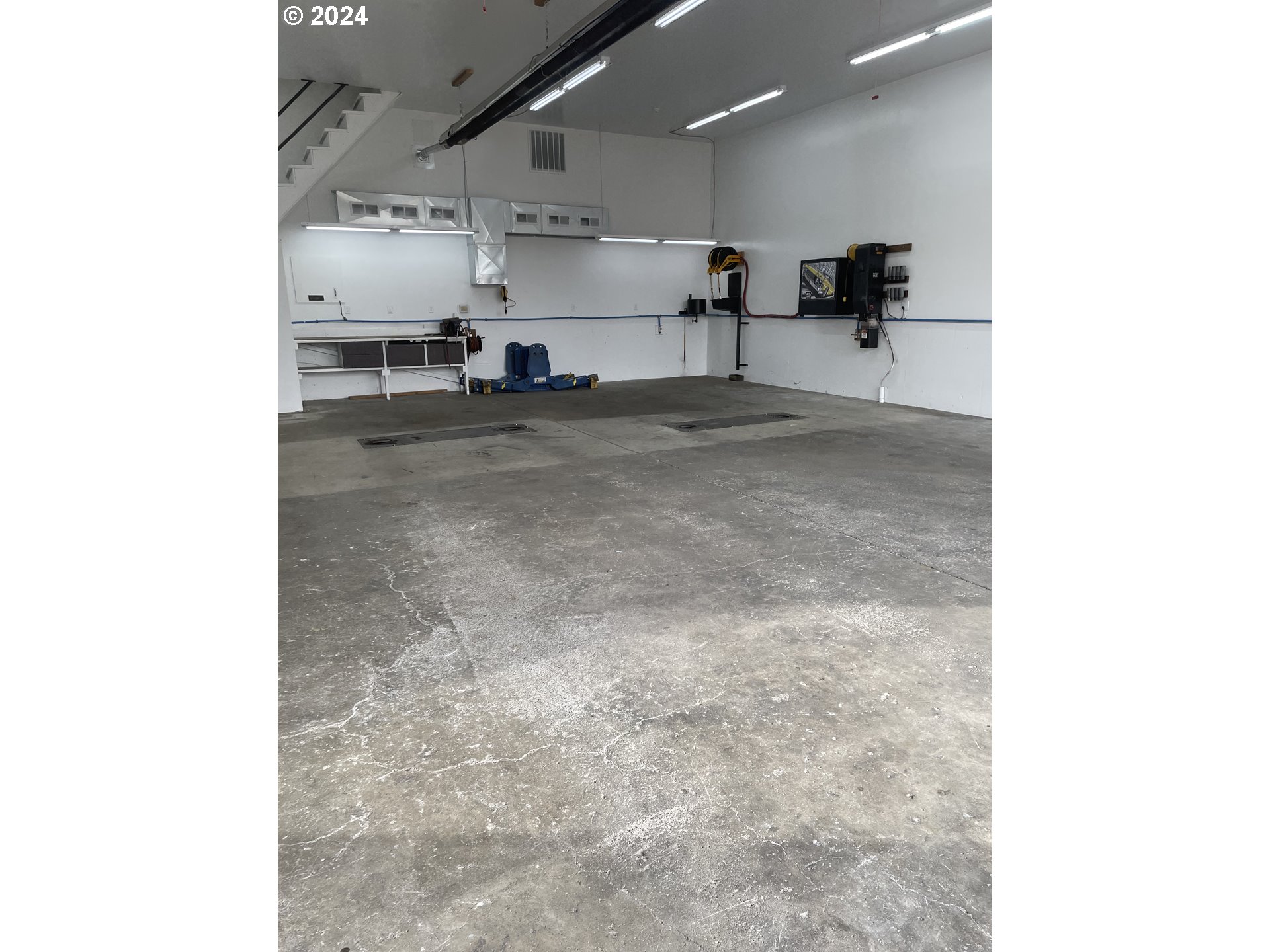 Bring your tools or other ideas this mostly turnkey auto shop is ready to go. It is outfitted with two lifts, air compressor, exhaust system, 200 amp 240v 3 PHASE power, waste oil and fluid reservoir's. Shop has radiant tube heat and ac unit for comfort. Has separate space for office and additional storage space inside and out outside building. Tons of parking. Currently used for equipment storage for an HVAC company, prior to that was a long operating auto shop. Many options for use though.