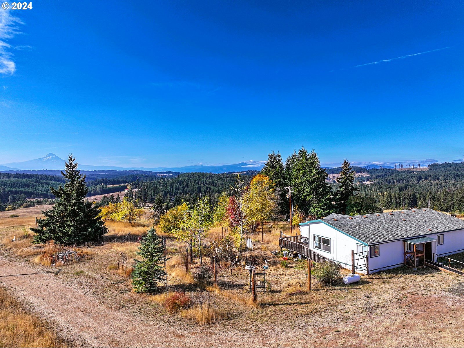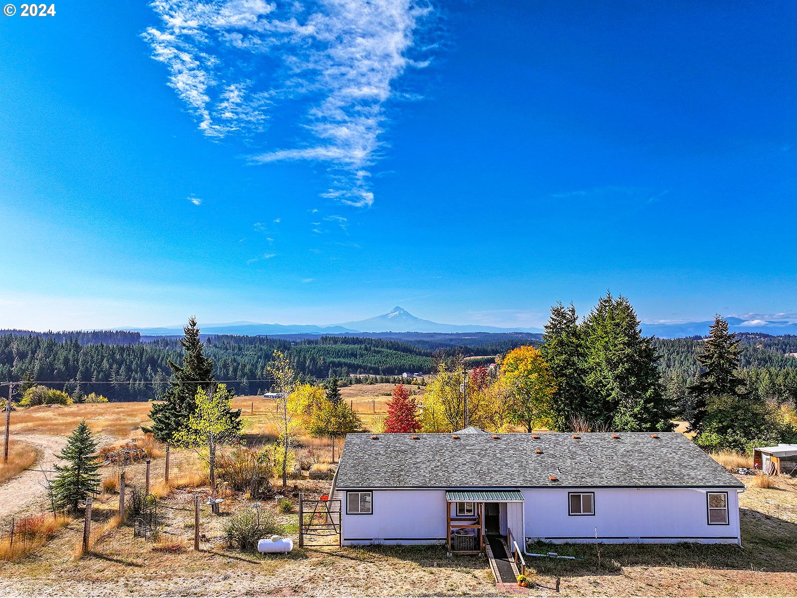 Sitting atop a scenic knoll with captivating views of Mount Hood and peaks of Mt Adams sits this 45 acre dream property with potential to divide based on R10 Zoning. The existing spacious 3-bedroom, 2.5 bathroom with bonus room built in 2000 offers both comfort and privacy. The home boasts a generous layout with room for hosting friends & family. The open floor plan includes a well-equipped kitchen with large Island & Pantry, a cozy living area with lots of windows that fill the space with tons of natural light, allowing you to take in the beautiful mountain & valley views from multiple vantage points.The property’s gentle rolling terrain enhances its charm and usability, making it ideal for a variety of outdoor pursuits or future expansion. Zoned for 10-acre minimums, this land offers ample opportunity for potential development or creating your own private retreat. For those with a green thumb, a fenced-in garden awaits, providing a secure space for growing flowers and vegetables.Enjoy peaceful, private living with a short 20 minute drive to your local Harvest Market, 30 minutes to the Hood River bridge and only 1.5 hour drive to PDX international airport. Whether you’re looking for a homestead or development opportunity this property offers boundless possibilities in an unmatched setting. Buyer to do due diligence on divisibility and all aspects of property for their intended use. Appointment only with buyer agent. Private driveway-no drive-bys.