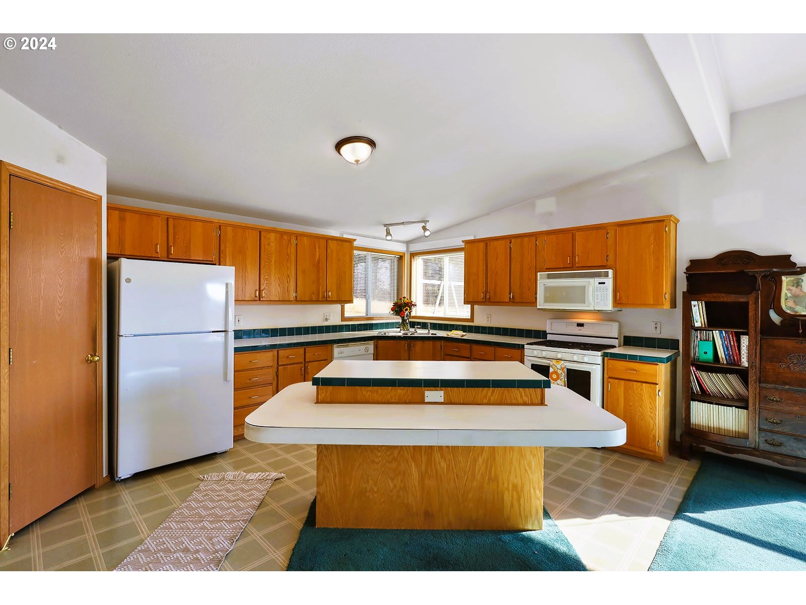 Dishwasher, FreeStandingGasRange, FreeStandingRefrigerator, Island, Microwave, Pantry, Tile