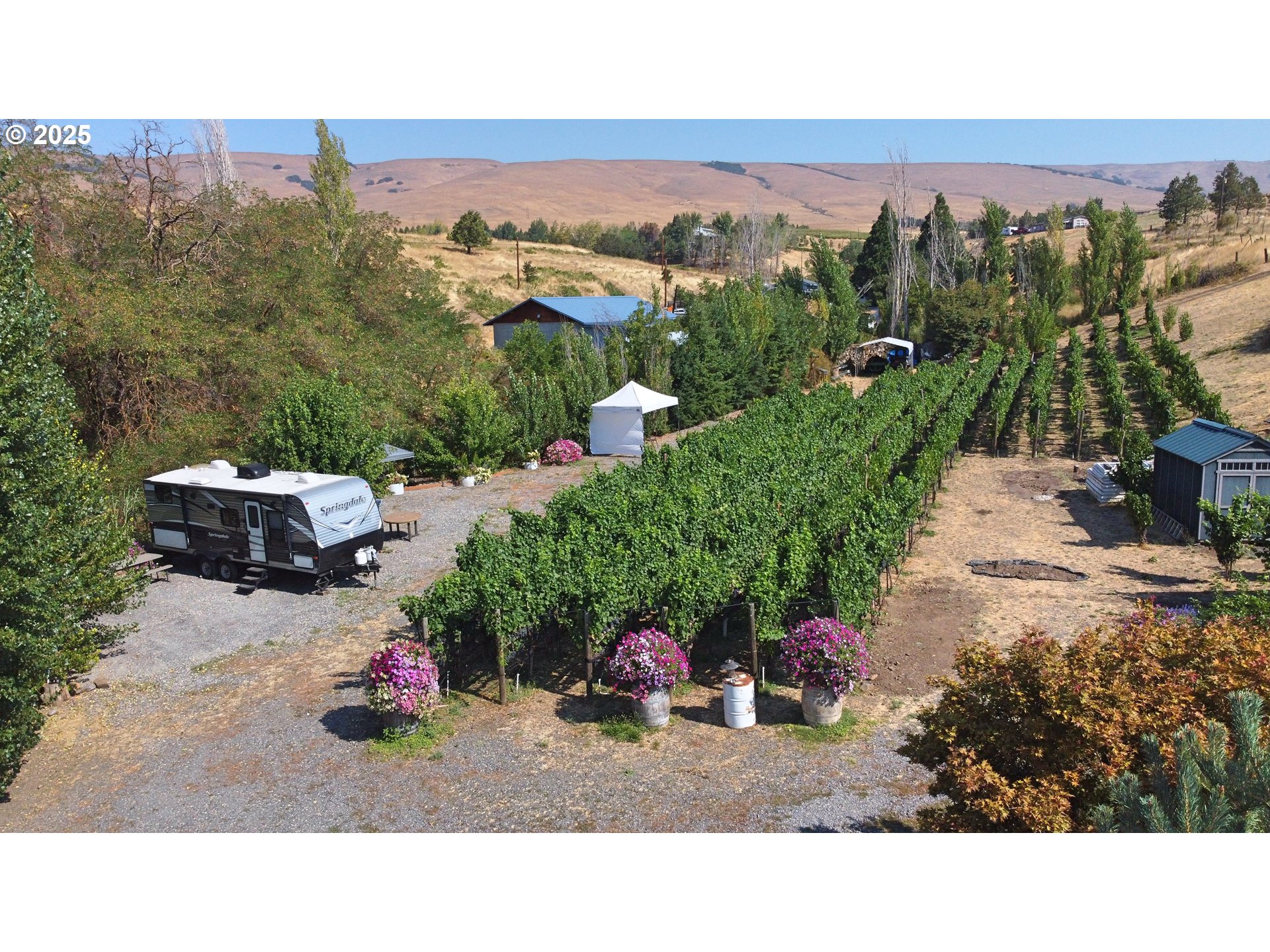 Vineyard property in the Columbia AVA! This boutique vineyard has produced quality wines and has a strong following thanks to the well established Cab Franc and Malbec vines on this 6+ acre property. All the makings for a successful business are here including a shop for processing and equipment, insulated and conditioned storage buildings for finishing your product, and over 2.5 acres of maintained vines . On site their are two RV pads along a seasonal creek complete with hookups great for seasonal help or visitors. Flexible RR2 zoning allows for a range of development options as well. This is a beautiful setting among the hills of the Columbia Gorge with a view of Mt Hood from the top of the property.