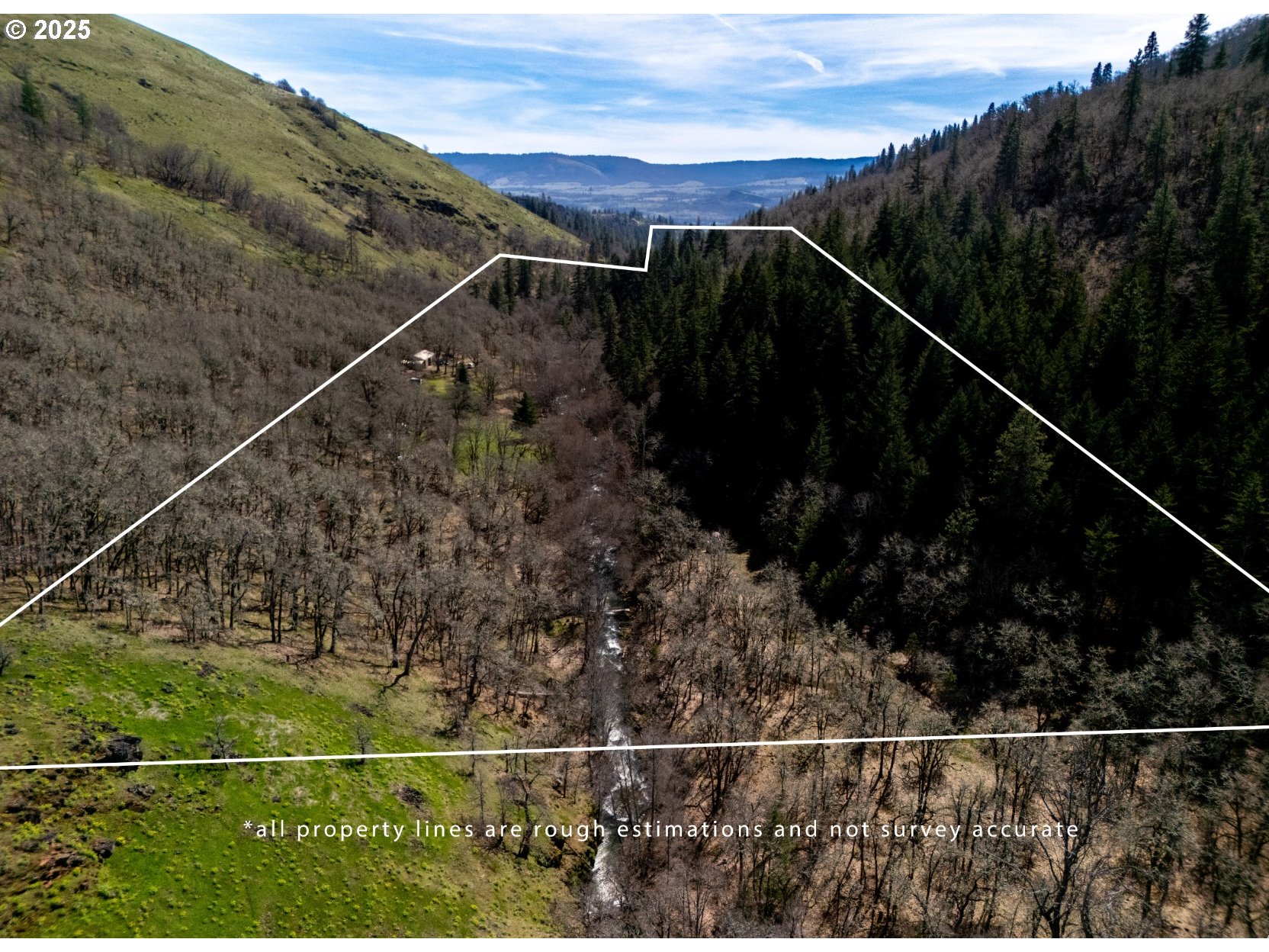 (503) 893-8874Columbia Gorge shangri-la!Breathtakingly rare 38 acres with approx. 1/2 mile frontage on Major Creek, pasture, garden and trails and swimming holes. Originally served as a hunting cabin in the 40s,the NW contemporary, 2 beds,2 bath 1780 sq ft home is fully off the grid and has provided the seller comfort for over 43 years. With 4 outbuildings including a 60X30 metal building, and an 8x12 green house, there is ample space for all your toys, implements and plants. The Hood River Bridge is about 12 miles and The Dalles bridge is 18 miles making all the world class recreation, wineries, mountains, hiking and more within easy "striking" distance. The 3 acre pasture is suitable for livestock and the fenced in garden provides the bounty! The beautiful property is located just E of Catherine Creek and shares the same mix of plants and wildlife unique and protected to the area.Great for meditation rereat. Major Creek Rd is a county maintained road. Bordered by USFS and private land. Located in the CGNS, General management.Suitable for prepers.