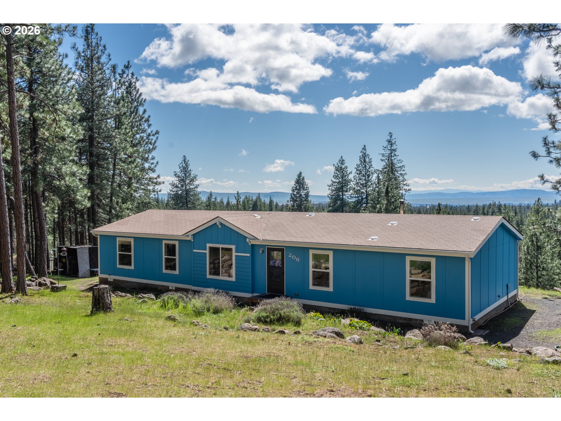 Escape to the peace and privacy of country living with the best of both worlds, a mountain view AND being surrounded by trees. Nestled on fully fenced 5 wooded acres in a neighborhood with a private road, this beautifully updated property offers the perfect blend of seclusion, comfort, and breathtaking scenery.This house is spacious; with four bedrooms, two bathrooms and a bonus room. It has been thoughtfully updated with a new heat pump, new windows, new gutters, fresh exterior paint, new carpet, and fresh interior paint, making it truly move-in ready. Inside, you’ll find a large mud room, a giant master suite, a den or sewing room off the kitchen, a dedicated laundry room with utility sink, and beautiful natural light from solar tubes in the closets and bathrooms. A cozy wood stove adds warmth and charm, creating the perfect place to gather on snowy winter evenings.Wake up each day to a stunning Mt. Hood view out the master bathroom, kitchen, living room and back bedroom. Located in the foothills of the Simcoe Mountains, this home offers the quietness of country living with easy access to the small town of Goldendale.Outside, the property shines with two gated entrances, woods for kids or animals to explore and a sturdy fence for amazing security. Spend evenings around the fire pit with a view, taking in the mountain scenery and peaceful setting. With two internet lines, this home is also ideal for remote work or modern connectivity needs.A rare opportunity to own acreage with views and updates, situated in a prime country setting just 10 minutes from town.