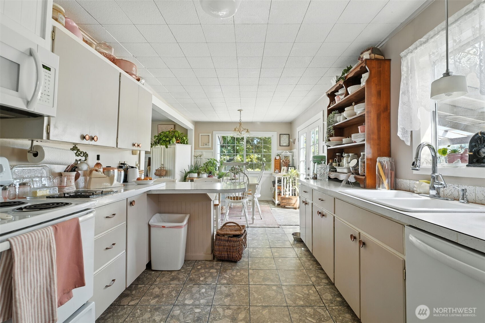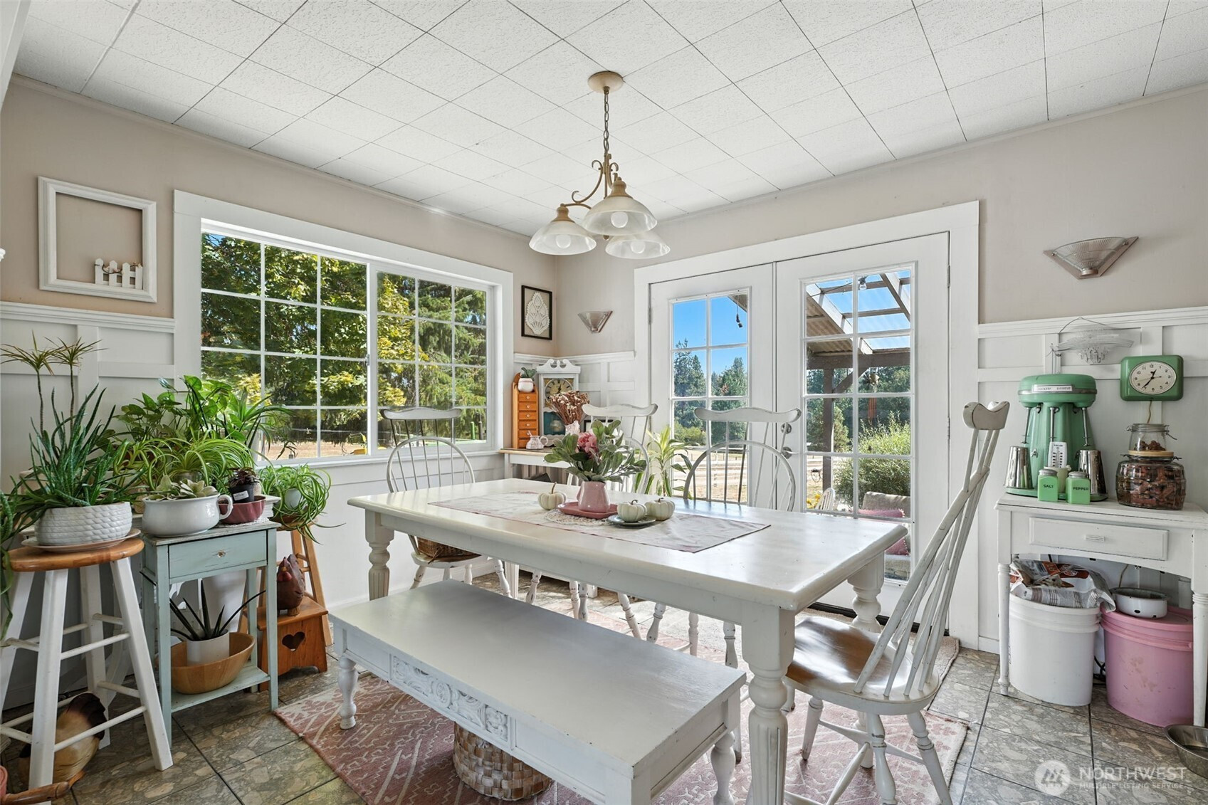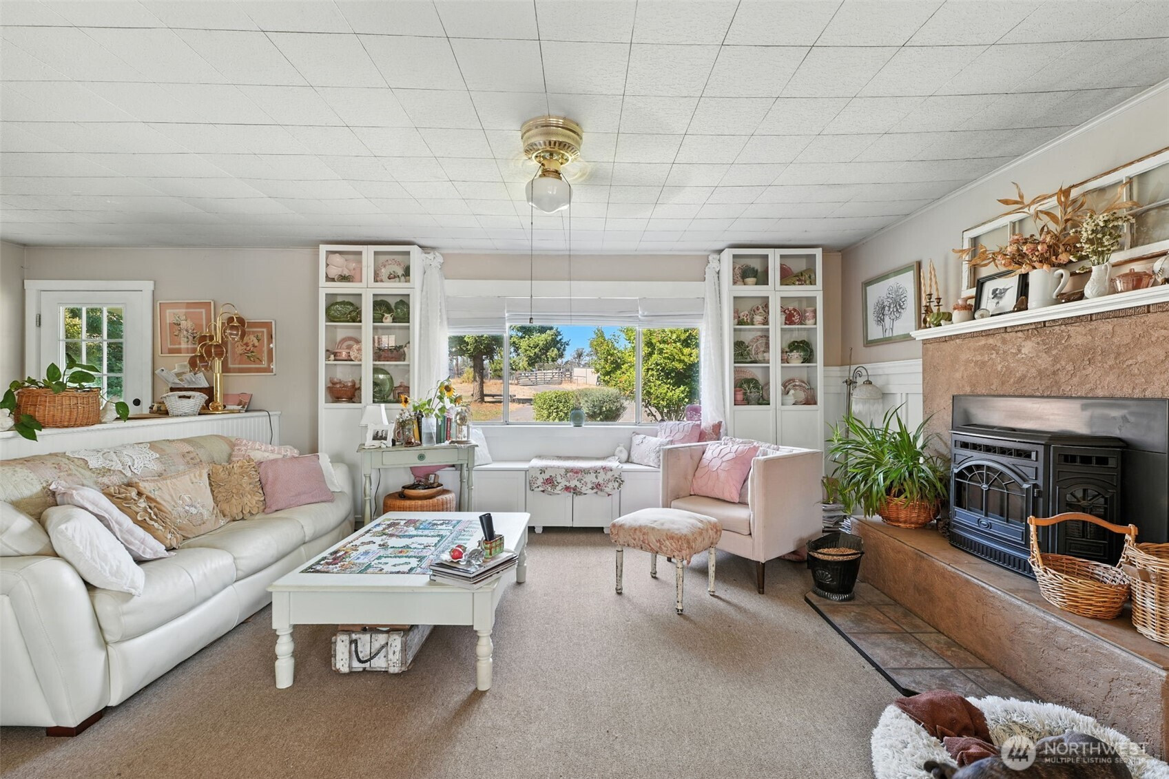 Adorable rambler nestled on a sprawling 6.85-acre property! Step inside to a bright entry leading to the inviting living room W/cozy brick-surround FP. The dining area W/custom wainscoting & French doors opening to the covered patio W/garden views. The galley-style kitchen provides ample cabinetry, bar seating, & window overlooking the backyard. Home offers 3 bedrooms & 1.75 baths, blending comfort & function. Outside, enjoy a covered patio, lush gardens, & plenty of room for RV parking. Equestrian-friendly W/barn, outbuildings, & open space—perfect for your horses, hobbies, or farm life! Creek bordering back property line W/water right access for irrigation & old spring W/pump on the property to access, in addition to the private well.