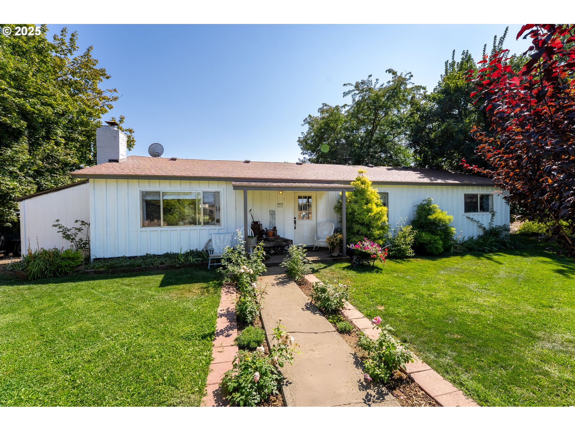 Adorable rambler nestled on a sprawling 6.85-acre property! Step inside to a bright entry leading to the inviting living room with cozy brick-surround fireplace. The dining area with custom wainscoting & French doors opening to the covered patio with garden views. The galley-style kitchen provides ample cabinetry, bar seating, & window overlooking the backyard. Home offers 3 bedrooms & 1.75 baths, blending comfort & function. Outside, enjoy a covered patio, lush gardens, & plenty of room for RV parking. Equestrian-friendly with barn, outbuildings, & open space—perfect for your horses, hobbies, or farm life! Creek bordering back property line with water right access for irrigation & old spring with pump on the property to access, in addition to the private well. Check out the virtual tour, or call your favorite agent to schedule a showing!