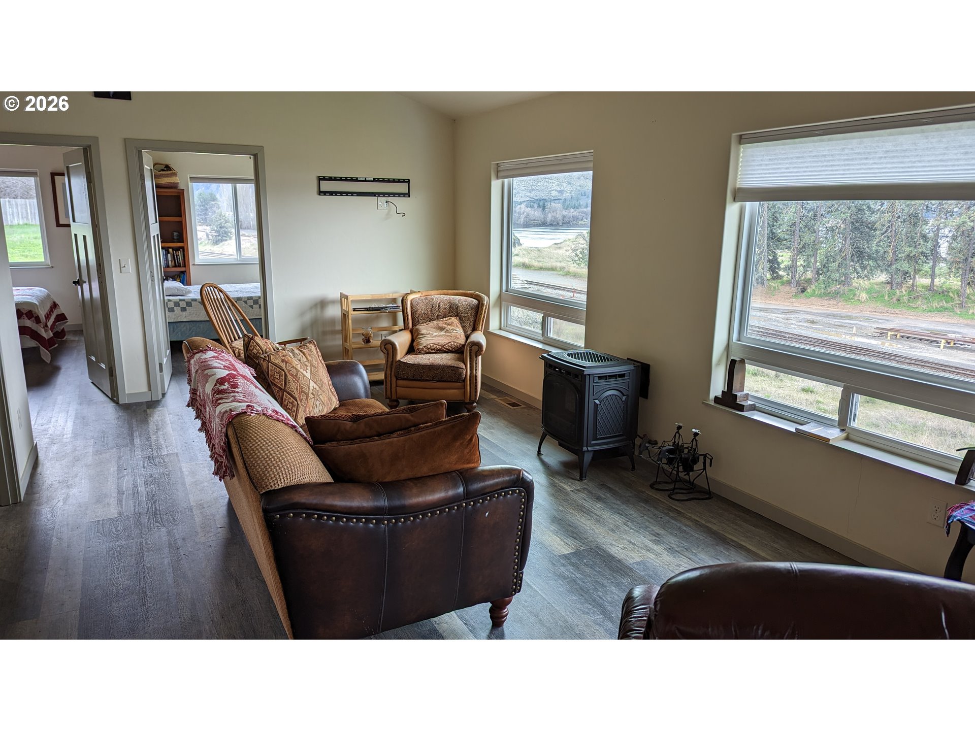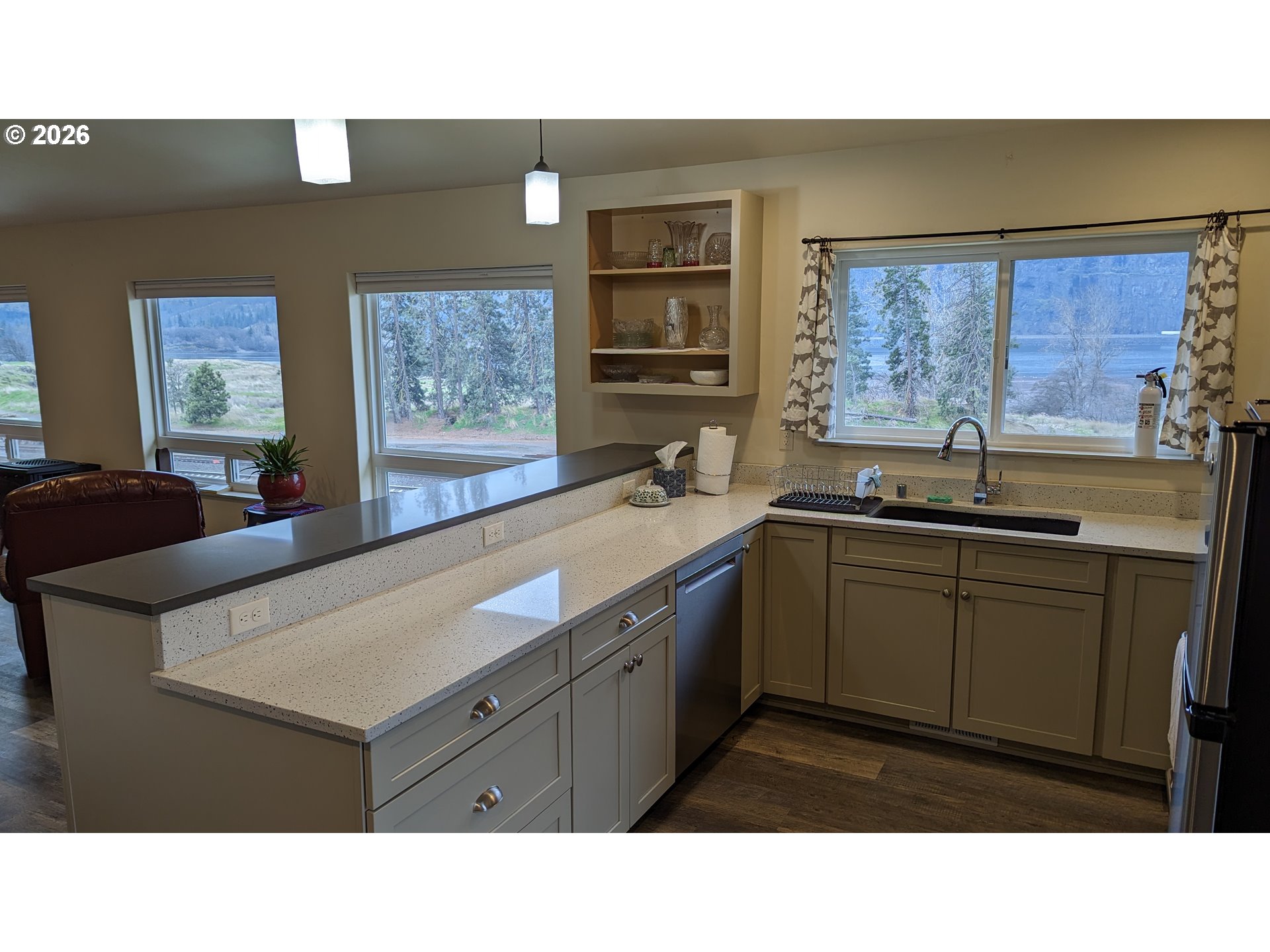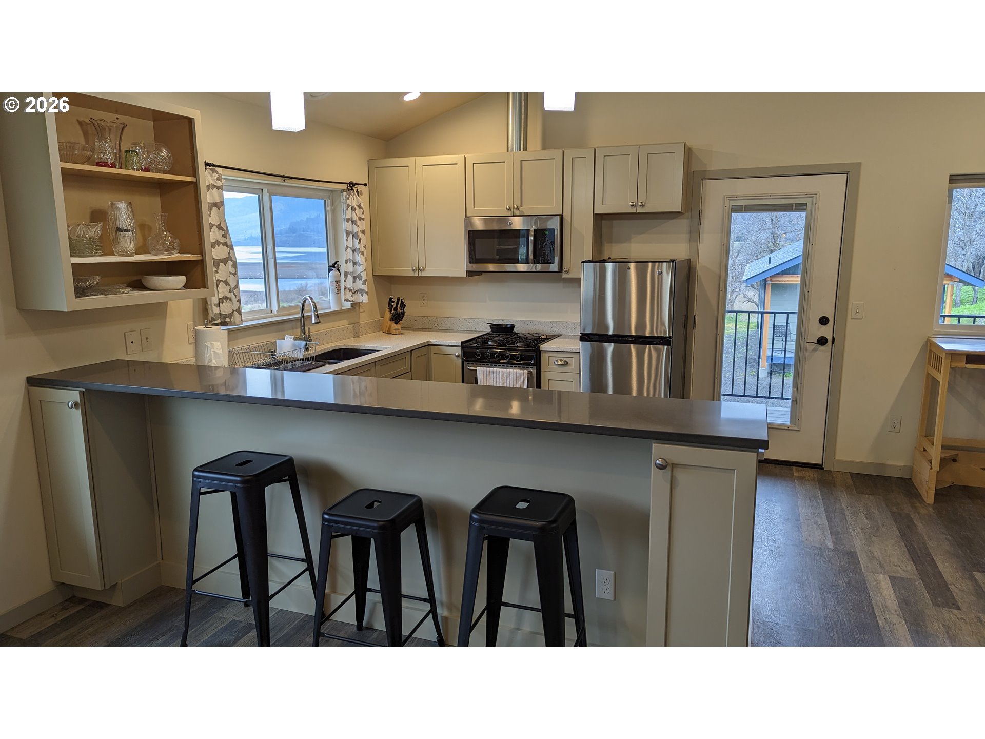 Unique and flexible space tucked on the west end of Lyle. Main house, office and ADU all have forever views to the west of the Columbia River, Burdoin Mountain and Oregon Hills. Excellent finishes in both main house and ADU including quartz countertops, wood cabinets, up/down shades, LVT flooring, all LED bulbs and Big Leaf Maple accents. Basement of main house is insulated and has exceptional storage as well as a bonus office (with a western river view) in the west end of the basement. County Proval shows the ADU at 640 sf. Detached garage of 960 sf has 220 power as well as 220 ceiling mount heater. 10 x 24 carport attached to the garage/shop provides covered parking adjacent to the main house entry. Much of the garage is currently in use as a wood working shop. Equipment and dust management systems are negotiable and could convey outside of escrow. Full RV connection setup on the east side of the shop/garage. Total square footage includes the 640 square feet that the ADU consists of. Garage shop built in 2004. Main House in 2017 and ADU in 2021. This versatile property could be a weekend property with rental income or use it all as home sweet home. Perfect for multi generational use, with all living areas in main floor configurations.