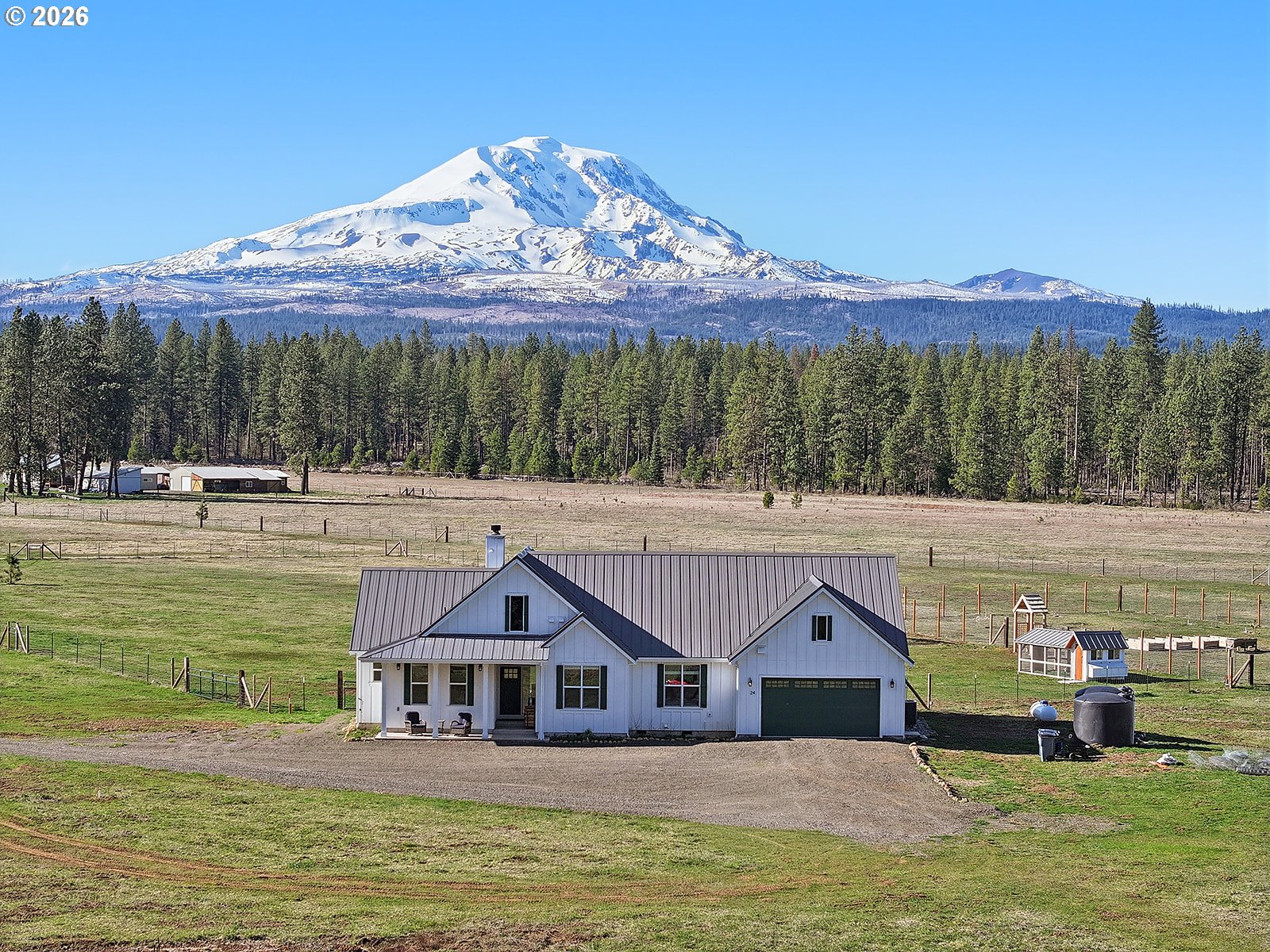 21 Acre Mt. Adams View Legacy Property with Year-Round Creek Set in the heart of Glenwood Valley, this remarkable 21-acre property offers sweeping Mt. Adams views, year-round Bacon Creek frontage, open pasture, and mature trees bordering three sides. The land also adjoins State land, creating a rare setting of privacy, natural beauty, and enduring value. The recently completed custom single-level home was thoughtfully designed with quality finishes throughout, including hickory engineered hardwood flooring, porcelain tile, and quartz countertops. The kitchen is both welcoming & highly functional with an LP gas range and oven, double wall ovens, generous island, pantry, and abundant workspace. From the kitchen sink, take in views across the pasture toward Mt. Adams. The entry opens to a vaulted great room anchored by a Quadra-Fire fireplace and flowing seamlessly into the dining area—creating a warm gathering space at the center of the home. The private primary suite offers a soaking tub, double vanity, walk-in closet with abundant natural light.Outdoor living includes a covered entry and covered back patio opening to a paver patio and firepit—perfect for enjoying Glenwood’s quiet evenings and wide-open skies. The property has been carefully developed for a productive country lifestyle and includes a Cross Country greenhouse with heat, cooling, lights and water, fenced garden with raised beds and fruit trees, two 2,500-gallon irrigation holding tanks, chicken coop, fenced yard for pets, and mostly fenced pasture. A rare opportunity to own a well-established Glenwood acreage where the land, home, and setting come together to create a property meant to be enjoyed for generations. The current owners have thoughtfully developed the property and now offer the opportunity for the next steward to continue its story.