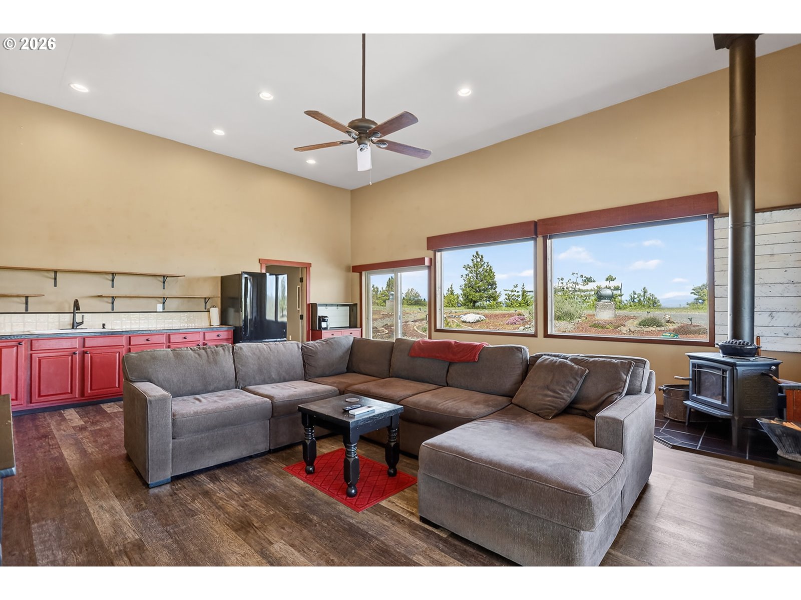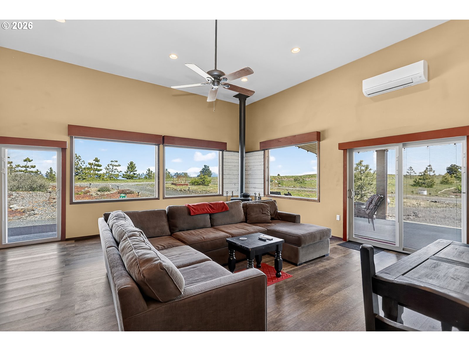 (503) 893-8874Private, view-filled home or vacation property with abundant shop space. This versatile property offers 360° panoramic views of Mt. Hood, Mt. Adams, Stacker Butte, and the Simcoes. There is a seasonal creek that feeds into a pond, a gated entrance, and thoughtful 2024 upgrades throughout the main dwelling. The main 2004 dwelling features 12' ceilings, mini-split for heating & cooling, wood stove, water purification system, generator hookup, and fresh updates including siding, paint, sliding doors, outlets, and more. Car lovers, hobbyists, and anyone who wants lots of storage will love the included outbuildings: an attached 34' x 36' garage with 11' door, vehicle lift, and propane heater (needs a tank); a 2018 detached 36' x 36' garage with 240v power, built in air compressor system w/ hard lines included, and pull-through access; plus a 48' x 24' pole building built in 2023 for RVs, boats, farm equipment, or anything else you desire. Around the property are exterior water spigots, a chicken coop, ample parking and turnarounds, RV dump, and a fully fenced lot at 19.63ac. This is a unique property that is fully permitted and was lovingly built by the current sellers with abundant storage, views, and privacy in mind.