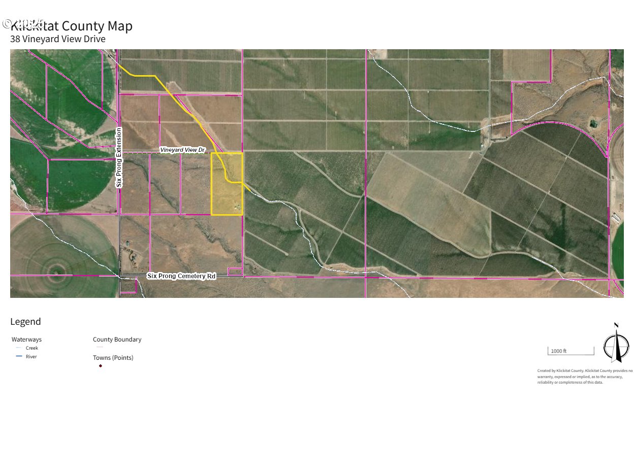 Tucked among the vineyards in Eastern Klickitat County, this captivating 20-acre property along Vineyard View Drive lives up to its name with sweeping scenic vistas in every direction. With well and septic already installed and building permits underway, the groundwork for your dream home is ready to go. A solar power system is already in place, or you can easily connect to traditional utilities via Six Prong Extension Road, where power access is available. A 22x36 pole building awaits its final touches—just add siding and it becomes the perfect shop or RV shelter while you complete the home build. Every construction supply currently on-site stays with the sale, giving the new owner a head start in bringing this charming home to life. The parcel is mostly fenced and includes a handy storage shed, making this a well-equipped, peaceful retreat surrounded by natural beauty and rural charm. Don’t miss your chance to live where the views are as rich as the soil beneath your feet.