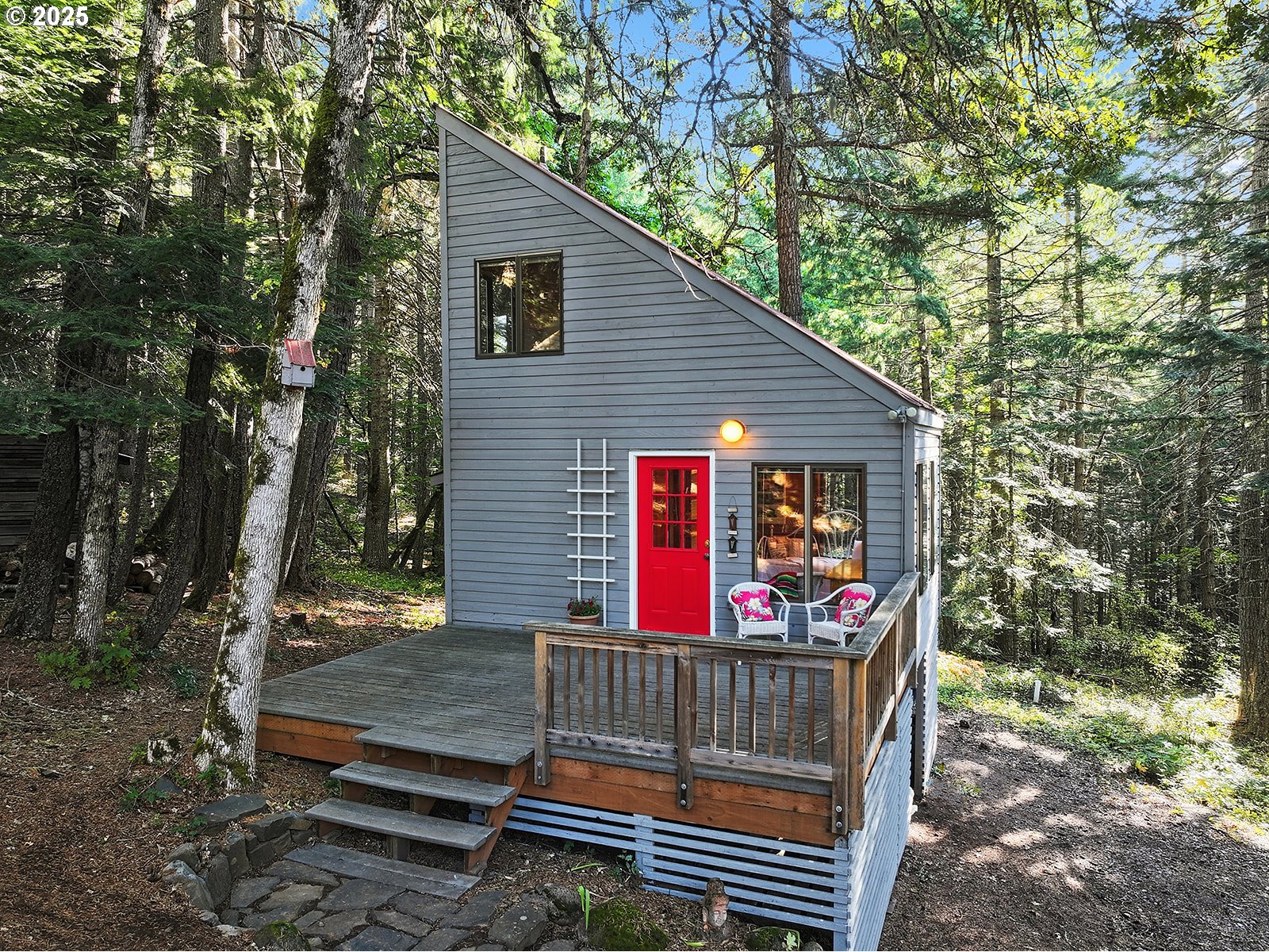 (503) 893-8874Idyllic location on 5 wooded acres only 2.5 miles from town. Additional, adjacent 6.01 acre lot available at an additional cost would comprise a total of 11.06 acres. With both lots, the total property should be able to qualify for timber classification. Buyer or buyers agent to investigate the benefits, options and requirements of the timber classification program. The property consists of a 2 BR/2 BA home built in 1999 as well as 216sf separate ADU with loft sleeping built in 1978 by a Portland architect. The vacant lot has a 1000 gallon, buried cistern curently not in active use. The lot will not be offered separately until the house has sold and is only available with the house property at present (See aerial in photos). Vacant lot is listed at $275,000. Package pricing is an option. Make an offer. Perfect getaway in the woods 2.5 miles from White Salmon and all the Gorge has to offer.