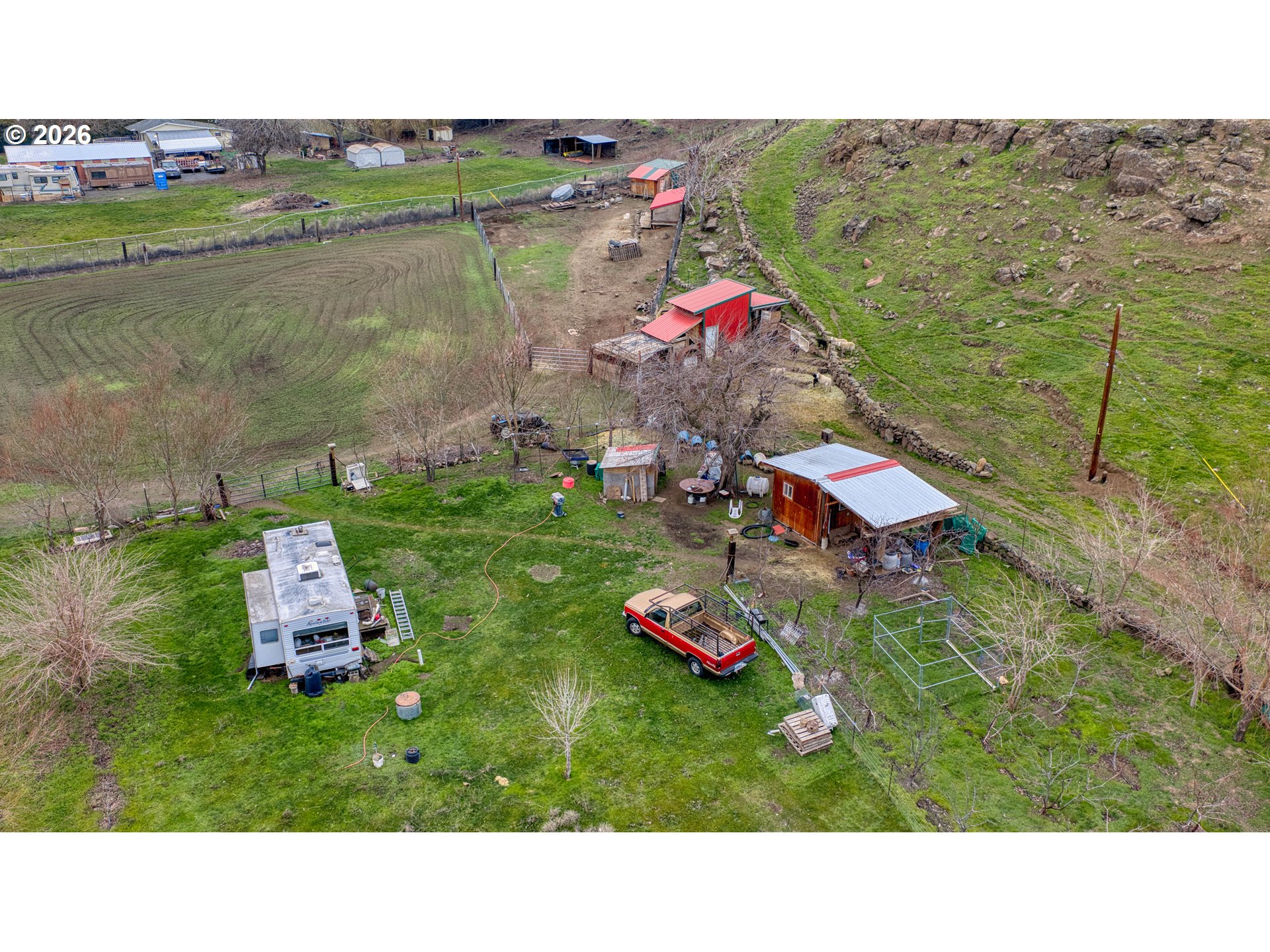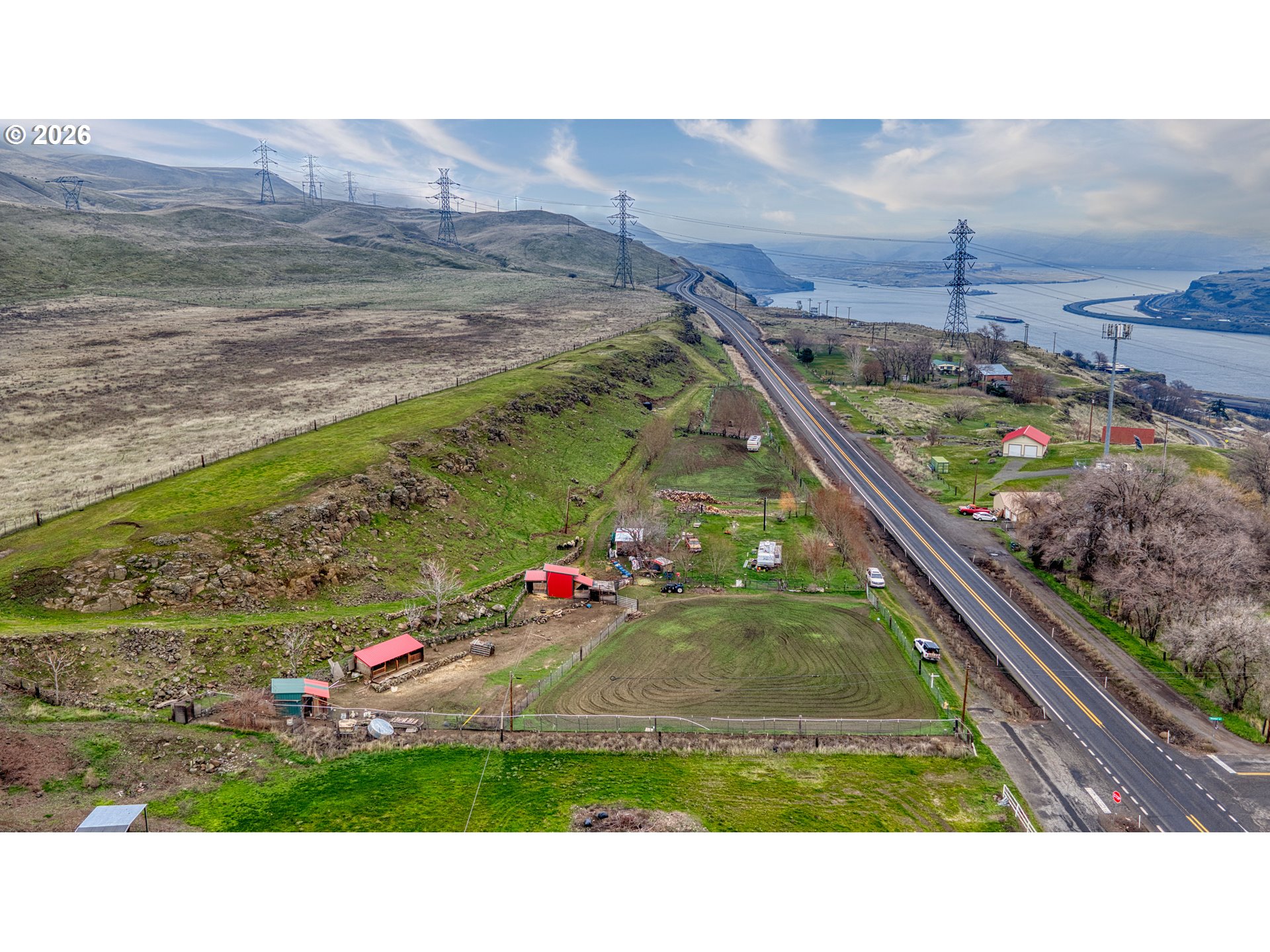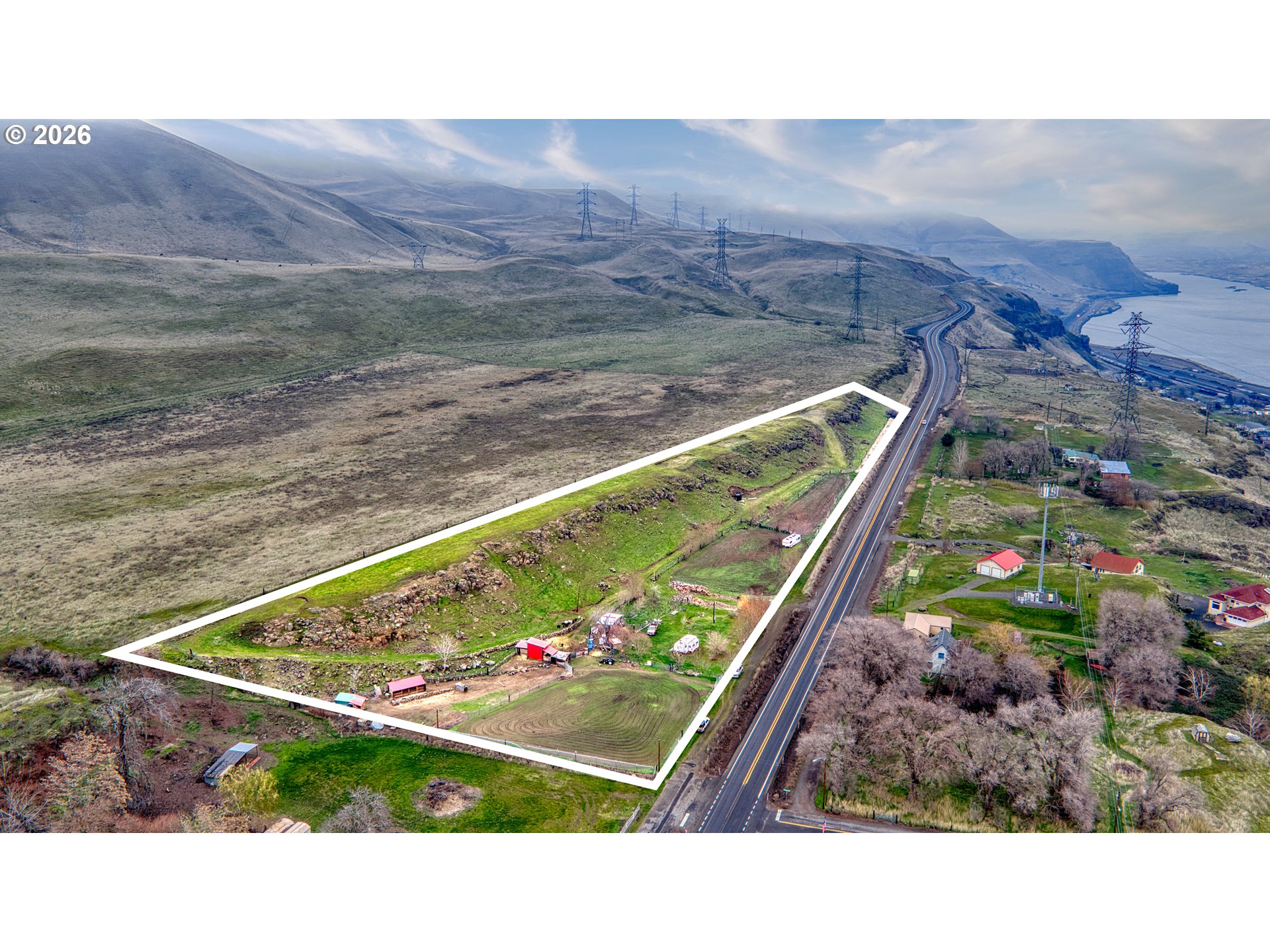 Exceptional opportunity to own 7 acres of RC-zoned land with significant development potential. This unique property offers remarkable, expansive Columbia River Gorge views and is not located within the Gorge Commission, allowing for added flexibility and fewer restrictions. Public water and sewer are connected, electricity is available on the lot, and access roads are in place providing convenient access to the upper portions of the property. The land benefits from direct access off Highway 14, offering both ease of entry and strong accessibility.The property includes two wells (no pumps in place), irrigation spigots located throughout the property, and the entire acreage is fully cross-fenced, making it well suited for agricultural or livestock use. A small recreational structure is present with a bed, toilet, and sink, ideal for temporary use while planning future development or enjoying the land. Additionally, insulated sheds are on-site to help protect livestock and feed. With infrastructure in place, scenic surroundings, and favorable zoning, this property presents an excellent opportunity for residential, agricultural, investment, or development use.