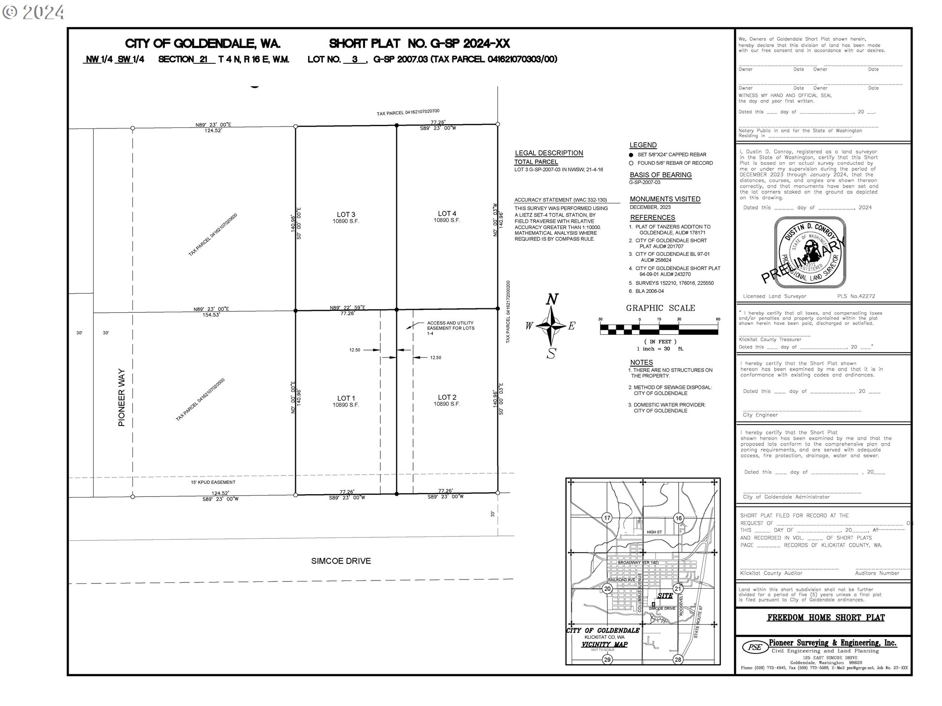 Lots 1-4 are now available inside the Goldendale City Limits. all lots are .25 acres (quarter acre). Nice level parcels with all utilities available at Simcoe Drive. Goldendale City zoning is C-2, general commercial. These parcels can also qualify for residential uses, in the R-3 classification. Goldendale is experiencing an increased level of growth, with no reason to expect any change in the immediate future. Bring your builder and ideas. Buyer will need to do their own due diligence before purchase. Affordable commercial land is not common and now is the time to grab it before it's gone. Call today, Let's talk! Real Estate Broker is related to one of the Sellers.