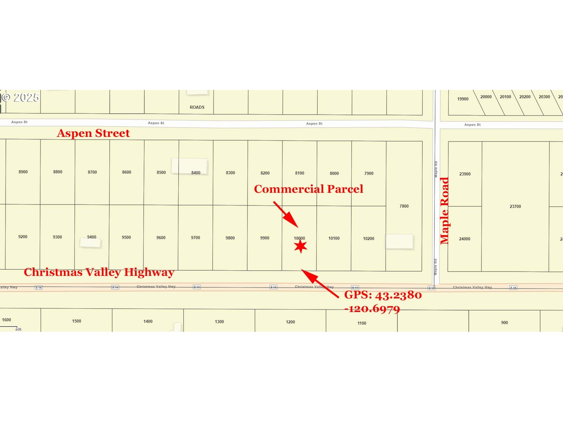 .28 Acre Lot Zoned Commercial with Christmas Valley Highway road frontage, power, phone, community water, and fiber optics for internet are all available. The parcel is flat with a very light brush cover. Ready to be developed. This parcel has exceptional Highway access and exposure. Situated nicely with the dollar store, hardware store, and tractor stores, all just across the road and in the general area. This is priced to sell quickly. No Owner Carry.