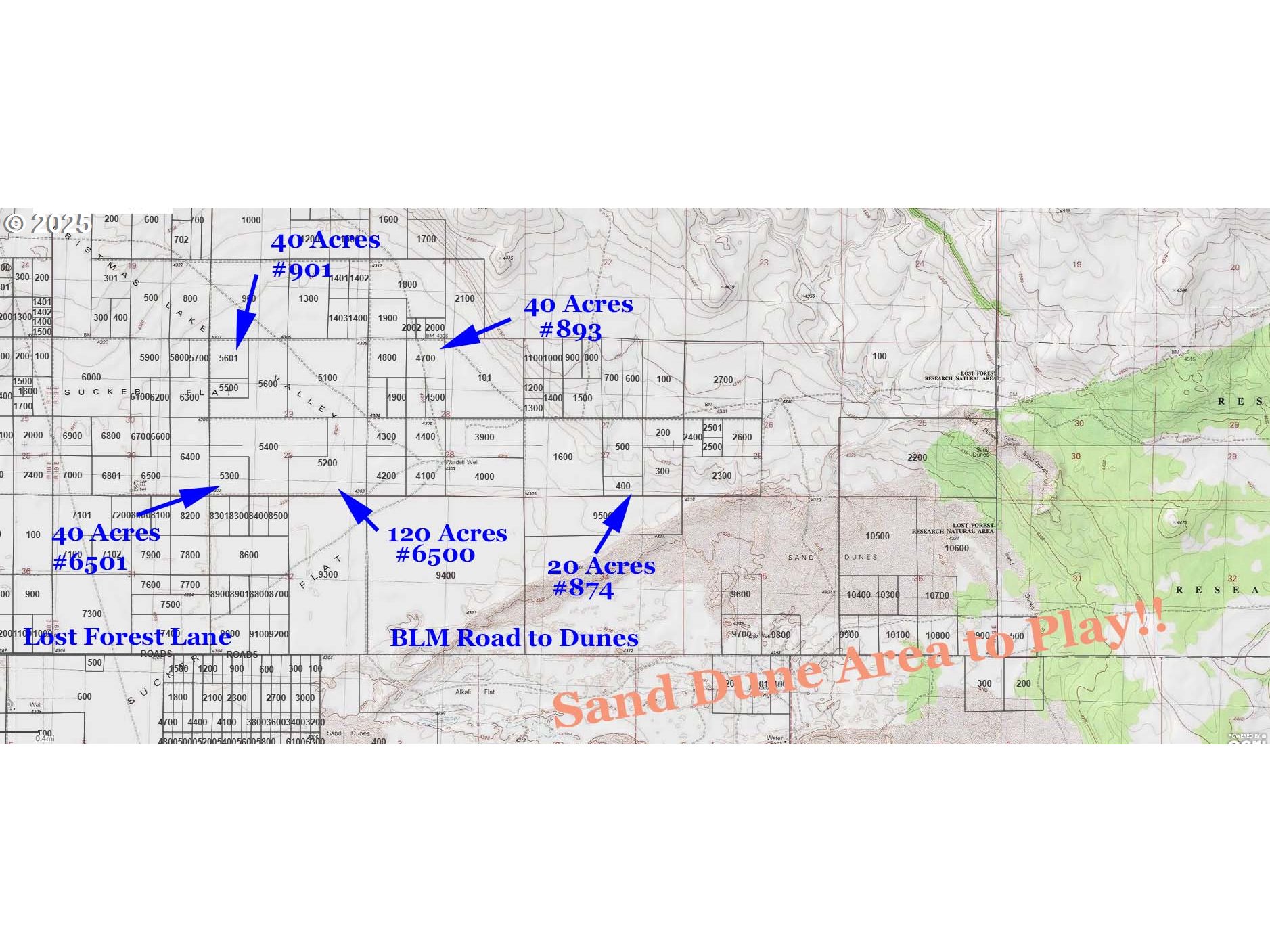 40 Acres, just off Lost Forest Lane. Nice large flat parcel in an area of pivot lines and hay production. Excellent parcel and location for a homestead. There is power and phone along the edge of the property and there is an excellent road along the edge of the property.This one has it all and is very reasonably priced.Please drive by and check this out. GPS is on the photos and maps. Very easy to go and see it.This one is about 7-8 minutes to the sand dunes to go and play. Would make a great bug out OHV- side by side camp.No owner carry.
