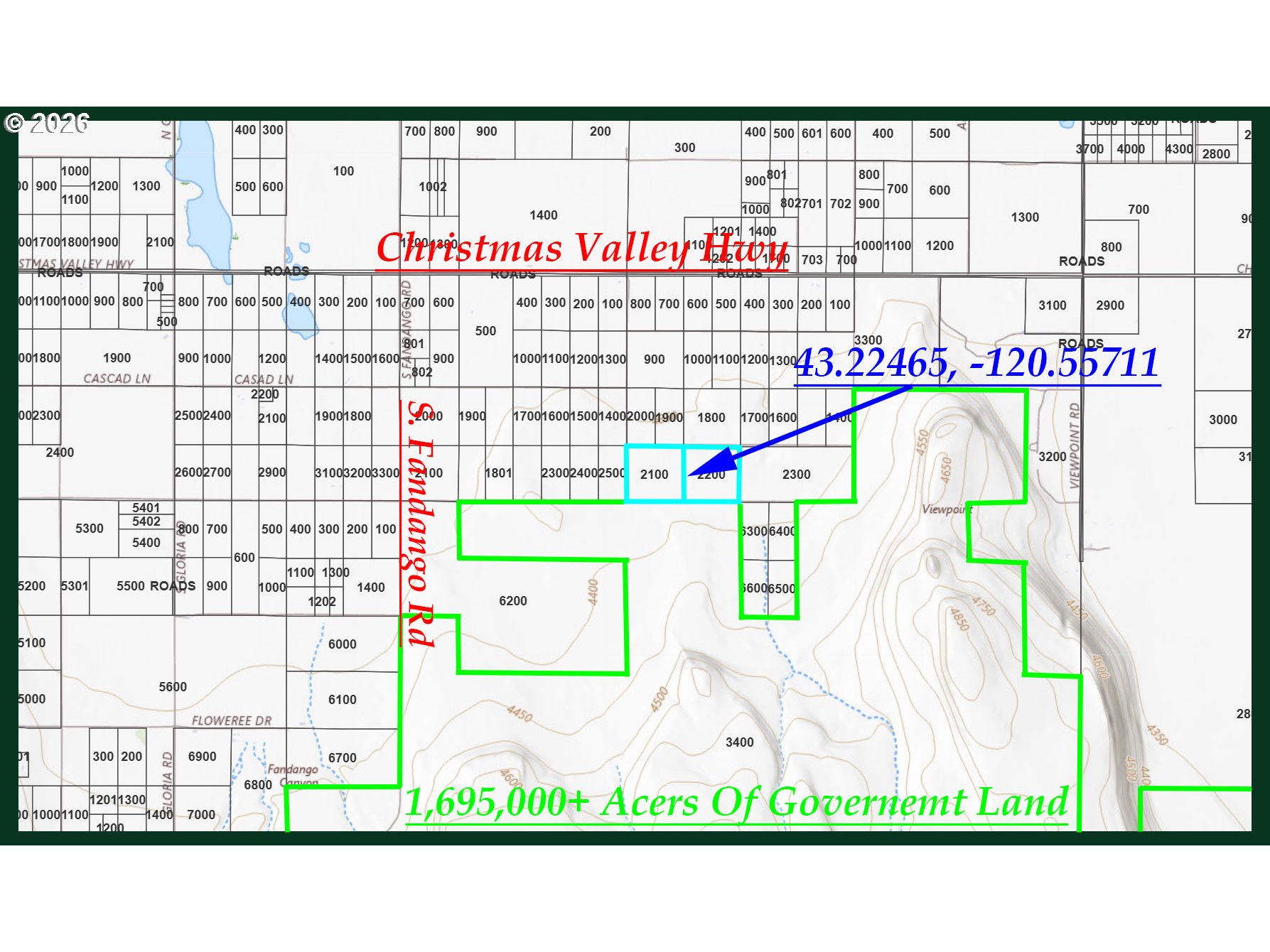 40 Acres of beautiful untouched land in Christmas Valley Oregon offering over 1.5 million acres of protected government land right at your doorstep, creating endless possibilities for exploration, recreation, adventure and tranquility. With the Christmas Valley Golf Course, Lake, and iconic sand dunes just minutes away, this property serves as the ultimate base camp for outdoor enthusiasts seeking unforgettable experiences. Providing ample space to work with, you could have a farm, a cabin, a beautiful home surrounded by natural landscape, or raise alpacas if you wish. These parcels showcase breathtaking, unobstructed views of the landscape, and as part of the Oregon Outback, officially designated the world's largest Dark Sky Sanctuary in 2024, you'll enjoy a level of serenity and world class stargazing that simply cannot be found elsewhere. This is more than land; it's your gateway to a lifestyle defined by natural beauty, freedom, and wonder.