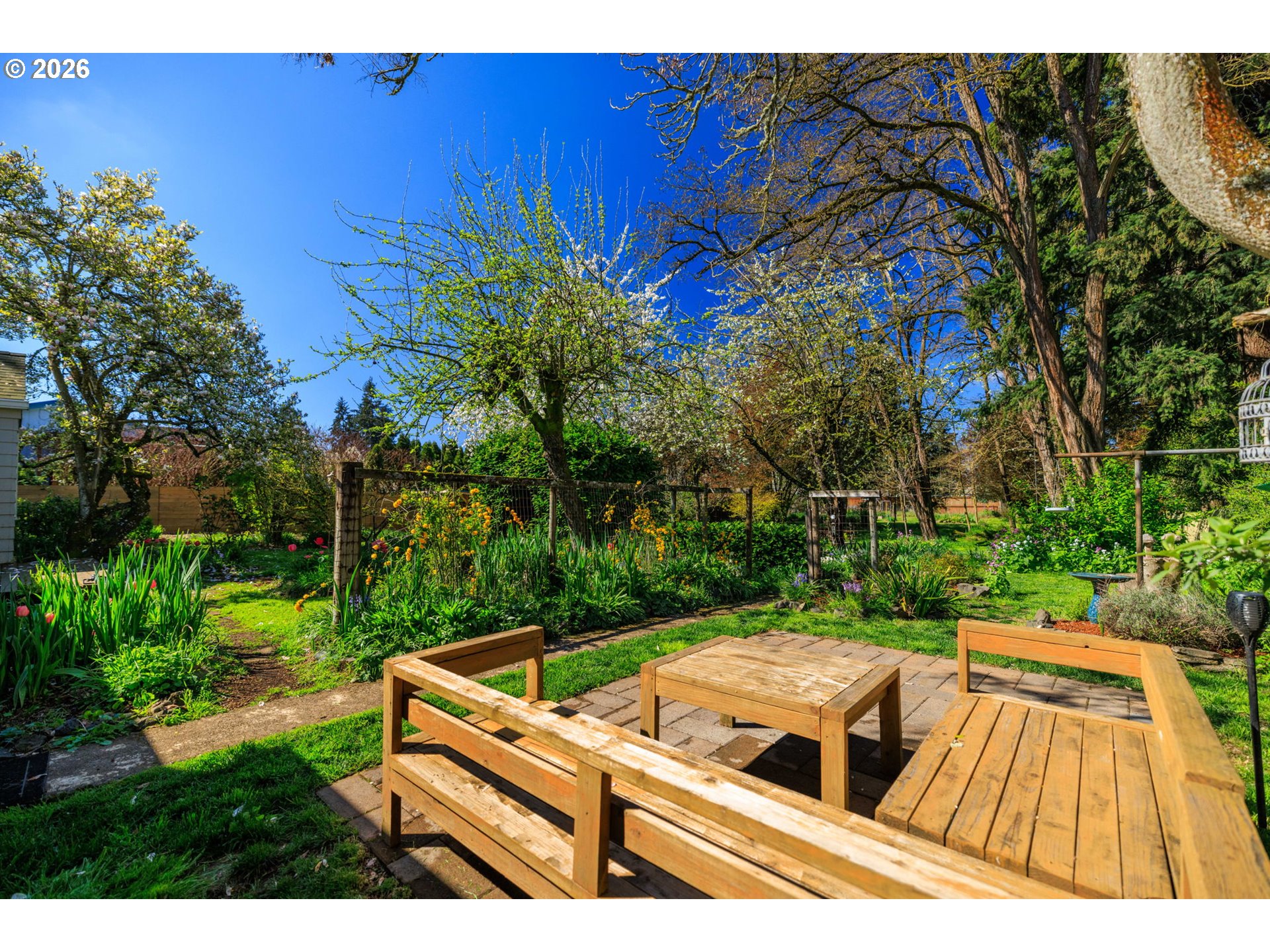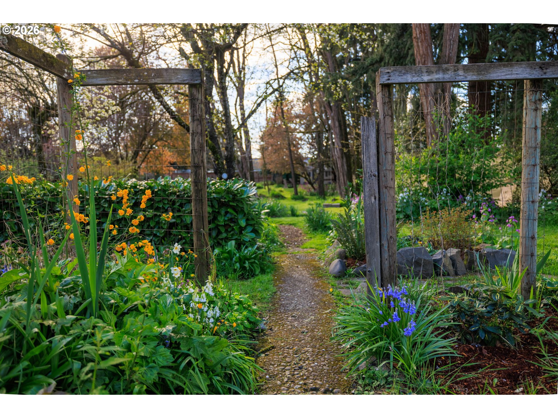 Your very own private park on N Park! This outdoor lover’s paradise, tucked off of River Road, offers a rare blend of charm, space, and lifestyle. Enjoy easy walkability to Emerald Park for summer concerts and bike access to the scenic Willamette River path. Step into the expansive and fully fenced 0.58 acre backyard and feel like you’ve entered your own Secret Garden. Wander through vibrant flowers and a charming orchard with a variety of mature fruit trees. Continue on to the “back forty,” where you’ll discover berries, hops, a chicken coop, and a large clean storage shed, perfect for embracing a self-sufficient lifestyle with year-round blooms. The property also offers RV parking with a convenient double gate, adding flexibility and function to this already special space. This large lot may offer development opportunity. After a morning harvest of fresh eggs and fruit, make your way back to the classic 1940s bungalow. Kick off your boots, cozy up by the wood burning fireplace insert, or relax in one of the light-filled bedrooms or enjoy tinkering in the workshop space in the garage. This is more than a home, it’s a lifestyle, ready for you to make it your own!