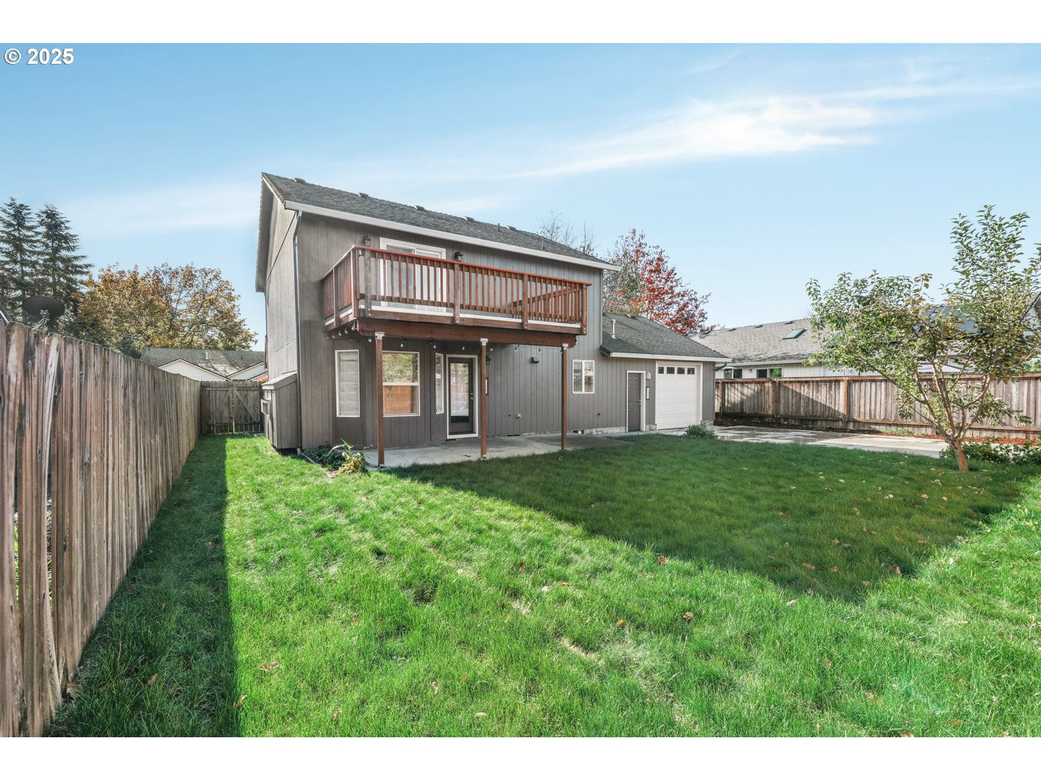 (503) 893-8874Brand new roof in November 2025 - Stunning Home with Exceptional Features and Custom Possibilities. This beautifully updated 3-bedroom, 2.5-bath home offers style, comfort, and functionality throughout. The open-concept living and dining areas create a seamless flow perfect for entertaining, highlighted by gorgeous laminate flooring that extends through the main level. The updated kitchen has lots of cabinetry and prep space, under-cabinet and above-cabinet lighting, and a layout that flows effortlessly into the inviting family room. Enjoy cozy evenings by the gas fireplace flanked by custom built-ins, enhanced by built-in surround sound speakers, and access to a covered patio making it ideal for year-round entertaining. A convenient half bath and laundry room complete the main floor. Upstairs, the primary suite is a private retreat featuring laminate flooring, surround sound speakers, and sliding doors leading to a new balcony deck that's perfect for watching the Eugene Rodeo fireworks or relaxing under the stars. The ensuite bath offers a dual vanity, walk-in closet, and modern finishes. Two additional generously sized bedrooms with new carpeting and a full bath complete the upper level. This home has been thoughtfully maintained and upgraded, with a heat pump replaced in 2014, stylish tile work, fresh paint, and LED porch lighting. Enjoy peace of mind with a 4K wired 7-camera security system. A rare feature of this property is the drive-through garage with upper storage and access to a reinforced concrete pad that is ready for a future shop, RV parking, or even a tiny home. The possibilities are endless for customization. The fully fenced backyard provides privacy and space for gardening or play, while the covered patio invites outdoor living and summer barbecues. Located conveniently near dining, shopping, quality schools, and the Eugene Airport, this home blends modern living with thoughtful design offering long term value.