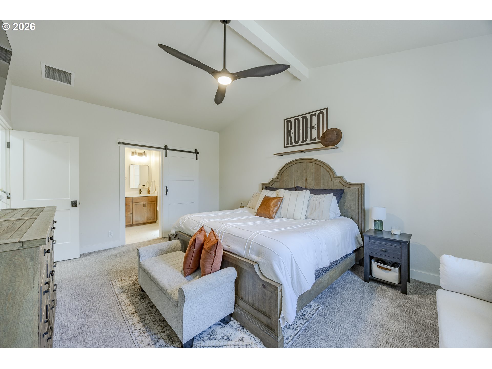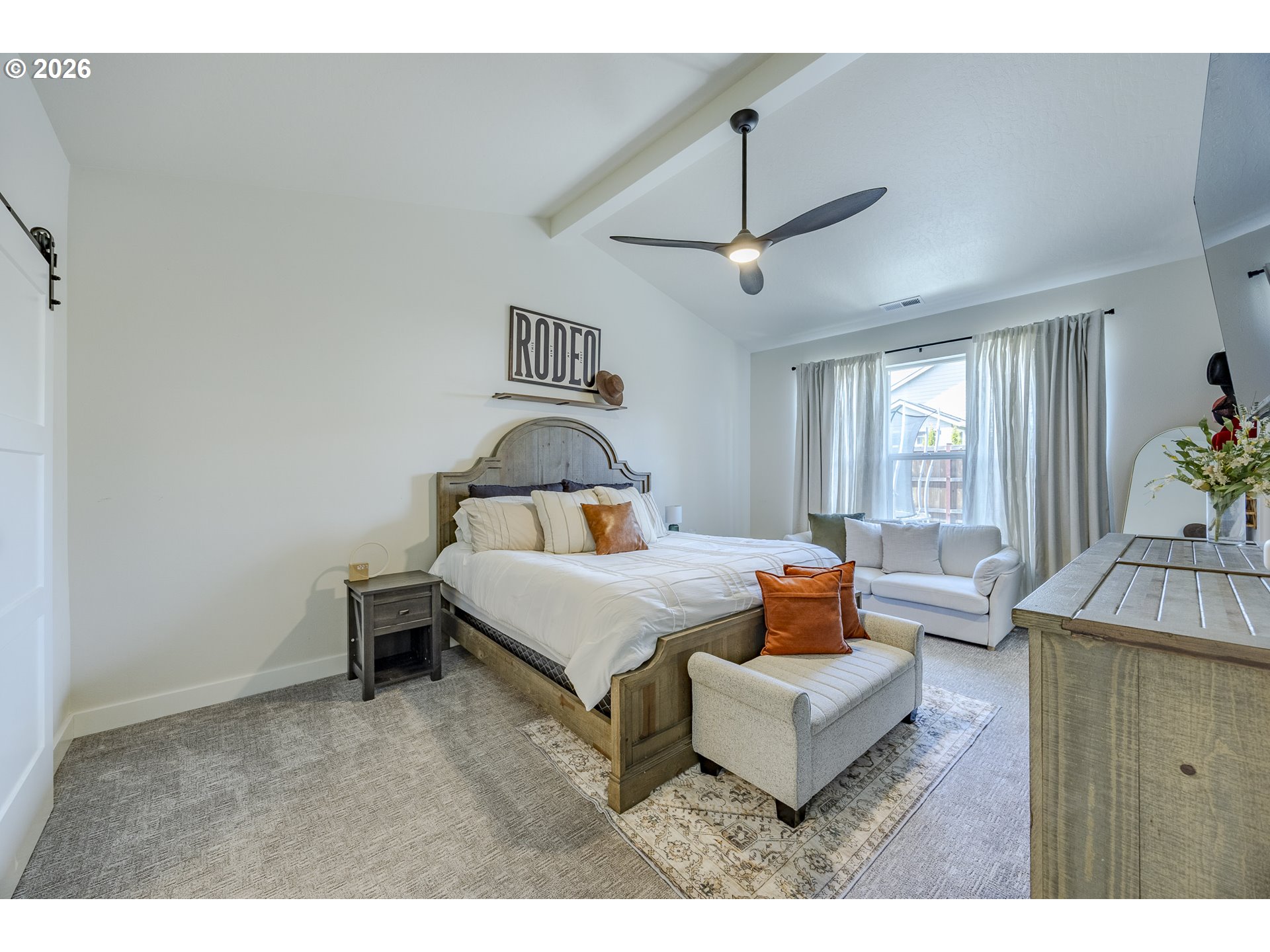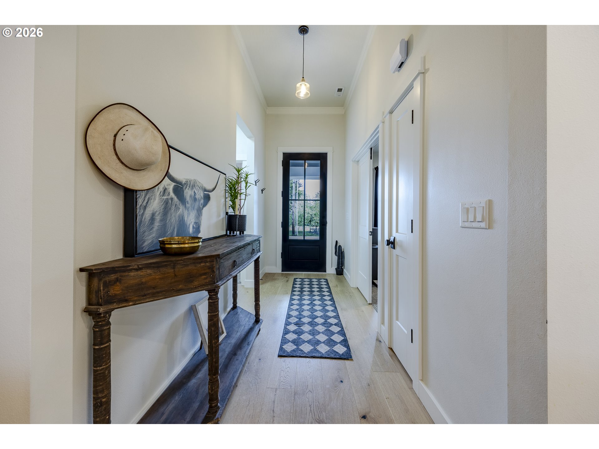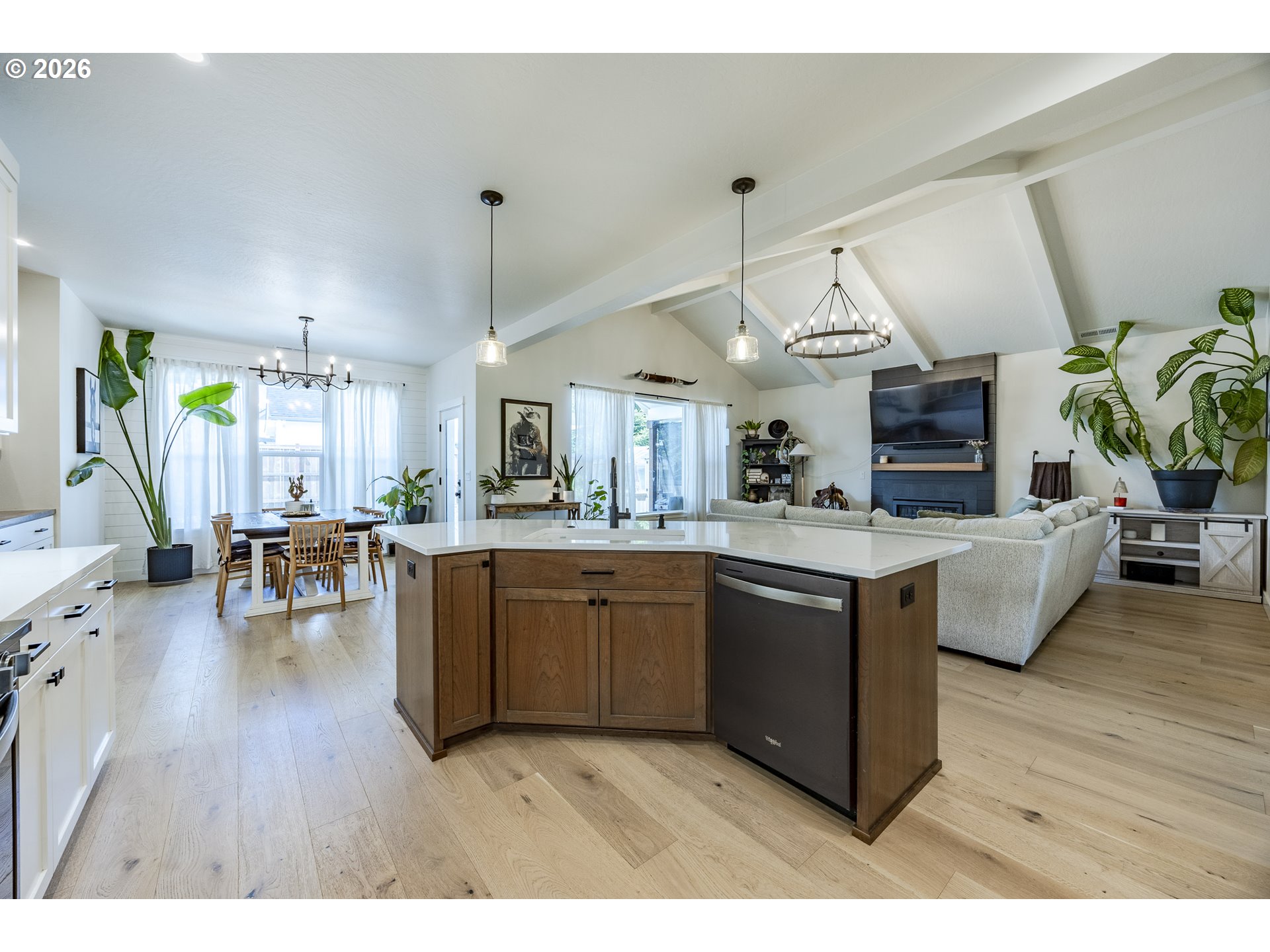 Stunning custom Bruce Weichert home in a highly desirable neighborhood! This exceptional single-level residence showcases wide-plank white oak flooring throughout. The gourmet kitchen features custom cabinetry ,quartz countertops, high-end appliances, under-cabinet lighting, a spacious island and a generous pantry. The inviting great room boasts a beautiful beamed ceiling and a striking gas fireplace, perfect for relaxing or entertaining. A generous dining area includes a built-in serving space for added convenience. The vaulted primary suite offers a spacious walk-in closet for ultimate comfort. Additional highlights include RV parking with hookups, attic storage, wired for generator, outdoor hot/cold spigot and a low-maintenance yard. Ideally located near trails, parks, and schools this home truly has it all.