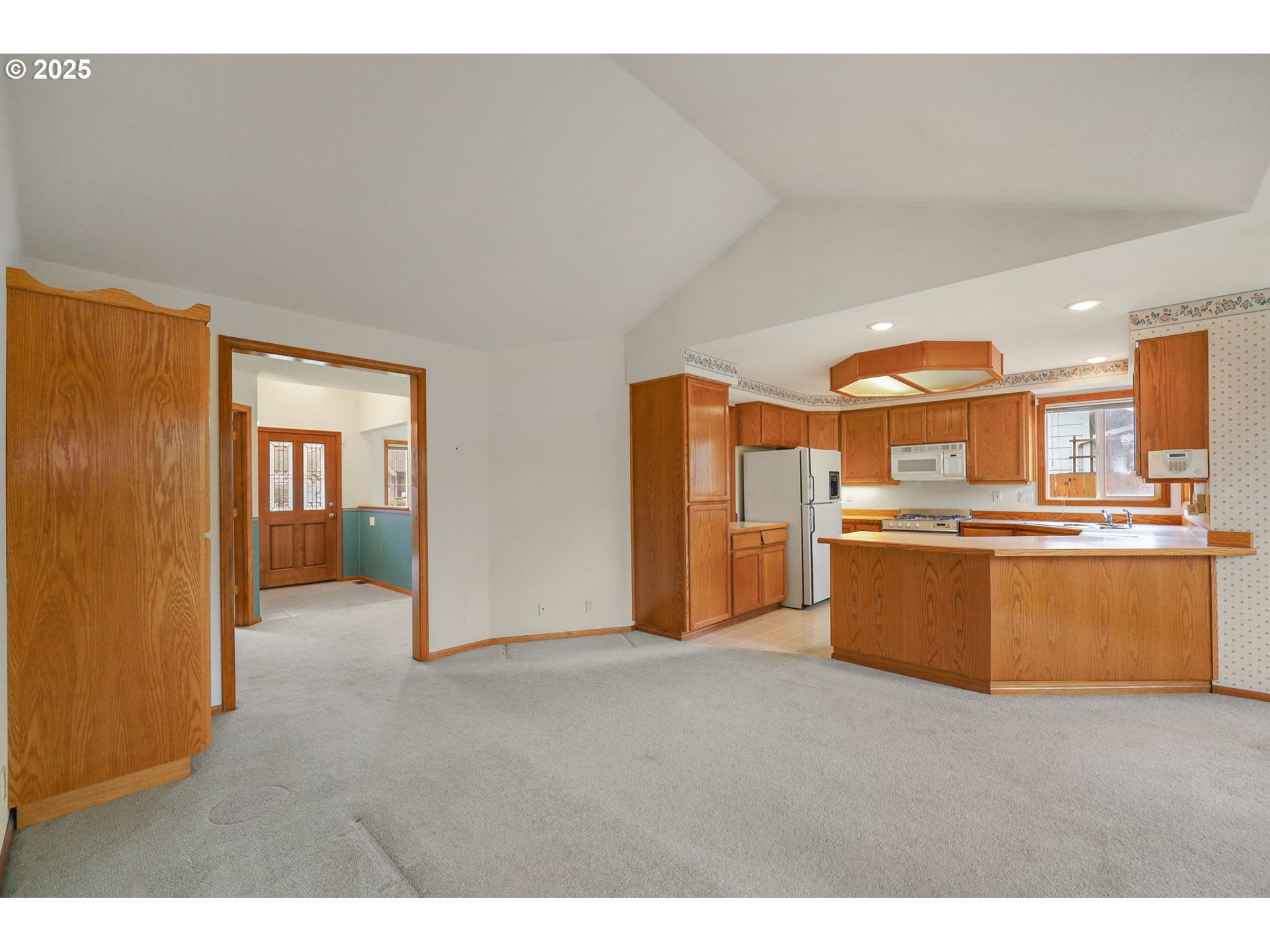 (503) 893-8874This single-story home in Eugene, Oregon offers a well-designed layout with 3 bedrooms and 2 bathrooms. The primary bedroom provides a full bath with dual sinks, walk in shower and soaking tub. The kitchen is a highlight, boasting honey-colored oak cabinetry. The living area is spacious, with vaulted ceilings and a focal point brick fireplace adding character. Large windows enhance the room's brightness. The home includes a dedicated laundry room with side-by-side appliances and additional storage. Carpeted bedrooms offer cozy retreats.The property's layout promotes an open-concept feel, ideal for modern living and entertaining. With its well-maintained interiors and thoughtful design elements, this home presents a turnkey opportunity in a desirable Oregon location.