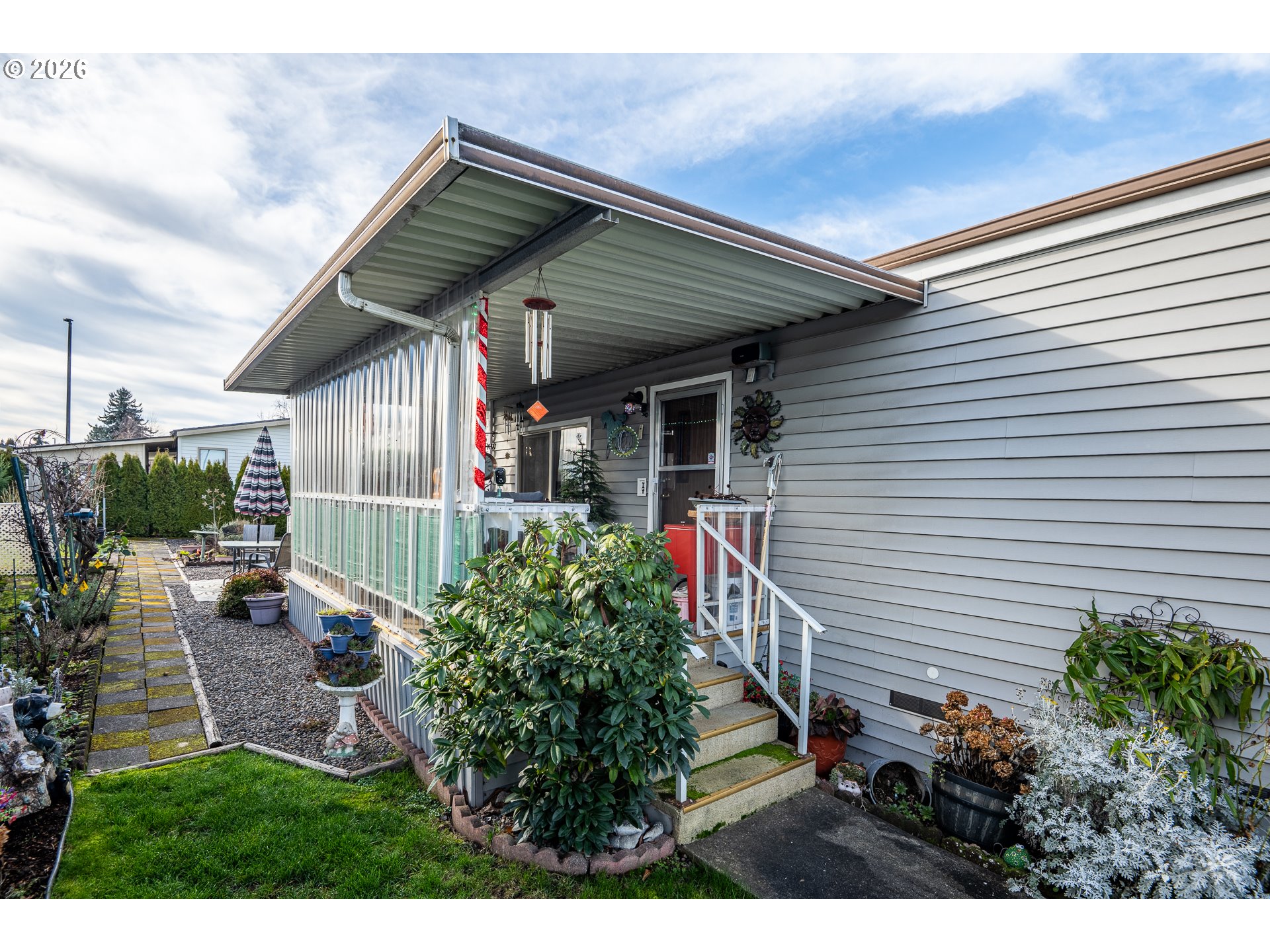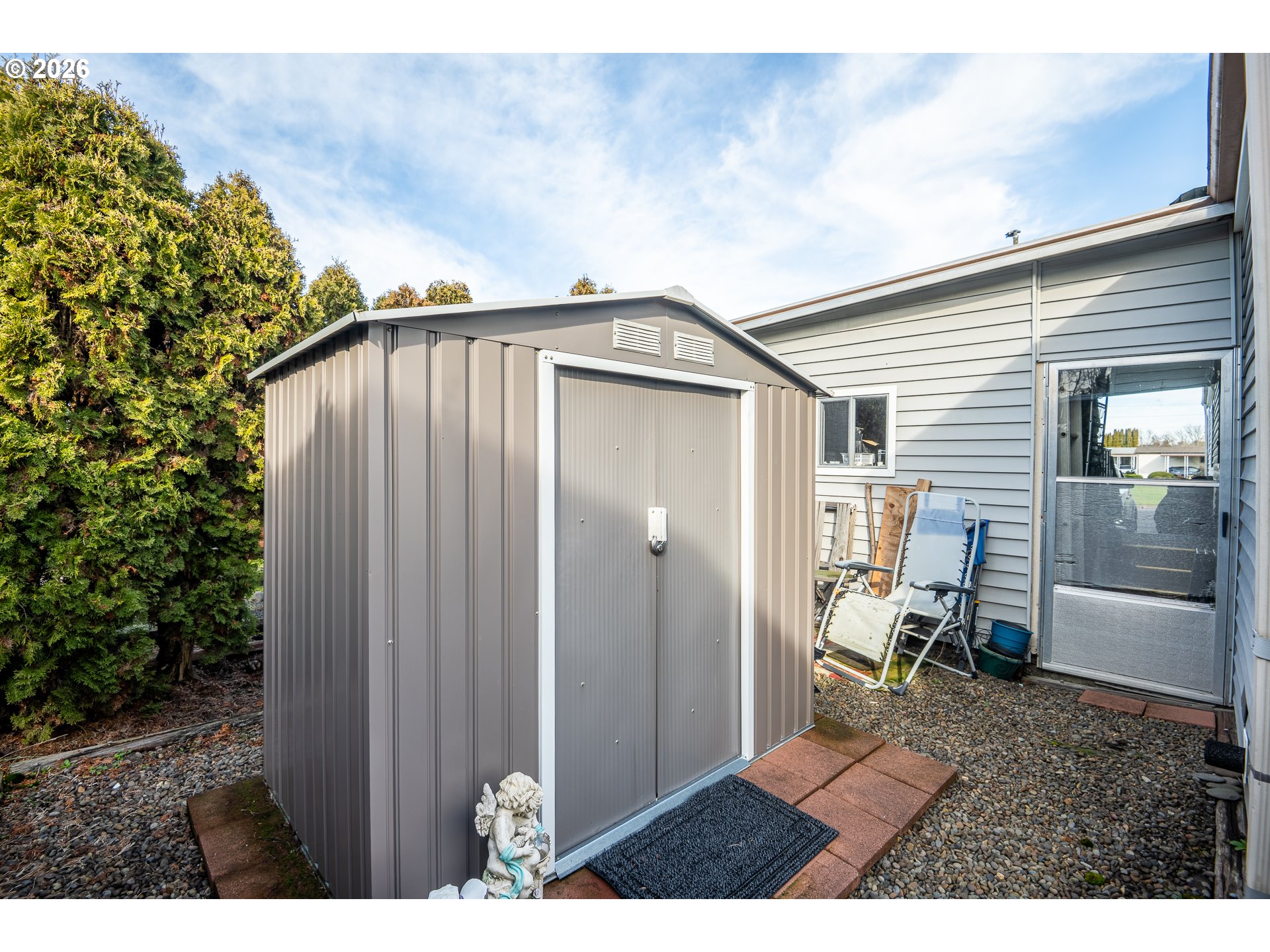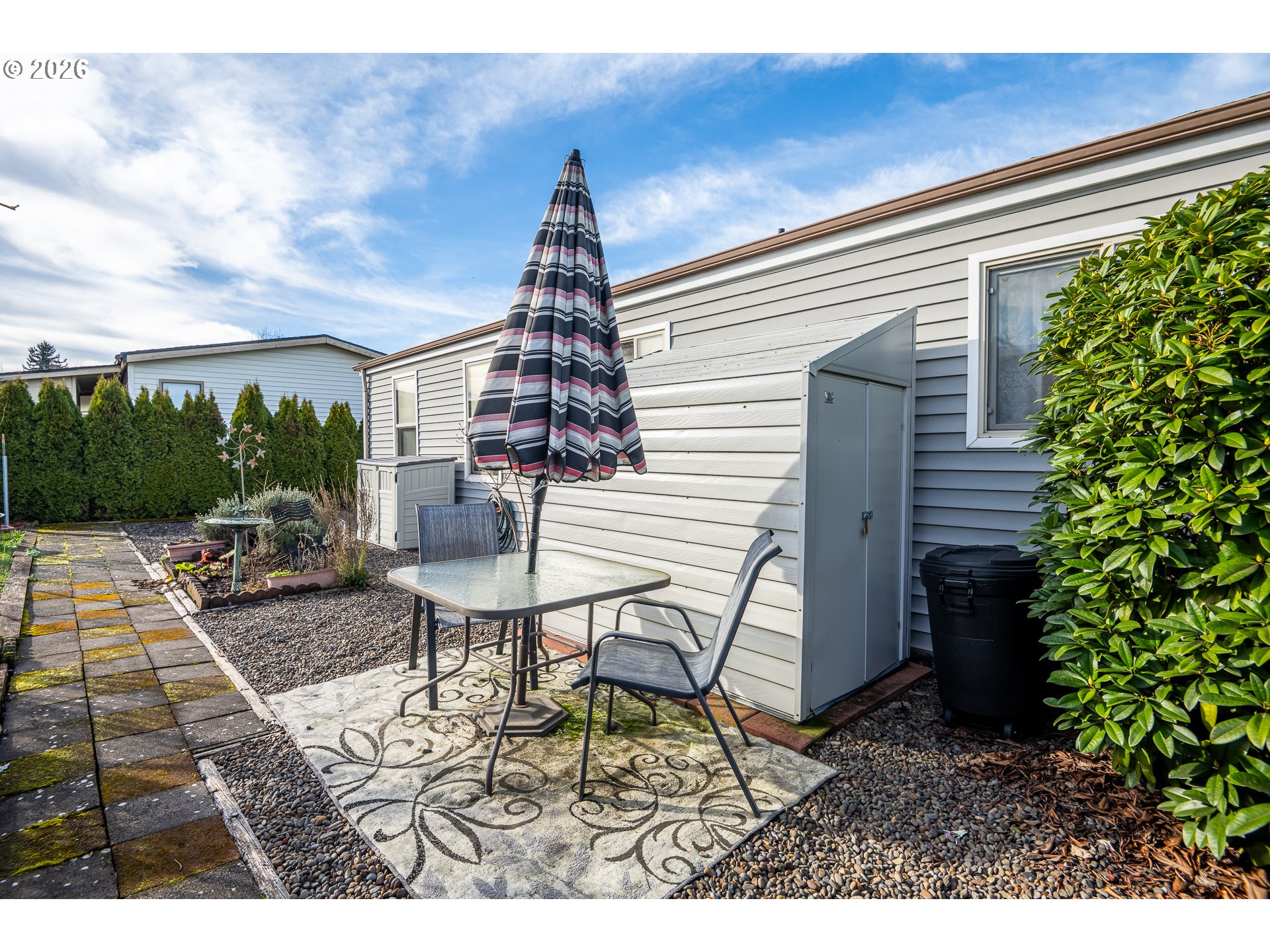 Experience the perfect blend of comfort and convenience in this beautifully maintained 2-bedroom, 1-bath home in the highly desirable Daneland 55+ Community! The open layout lets in plenty of light, while the kitchen overlooks a huge grassy area and a little shop for extra storage. Enjoy the upgraded walk-in shower, covered parking, and a brand-new 30-year roof soon to be installed for peace of mind.Daneland offers low-maintenance living with exceptional management and fantastic amenities, including a clubhouse with an indoor pool and hot tub, fitness room, billiards, and plenty of community activities. Current space rent is $975, which includes cable, garbage, and weekly yard debris pickup. On-site RV parking is available, and pets up to 20 pounds are welcome. This home is cozy, well-maintained, and perfect for comfortable, easy living!