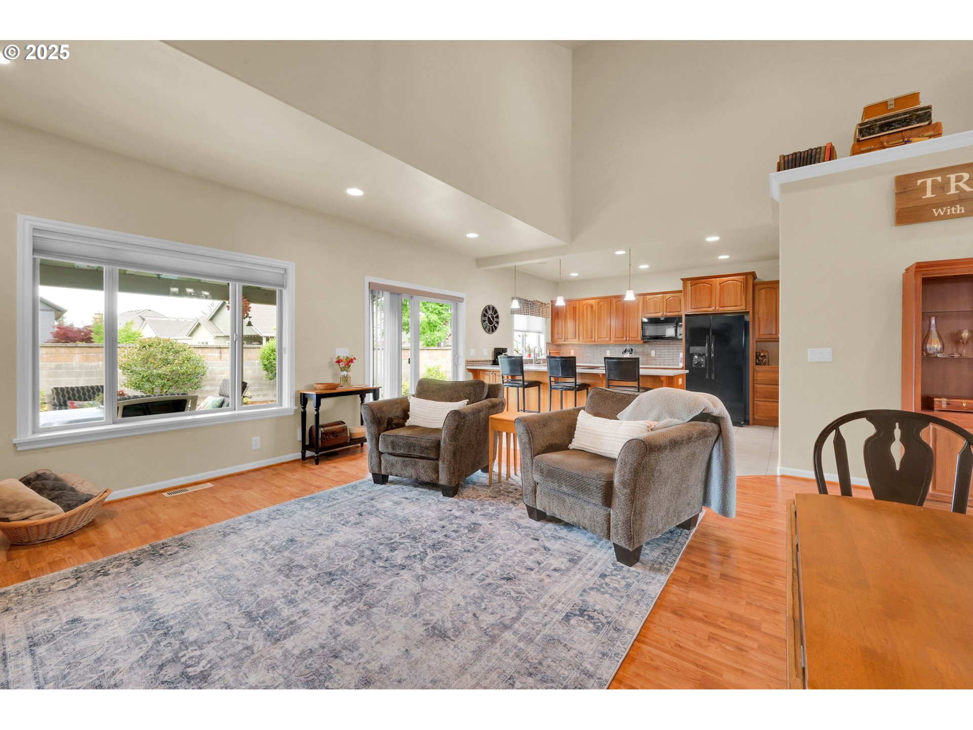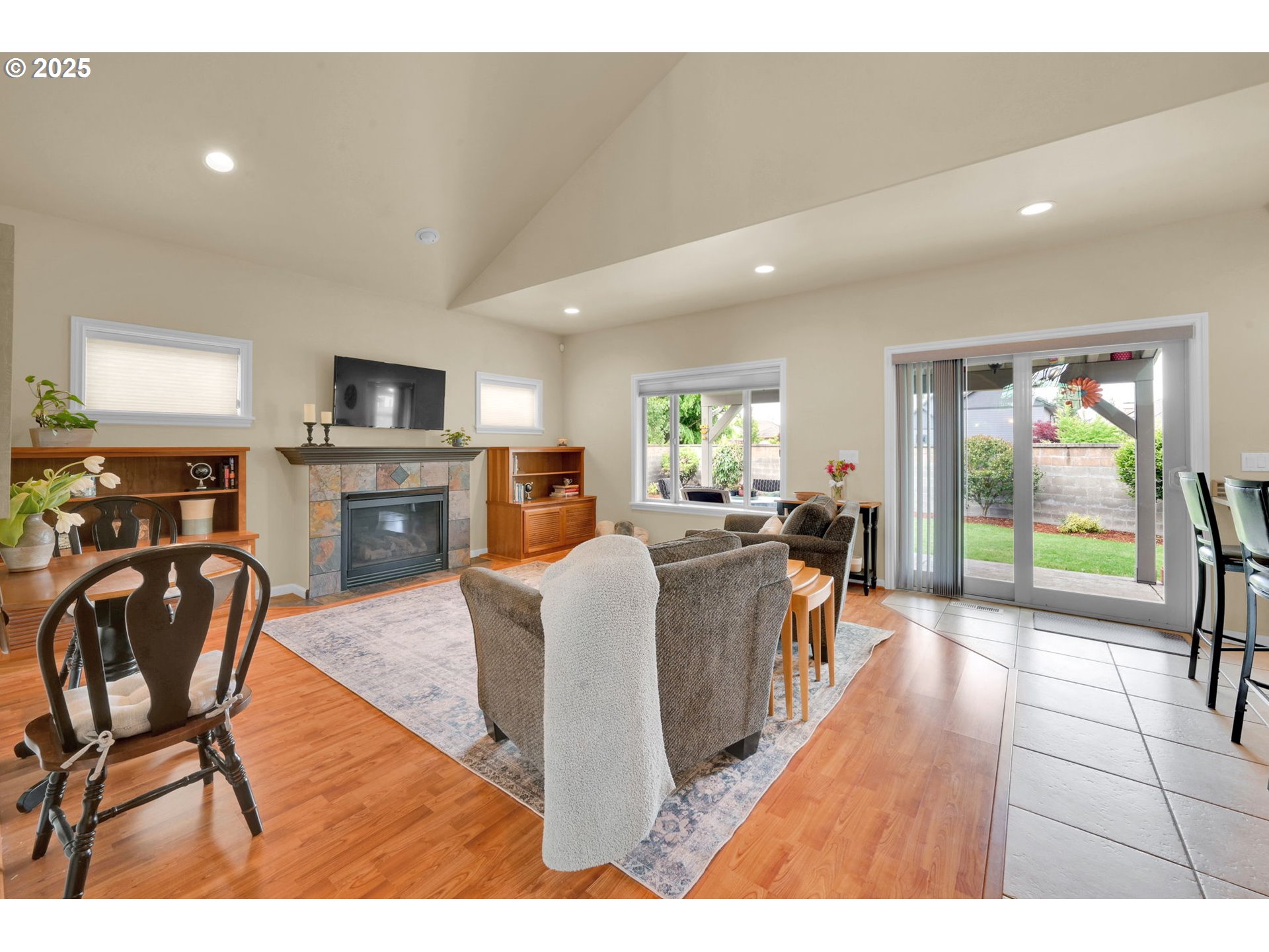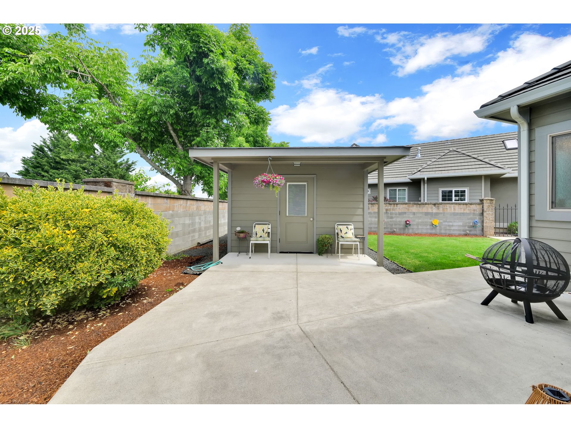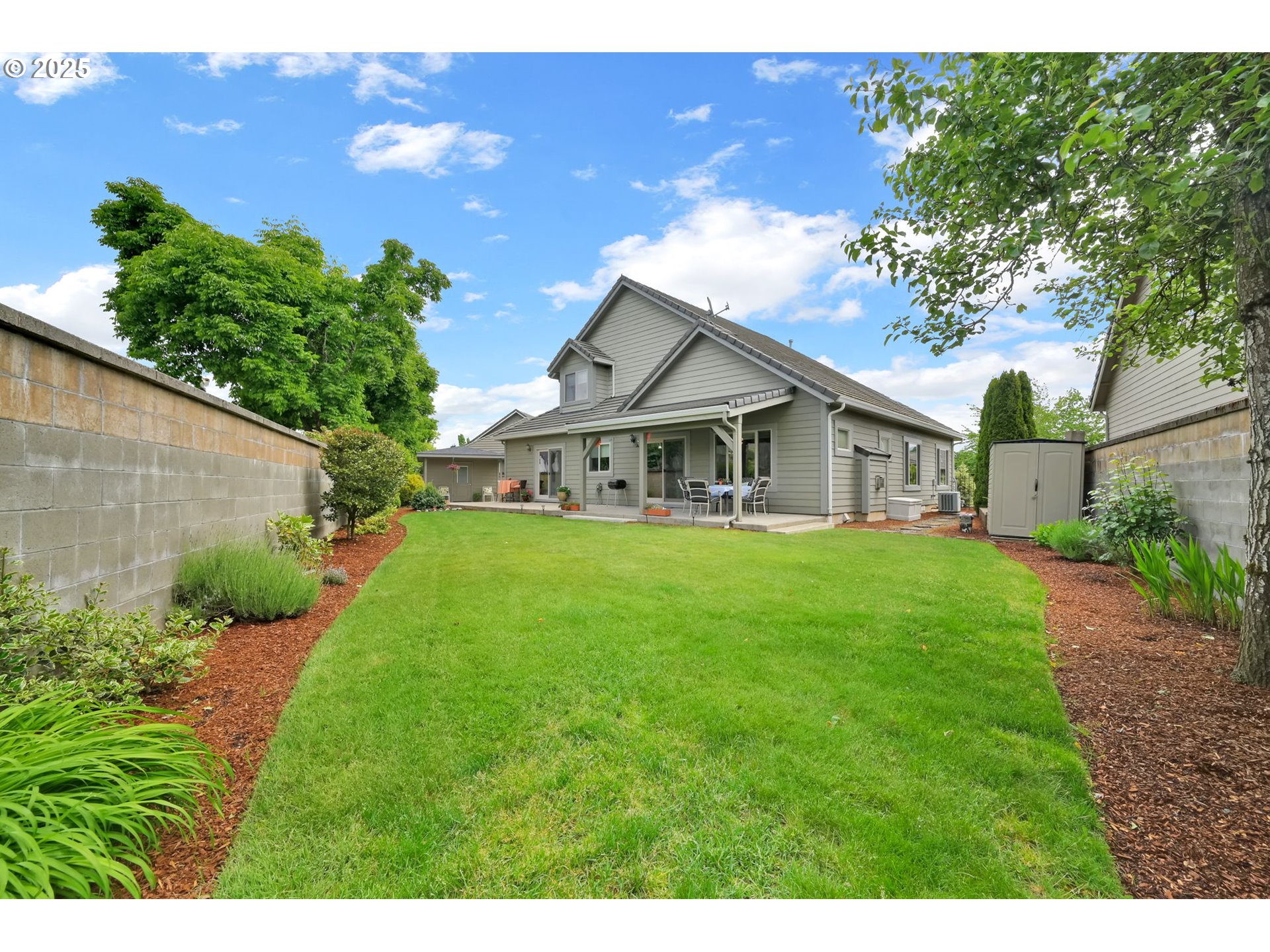 (503) 893-8874This impressive residence offers 3 bedrooms and 2.5 bathrooms with elegant finishes, generous storage, and a warm gas fireplace. The gourmet kitchen features granite countertops, cherry cabinets, a built-in flat-top stove, eating bar, and spacious pantry. Vaulted ceilings enhance the open, airy ambiance, beautifully complemented by laminate wood flooring, tile, and carpet throughout.Enjoy the added convenience of an office nook and a sizable main-level primary suite with walk-in closets, patio access, and a luxurious jacuzzi tub. The open floor plan flows seamlessly to a stunning stamped concrete patio—pre-wired for surround sound—perfect for outdoor gatherings.Outside, you’ll find a fully fenced yard with multiple entertaining areas, a covered patio, and a 12x16 shed. In addition, the backyard features a charming She Shed with electricity, to use as a creative studio, retreat, or bonus workspace. The two-car garage includes a small workroom, and the property is equipped with a full sprinkler system for easy maintenance.