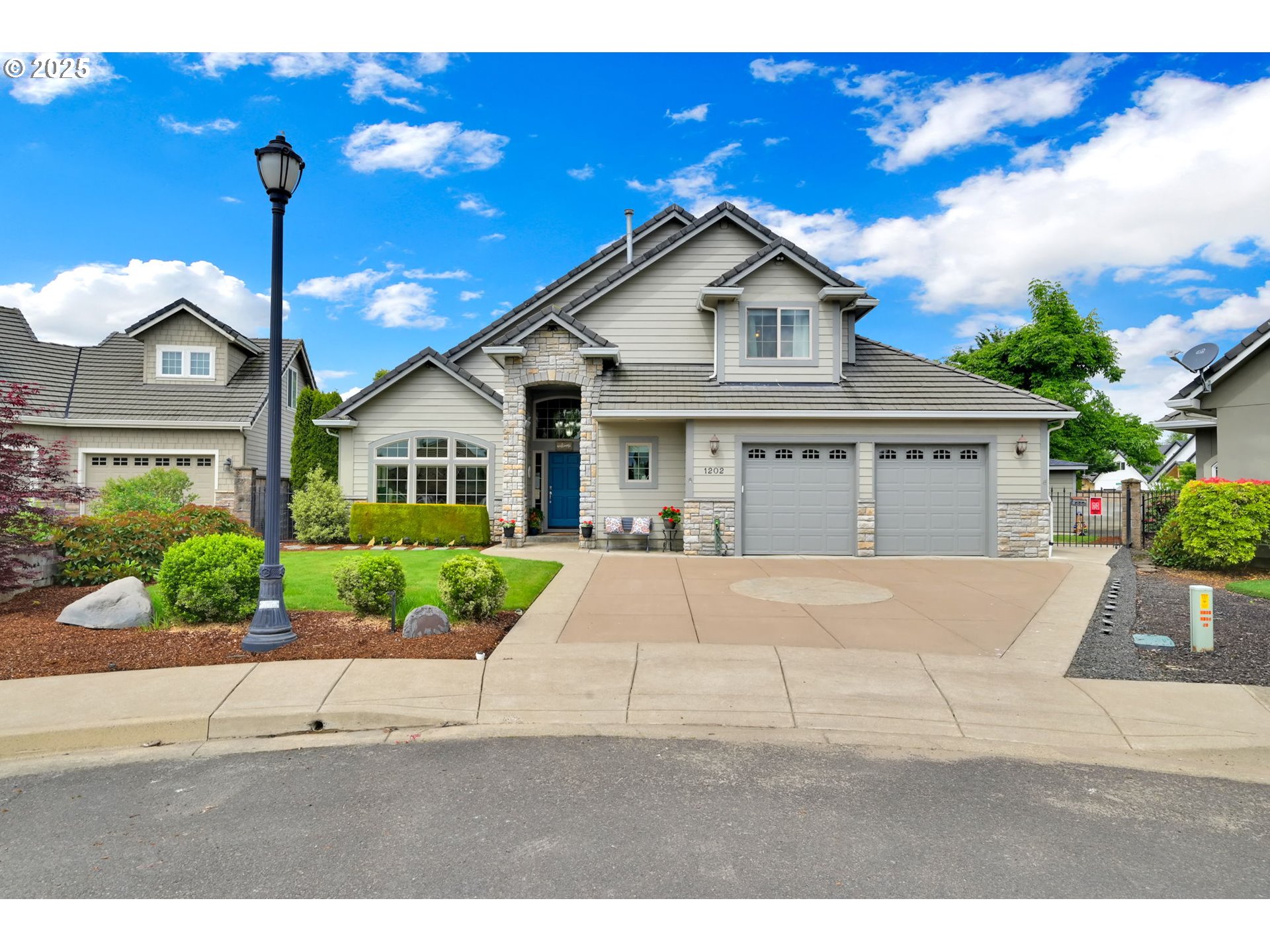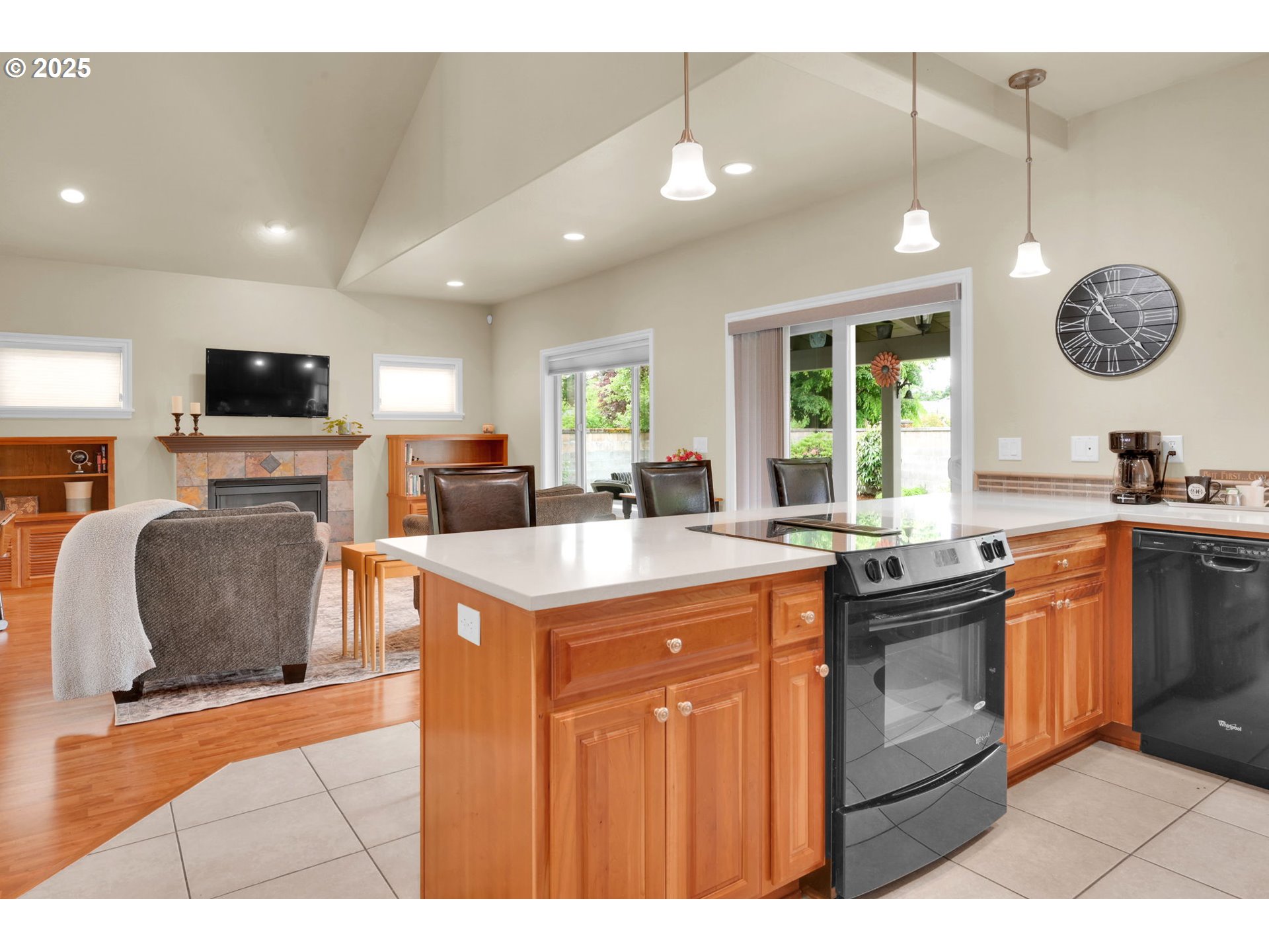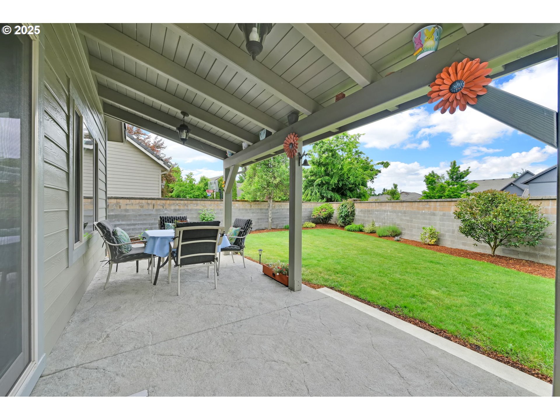 (503) 893-8874This impressive residence offers 3 bedrooms and 2.5 bathrooms with elegant finishes, generous storage, and a warm gas fireplace. The gourmet kitchen features granite countertops, cherry cabinets, a built-in flat-top stove, eating bar, and spacious pantry. Vaulted ceilings enhance the open, airy ambiance, beautifully complemented by laminate wood flooring, tile, and carpet throughout.Enjoy the added convenience of an office nook and a sizable main-level primary suite with walk-in closets, patio access, and a luxurious jacuzzi tub. The open floor plan flows seamlessly to a stunning stamped concrete patio—pre-wired for surround sound—perfect for outdoor gatherings.Outside, you’ll find a fully fenced yard with multiple entertaining areas, a covered patio, and a 12x16 shed. In addition, the backyard features a charming She Shed with electricity, to use as a creative studio, retreat, or bonus workspace. The two-car garage includes a small workroom, and the property is equipped with a full sprinkler system for easy maintenance.