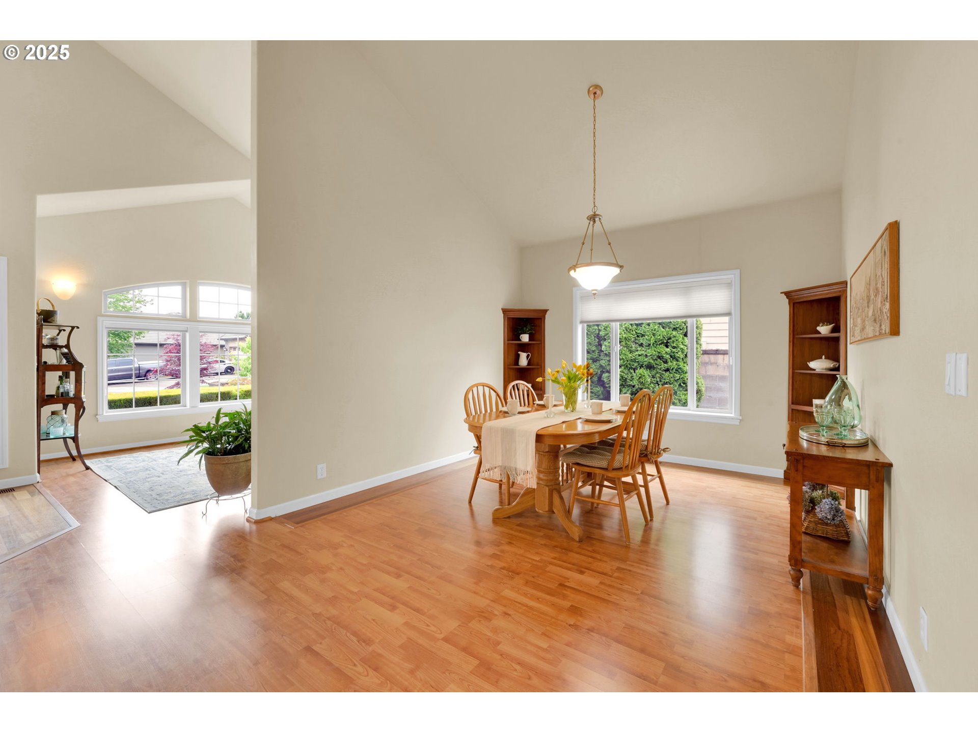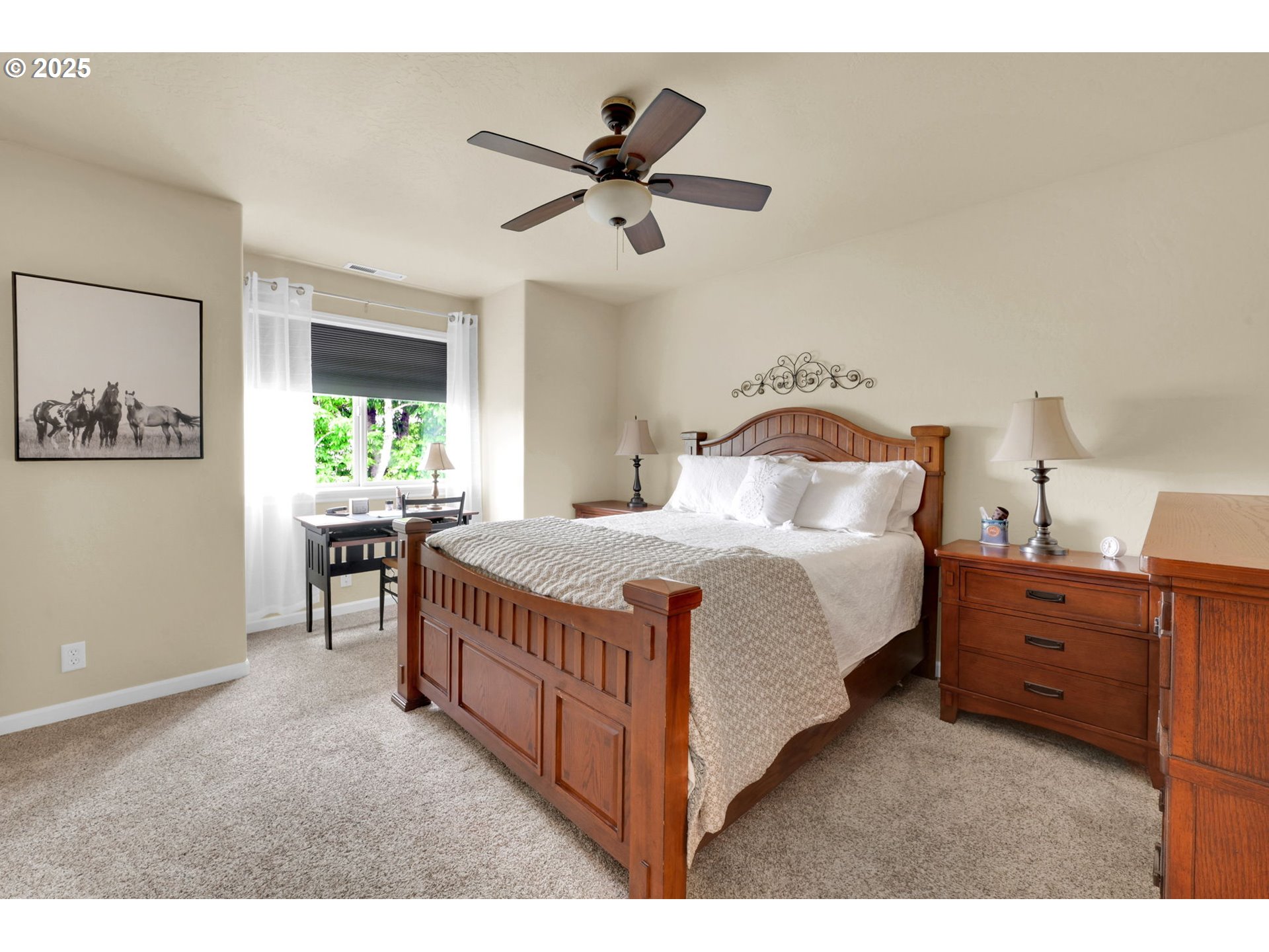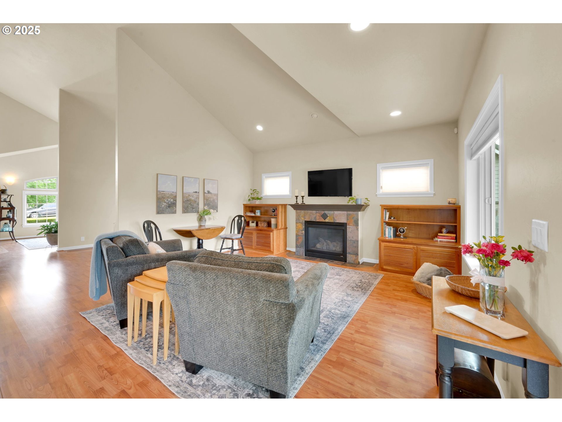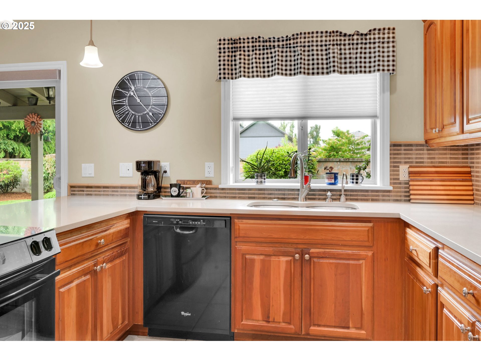 (503) 893-8874This impressive residence offers 3 bedrooms and 2.5 bathrooms with elegant finishes, generous storage, and a warm gas fireplace. The gourmet kitchen features granite countertops, cherry cabinets, a built-in flat-top stove, eating bar, and spacious pantry. Vaulted ceilings enhance the open, airy ambiance, beautifully complemented by laminate wood flooring, tile, and carpet throughout.Enjoy the added convenience of an office nook and a sizable main-level primary suite with walk-in closets, patio access, and a luxurious jacuzzi tub. The open floor plan flows seamlessly to a stunning stamped concrete patio—pre-wired for surround sound—perfect for outdoor gatherings.Outside, you’ll find a fully fenced yard with multiple entertaining areas, a covered patio, and a 12x16 shed. In addition, the backyard features a charming She Shed with electricity, to use as a creative studio, retreat, or bonus workspace. The two-car garage includes a small workroom, and the property is equipped with a full sprinkler system for easy maintenance.