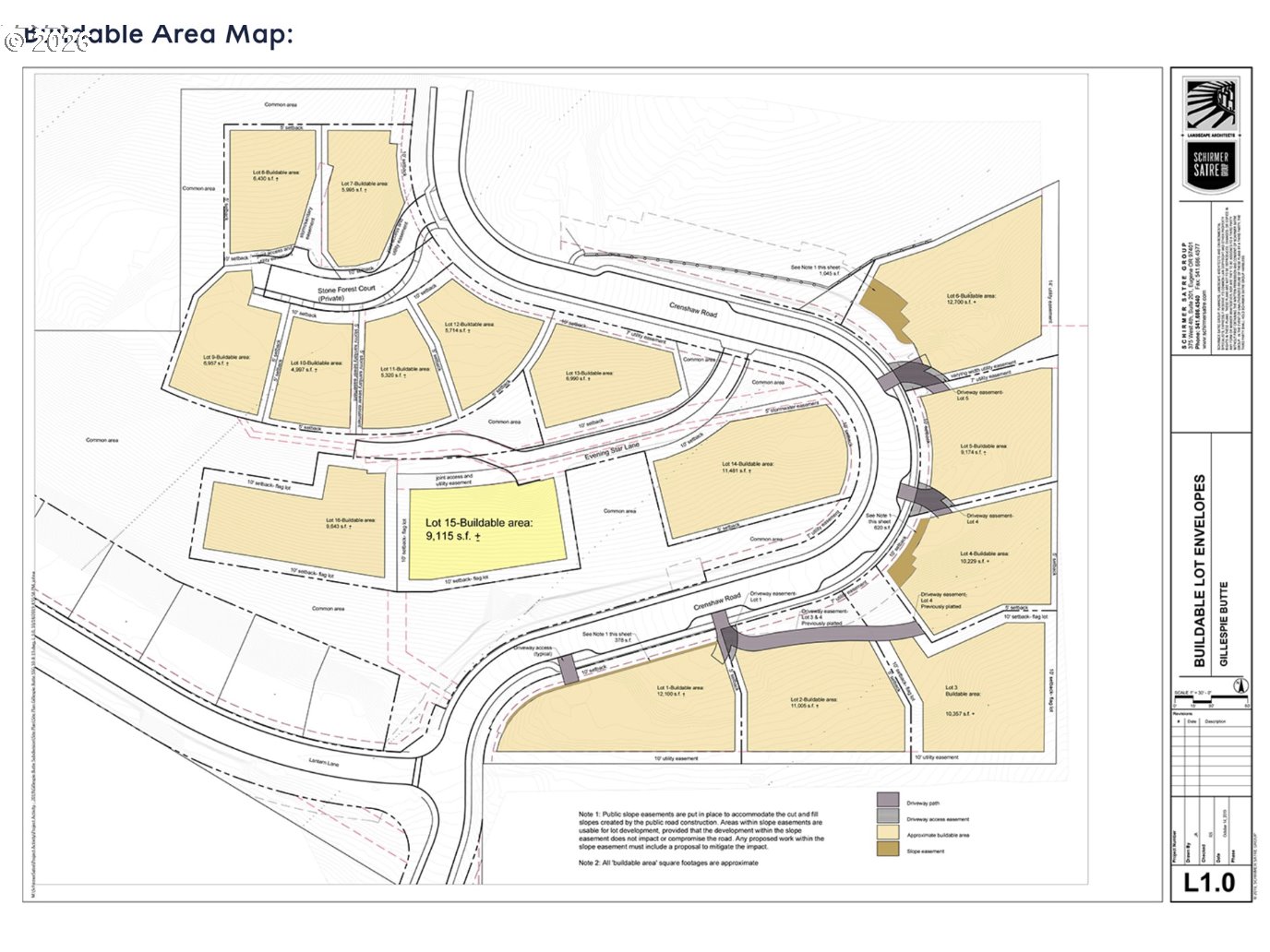 LOCATION, LOCATION, LOCATION! Build your dream home on Gillespie Butte. Just minutes from downtown Eugene, the University of Oregon, Riverbend Hospital and the Eugene Country Club, all while boasting exceptional views. This lot is over 1/3 of an acre with breathtaking southern panoramic views of the city and mountains. With common areas on two sides, Lot 15 offers unmatched privacy and tranquility in premier urban living style. Also included with the purchase are conceptual drawings of a proposed 4,400 square foot 4 bedroom home custom tailored for this site. Whether you choose to utilize these conceptual drawings or bring your own builder and design ideas... this is an incredible opportunity!