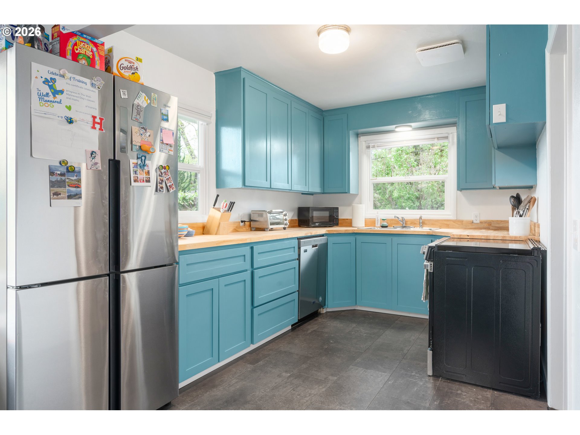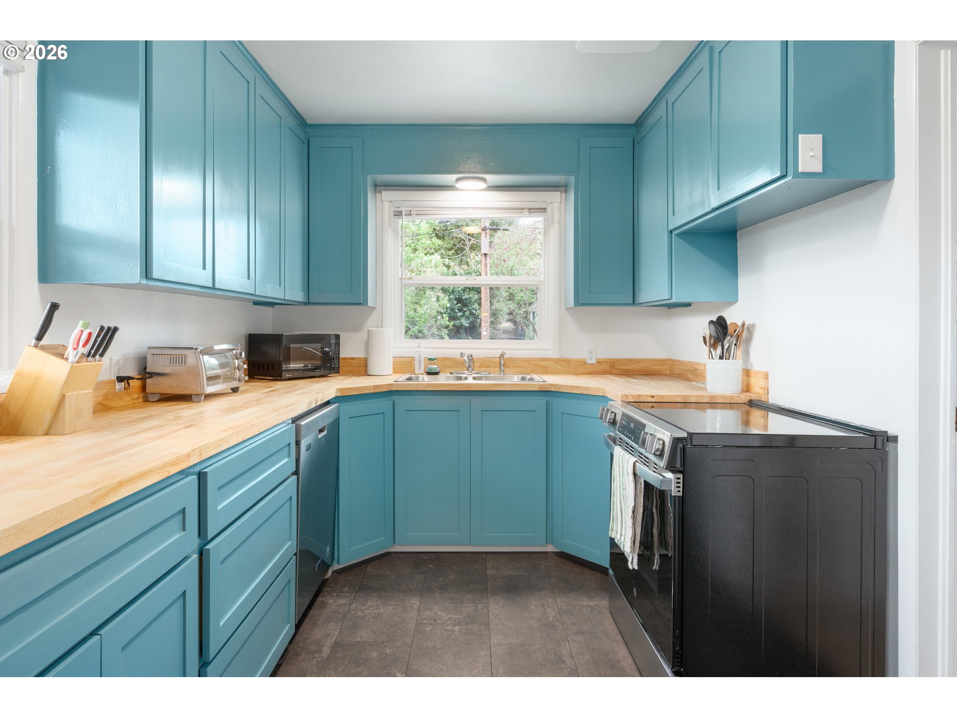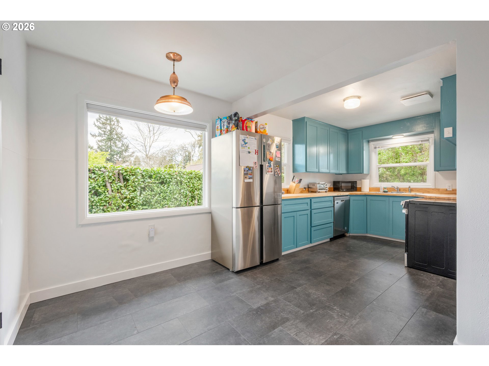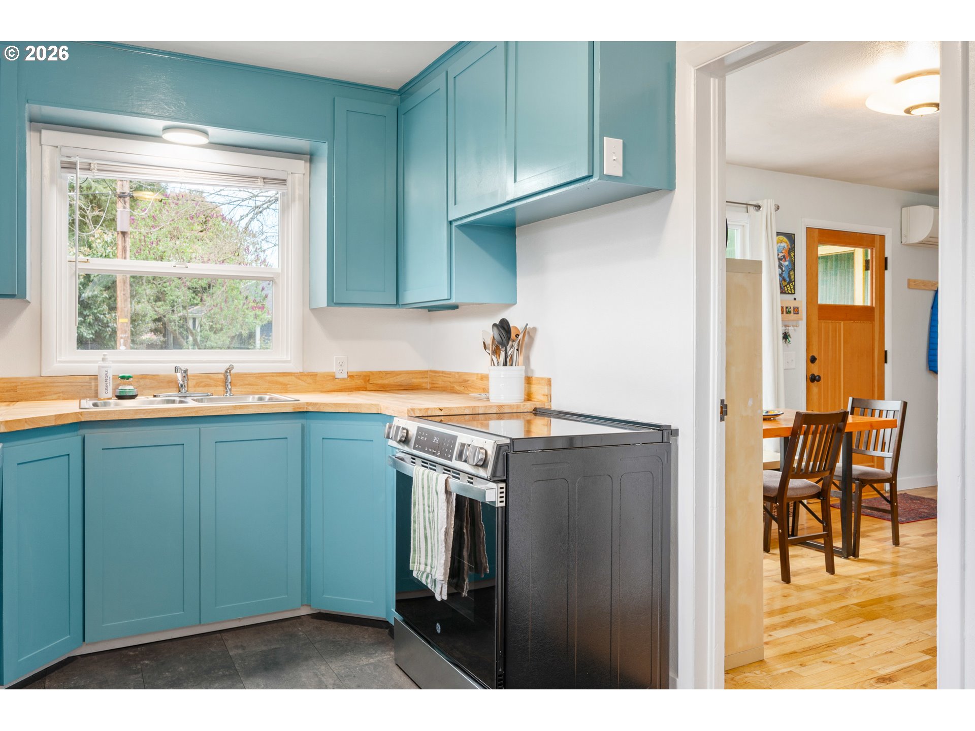 Inviting cottage in a prime and very private location near the river, bike paths, parks, breweries, and community garden. Thoughtfully updated throughout with major improvements including roof, fencing, electrical, and more. Upgraded kitchen features butcher block countertops, new stainless appliances, and LVT flooring. New bathroom with custom tile, new vanity, toilet, and flooring. Versatile laundry room includes an additional shower and backyard access. Beautiful wood floors and cozy brick hearth fireplace add quality and charm with ductless hp and new euro wall heaters for added comfort. Large, private yard with a dedicated fireplace area and a new covered deck—ideal for outdoor living. Extra-deep garage with added concrete and electrical offers excellent space for a workshop or storage.