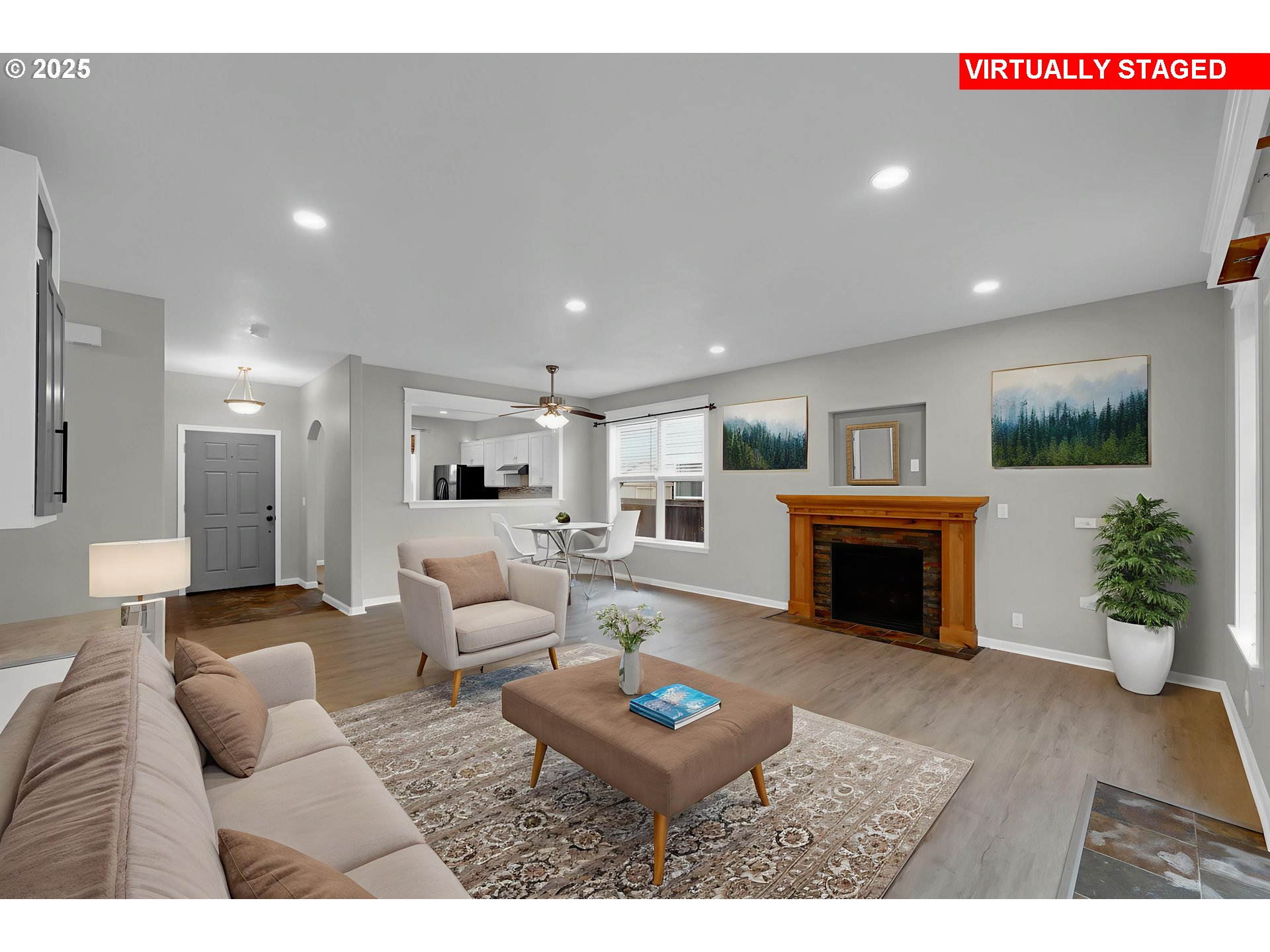 Newly updated and move-in ready on Reding Ave! This well-maintained home features extensive recent upgrades, including fresh interior and exterior paint, new laminate flooring in the living room, hallway, and utility room, updated interior and exterior lighting, new door hardware throughout, and a brand-new hot water heater. The kitchen shines with granite counters, new black stainless appliances—refrigerator with high-capacity ice maker and advanced water filtration, smart electric range with front access controls, dishwasher, and hood vent—along with granite countertops and sink.Enjoy year-round comfort with central air conditioning, forced-air heating, and gas heat pump, plus a cozy gas fireplace accented by custom tile. High ceilings, custom window trim, and thoughtful details like a customized drawer organization system with soft-close drawers in the main bath elevate the living spaces. The primary bedroom offers a walk-in closet.Outdoor spaces are equally inviting with new sod in the front yard, refreshed landscaping with bark, flowers, and decorative rock surrounding the water feature, underground sprinklers front and back, and updated exterior lighting. Additional features include an enclosed patio, large shed, and custom tile at the front entry, sliding glass door, and fireplace. A fantastic combination of style, comfort, and quality updates—this home is ready to impress.