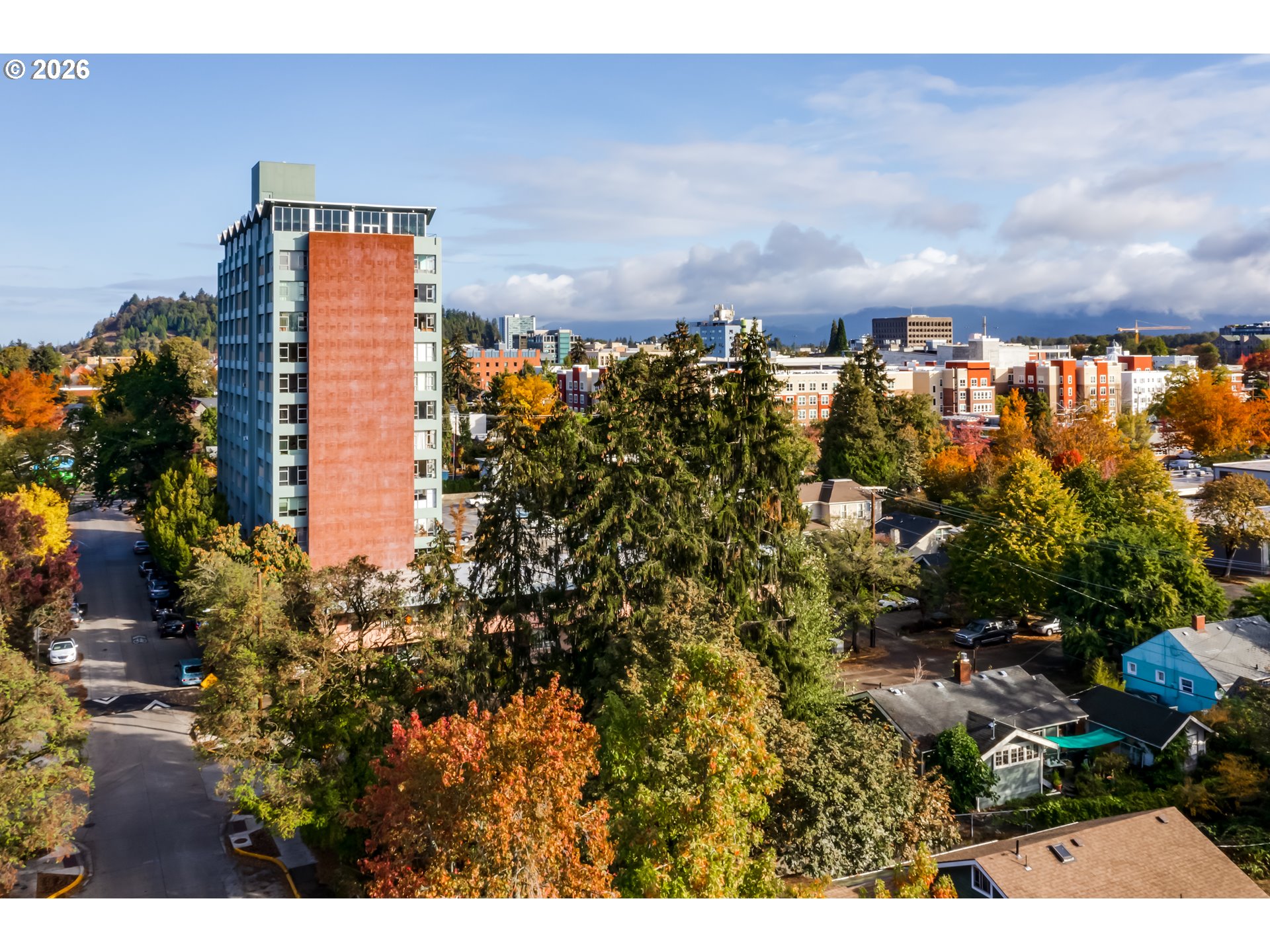 Find your new home at Willamette Towers! This midcentury modern unit sits on the 4th floor, offering beautiful views of the mountains while still being in the heart of Downtown Eugene. Unit 401 features an open floor plan with laminate flooring, an updated bathroom with tile shower, and a long hall length closet for ample storage. Willamette Towers is a secure building with deeded parking spaces in gated parking area. The HOA fee covers exterior maintenance, on-site management, water, sewer, hot water and garbage. Don't miss this great oppertunity for a rental or student housing and is close to the UO, bus station, shops, and restaurants!