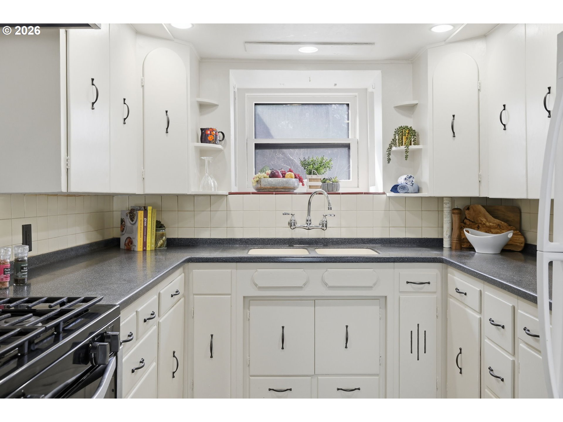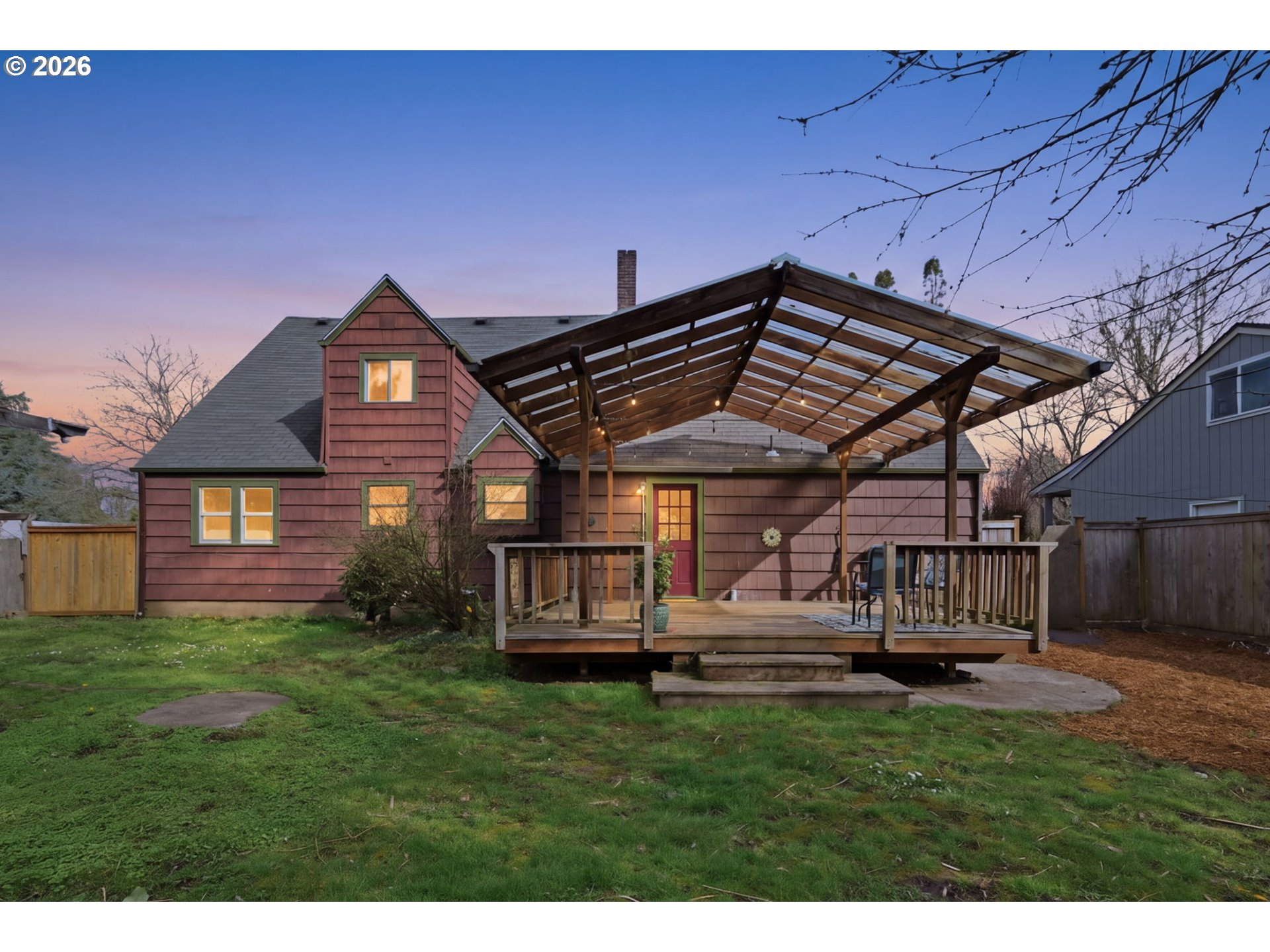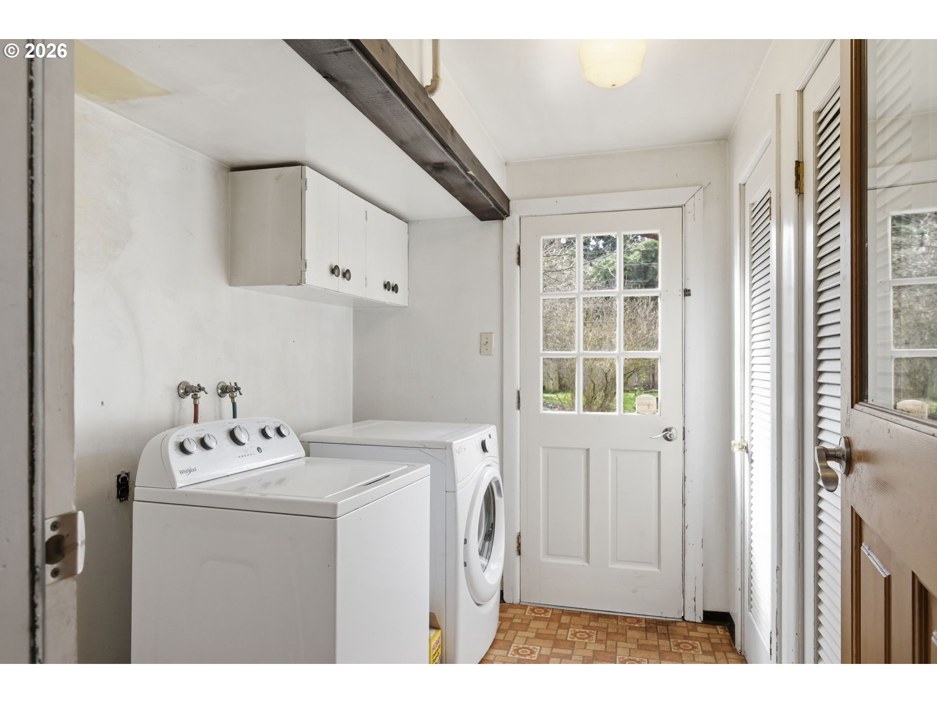 (503) 893-8874OPEN Sat 1-3 pm! Lovely 4-bedroom vintage with bright generous living spaces and character situated on rare .41 acre lot in quiet River Road neighborhood. Step through an arched entryway where warm wood floors invite you into an open and oversized living room with large, bright windows, coved ceiling, bay window seat, and woodstove insert. Another archway leads into the formal dining room with side entrance, plus eating area, kitchen, office/util, and laundry, with access to the garage and upper-bonus room (not incl in sq ft). A unique hall of closets in the center of the home creates good separation between the spacious main-level bedrooms and the rest of the home, and buffers the staircase leading up to an open lodge-styled living area highlighted by a plethora of built-ins and charming wood accents. Adjoined by two large bedrooms and full bathroom, this upstairs suite of rooms offers a multitude of opportunities for extended living or other uses. Forced-air gas heat, lots of fresh new interior paint downstairs, new vinyl flooring in the kitchen, eating area, and office nook, recently re-stretched carpet upstairs, plumbing for utility sink, plus stylishly updated main-level bathroom with slate floors and clawfoot tub add to the appeal. A large, custom-covered deck creates a special outdoor space that greatly extends your living area and provides a peaceful, pleasant setting for listening to songbirds, enjoying a meal, or planning those projects in a backyard big enough to garden, entertain, raise some baby chicks, pitch a pup tent, get a pup! Greenhouse, tool shed, chicken coop, (plus irrigation well and fishpond unused by current owner) add to the possibilities. Truly a gem of a location! Established friendly neighborhood is a little pocket of country-like quiet, down a no-thru street, just two streets from Emerald Park, offering quick access to downtown and the convenience of nearby schools and shopping. A world of possibilities. Your world.