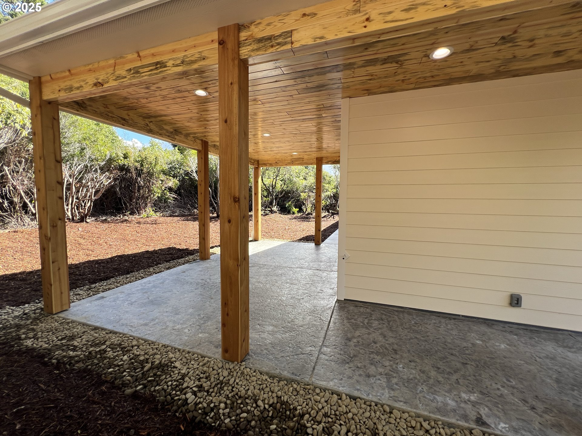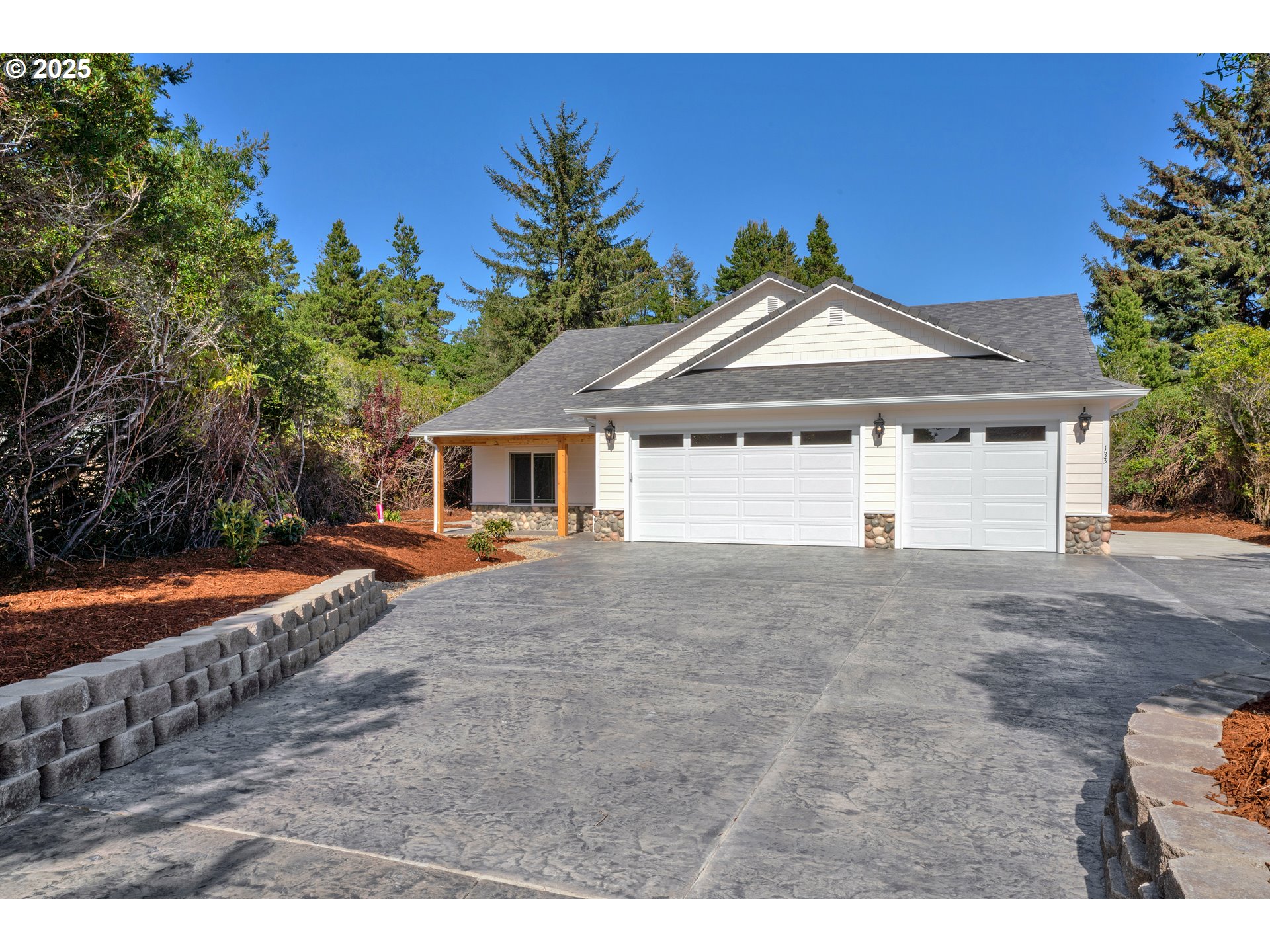 New construction in Shelter Cove. 2,120 sf, 3-Bedrooms, 2-Bathrooms with an oversized 3-car garage, and the addition of a RV/boat parking pad on 0.43 acre. The builder carefully designed the home with an element of separation and elegance. No open living concept. The foyer is open and grand setting the stage of the efficient layout. Finishes of include coffered ceilings, LVP and tiled flooring and glass like painted trims. 11ft ceilings accented with coffered ceilings in the dining and foyer. The versatility of the 3rd bed/office/library is accessible by bay doors for added privacy with separation from main living area. The oversized open kitchen will please the most particular chef with an open spacious walking area, 9’ ceilings, ample countertop area, painted cabinets with soft close drawers and a large walk-in kitchen pantry with a 2nd separated pantry included for appliance storage. En-suite offers dual sinks, a very large linen closet with a tiled zero step walk-in shower for ease. The oversized garage is finished with painted and textured sheetrock. Entertain or relax on the oversized wrapped covered concrete patio finished with stained wrapped beams and tongue and groove sealed blue pine ceilings. Enjoy the Oregon Coast sandy beach of the Siuslaw River/North Jetty by a maintained deeded access offered to Shelter Cove residents, conveniently located across the street!