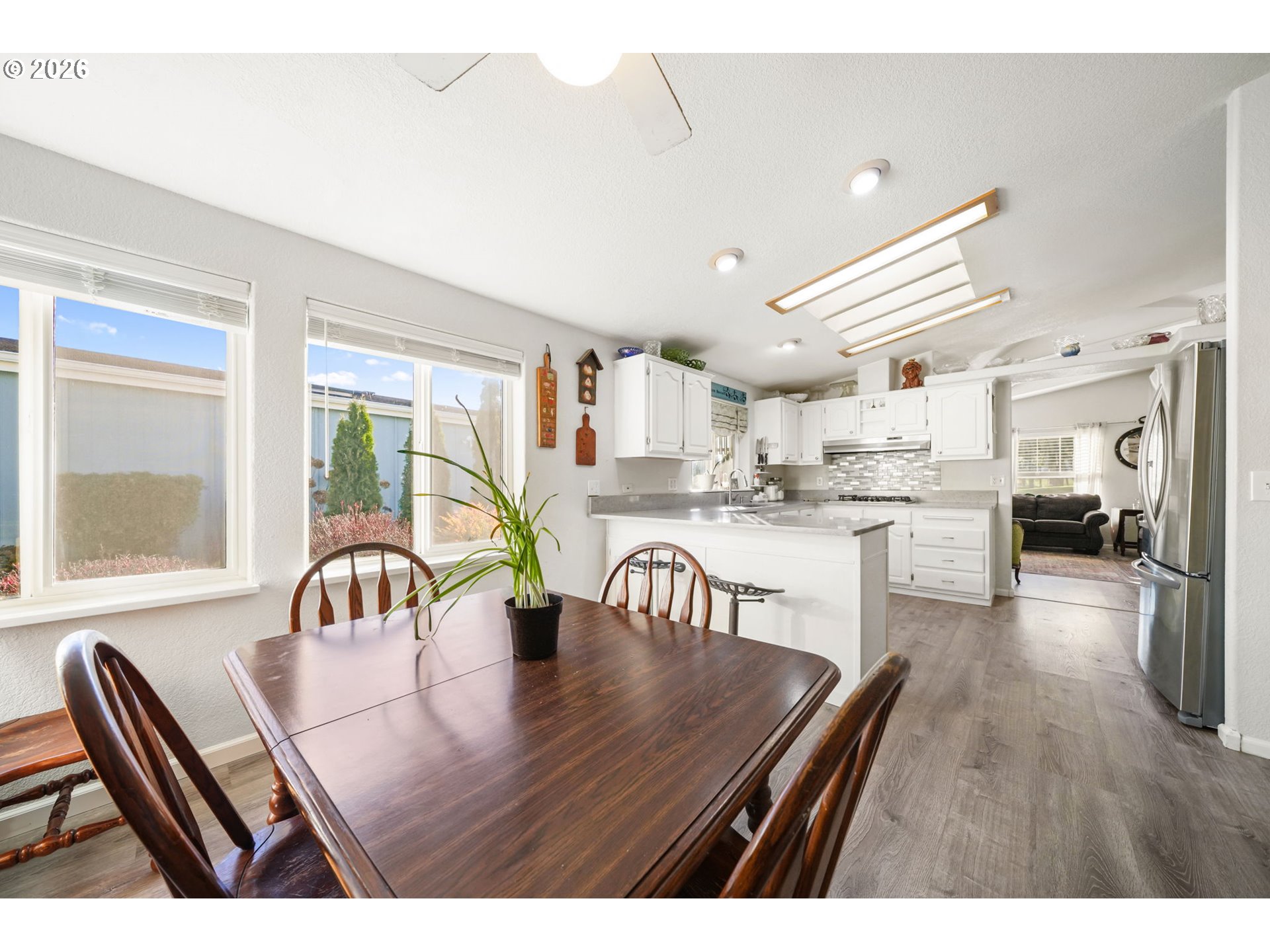 Welcome to easy living on the fairway! This light-filled, tastefully updated Silvercrest triple-wide sits directly on the golf course in Middlefield Estates, one of Cottage Grove’s most sought-after 55+ communities. Step inside to find modern finishes throughout—new flooring, fresh paint in and out, stainless appliances, quartz counters, updated plumbing, gas furnace, water heater, and central air for year-round comfort. The open living room invites you in with generous windows and a cozy gas stove. Wake up to serene golf course views from the primary suite, complete with a walk-in closet, plus another walk-in closet in the ensuite, double vanities, and a double shower. The bright kitchen offers a gas cooktop, updated oven, breakfast bar, eating nook, and stainless steel appliances. Both bathrooms have been refreshed with contemporary upgrades. Out back, unwind or entertain on the partially covered deck overlooking the fairway. The fenced yard features sprinklers and raised beds—ideal for gardening. A two-car garage provides convenience and extra storage. Minutes to Cottage Grove Hospital, Cottage Theatre, shops, dining, and transit—this is low-maintenance living with comfort and charm. Shown by appointment only call your broker today to schedule a private tour!