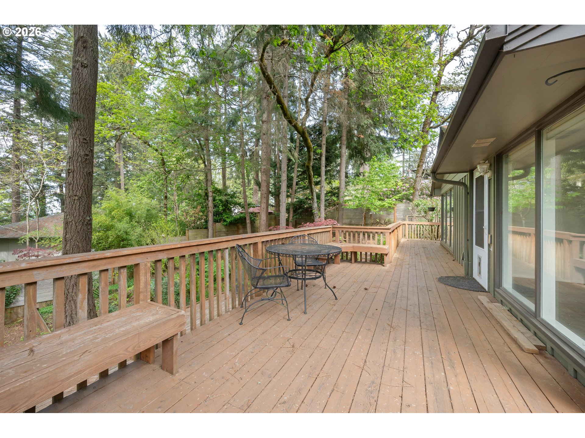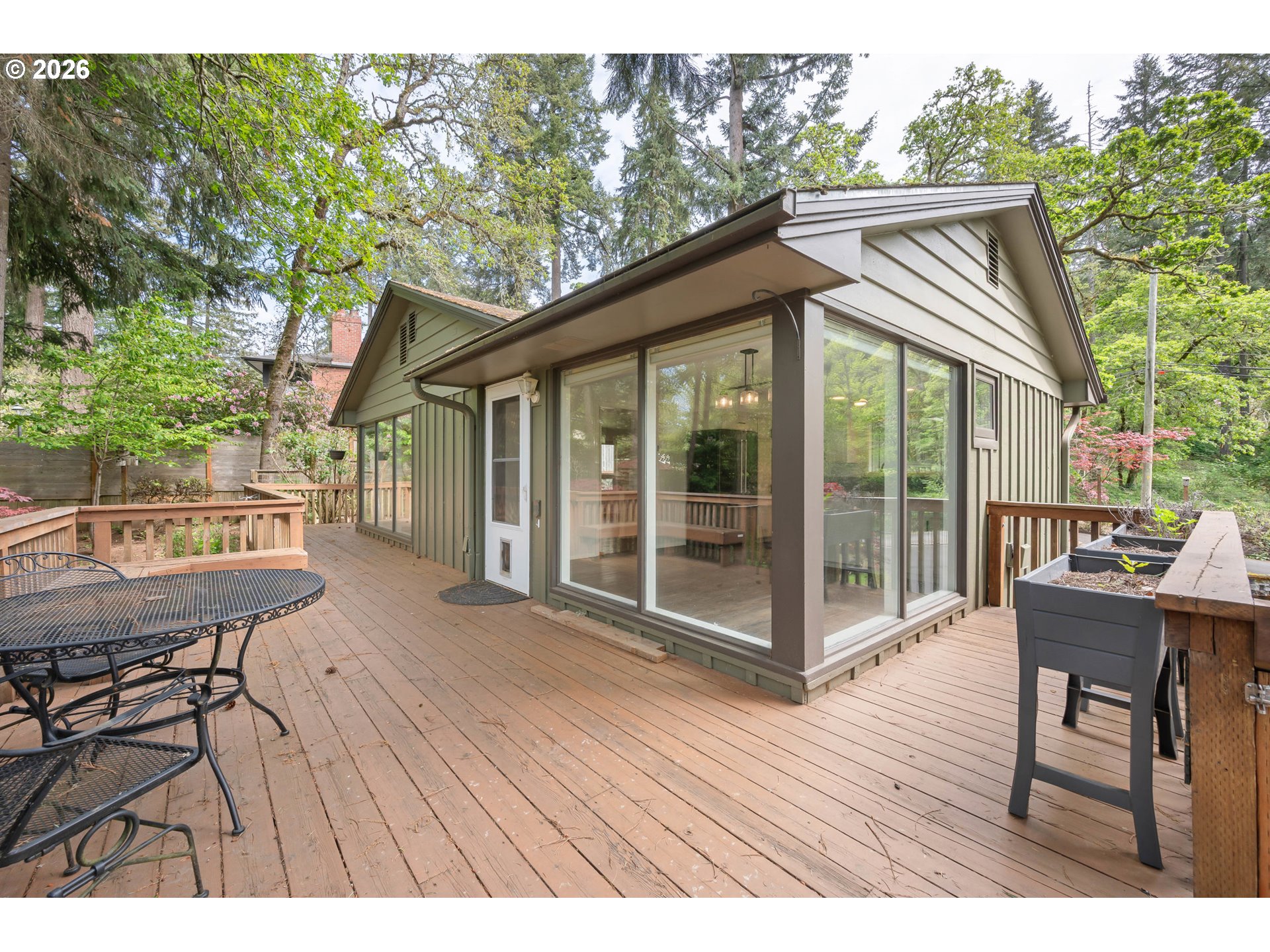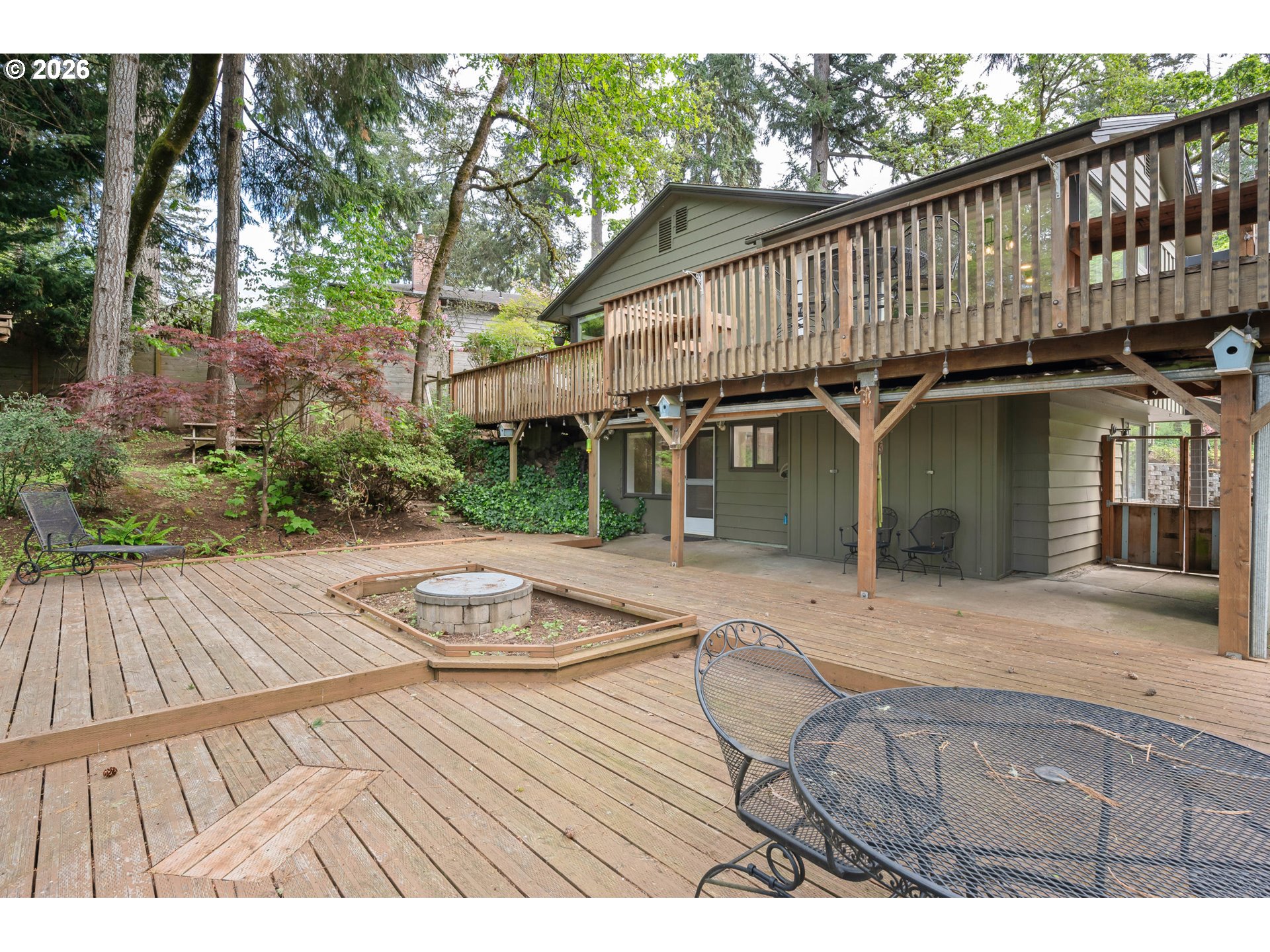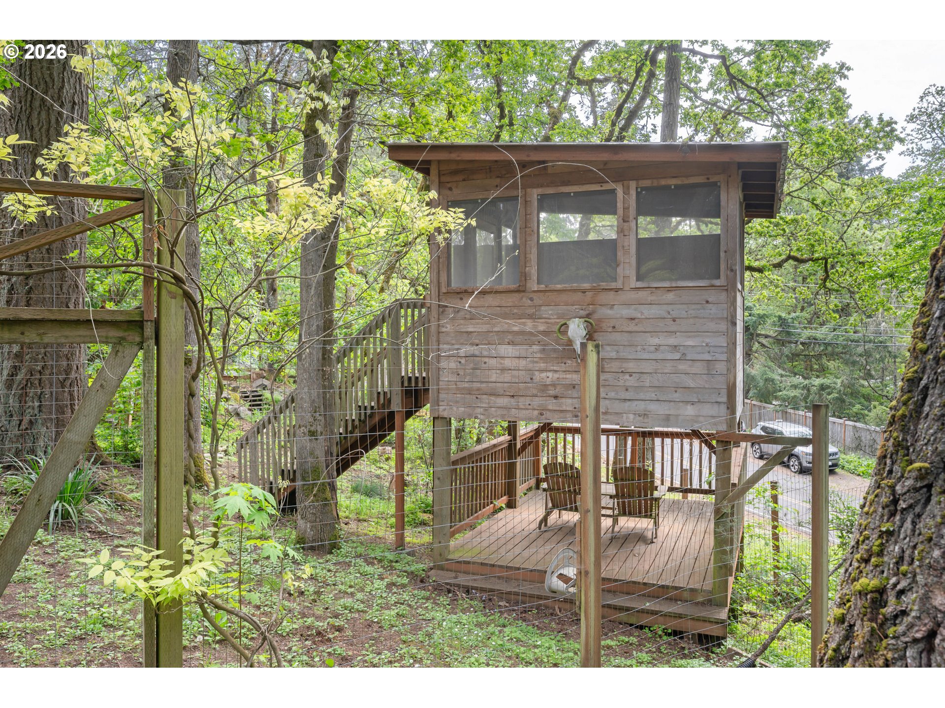 (503) 893-8874Quintessential Pacific Northwest mid century retreat set on a private .45 acre parcel in the heart of South Eugene. Expansive floor to ceiling windows capture seasonal light and forested views, creating seamless indoor outdoor living. The split level design delivers functional separation with bedrooms and living areas on both levels, ideal for flexibility, guests, or multigenerational use. A daylight lower level with separate access enhances livability and privacy. The primary suite opens to a covered deck, creating a quiet vantage point over the surrounding landscape. Outdoor spaces are designed for use and enjoyment, with multiple decks and patios that extend the living area into the natural setting. The grounds offer a rare combination of usability and privacy. Gated access leads into a secluded setting with mature trees, open space, a poultry coop, and an elevated playhouse tucked into the landscape. The lot feels like a private retreat while remaining close to city amenities. Additional features include a segregated garage for parking, shop, or storage use, wood burning fireplace, hardwood flooring, and classic architecture. A rare opportunity to own a true Eugene mid century property that delivers privacy, scale, and authentic Pacific Northwest character!