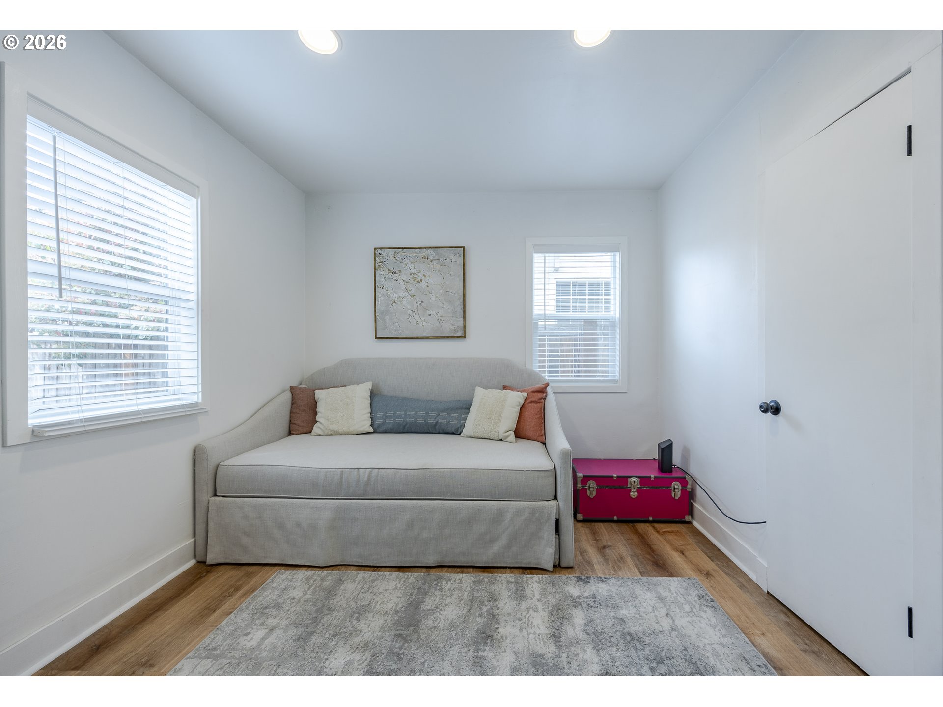 Charming, updated 2-bedroom, 1-bath cottage featuring thoughtful upgrades throughout. The stunning kitchen boasts newer cabinetry, warm butcher block countertops, black stainless steel appliances, and a cozy dining nook—perfect for everyday living. Refinished fir hardwood floors add warmth and character, complemented by abundant natural light that fills the home. Over the past several years, updates include a newer water heater, vinyl windows, a newer roof, and an efficient ductless heating and cooling system for year-round comfort. Move-in ready and full of charm, this home offers the perfect blend of modern updates and classic character. Reach out to schedule a showing-this one won't last!