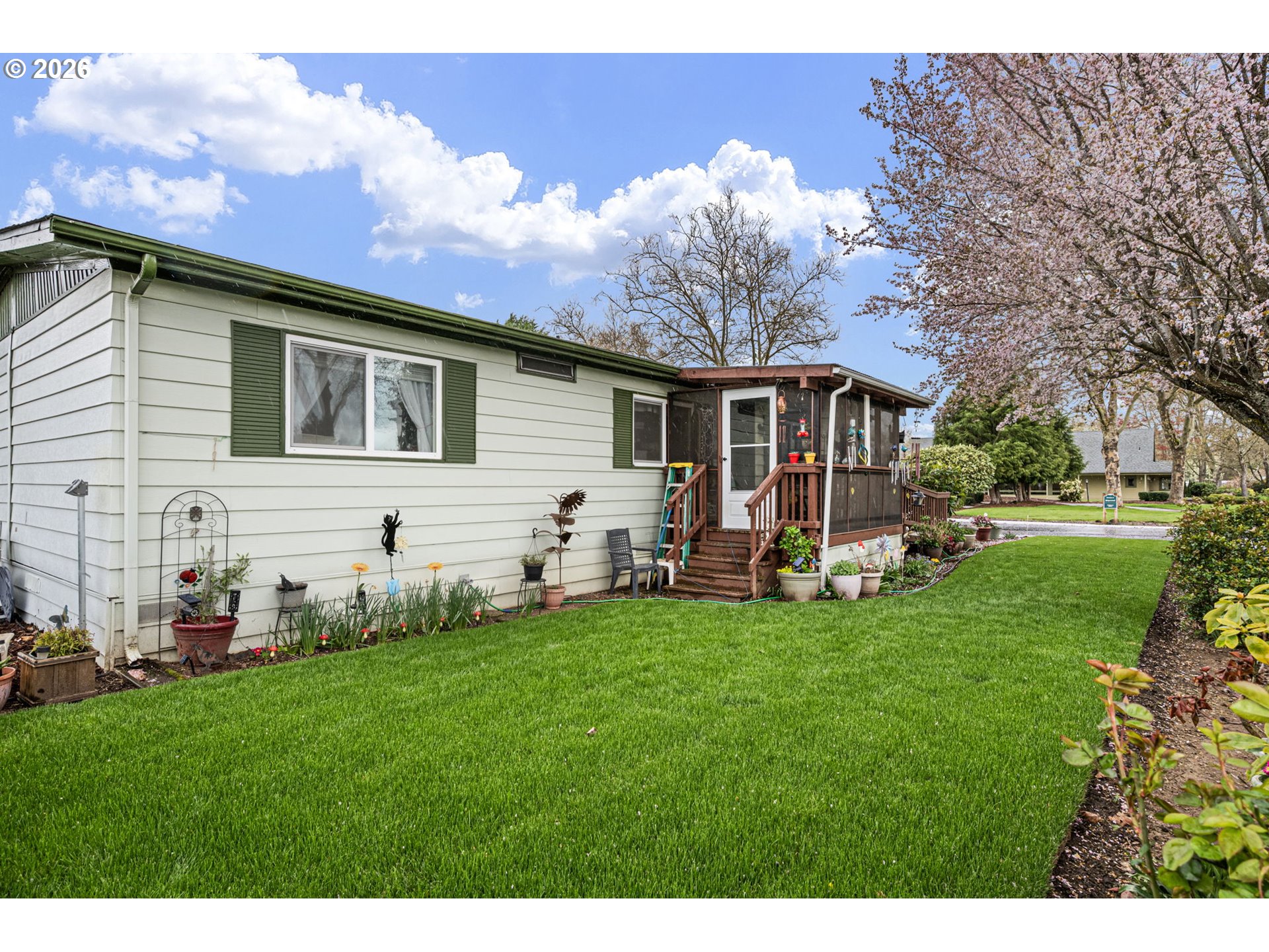 Welcome to easy living in the gated 55+ community of Briarwood in Eugene.This beautifully updated home sits on a premium corner lot directly across from the clubhouse, giving you peaceful park views and convenient guest parking just steps away. Inside, the layout has been thoughtfully redesigned to create an oversized primary suite, originally a three bedroom, now converted into a spacious retreat with a private bath and additional sitting or TV area.Major updates have already been handled, so you can move in without the to do list. The home features a new roof in 2025, updated plumbing, newer carpet, hardwood flooring, and a refreshed kitchen with painted cabinetry, updated lighting, and a new ceiling fan. Even the exterior has been dialed in with brand new grass just installed.Located in one of Eugene’s sought after gated 55+ communities, Briarwood offers a quiet, well-maintained setting with amenities including a clubhouse and park like surroundings. Bonus, large dogs are welcome, which is rare in many communities.If you’re looking for low maintenance living, modern updates, and a location that feels both private and connected, this one checks the boxes!