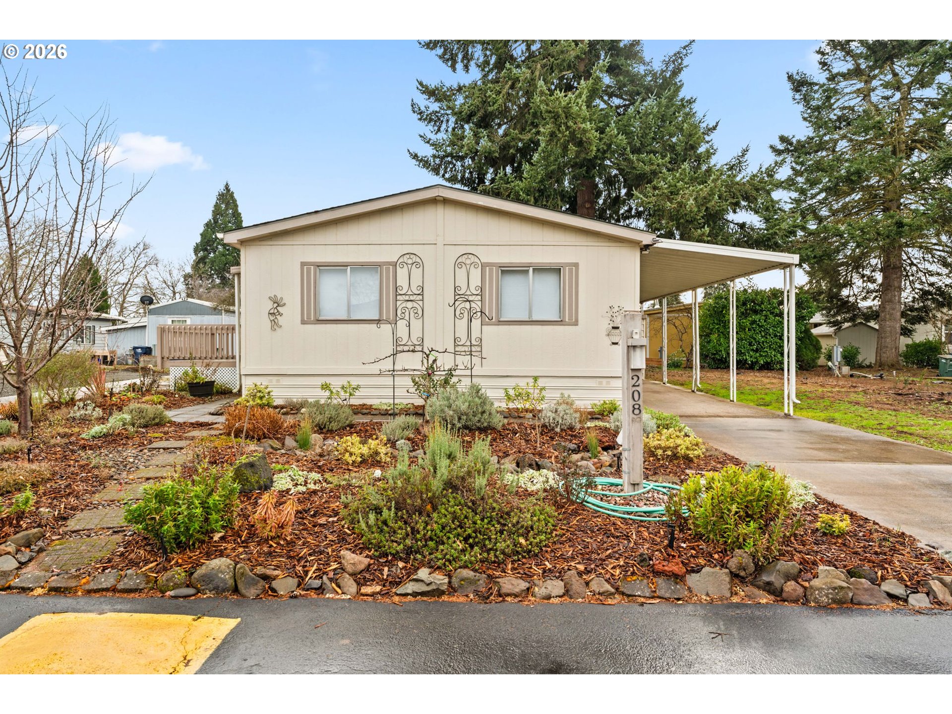 ** OPEN HOUSE** This Saturday, April 4th, 1:00PM - 3:00PM. Seller bought the home for $91,500 in 2023. This charming 2 Bedroom, 2 Bath Skyline home is located in the highly desirable 55+ gated Briarwood Park community. Enjoy the comfort of spacious vaulted ceilings in the living and dining area, a bright kitchen with refrigerator and range included, and a primary suite with an ensuite bathroom and a walk in shower The home features new lighting throughout, updated bathrooms with newer faucets, toilets, fixtures, carpet, and a newer HVAC system to keep the temperature comfortable year-round. The fully landscaped yard includes herbs, an irrigation system, and is designed for easy maintenance. Garden lovers will have to come see it in person! The low space rent is only $725.95 a month, which includes trash service. Briarwood Park offers a true leisure-living lifestyle with access to a clubhouse, pool, hot tub, tennis courts, recreation facilities, organized activities, and a dog park.