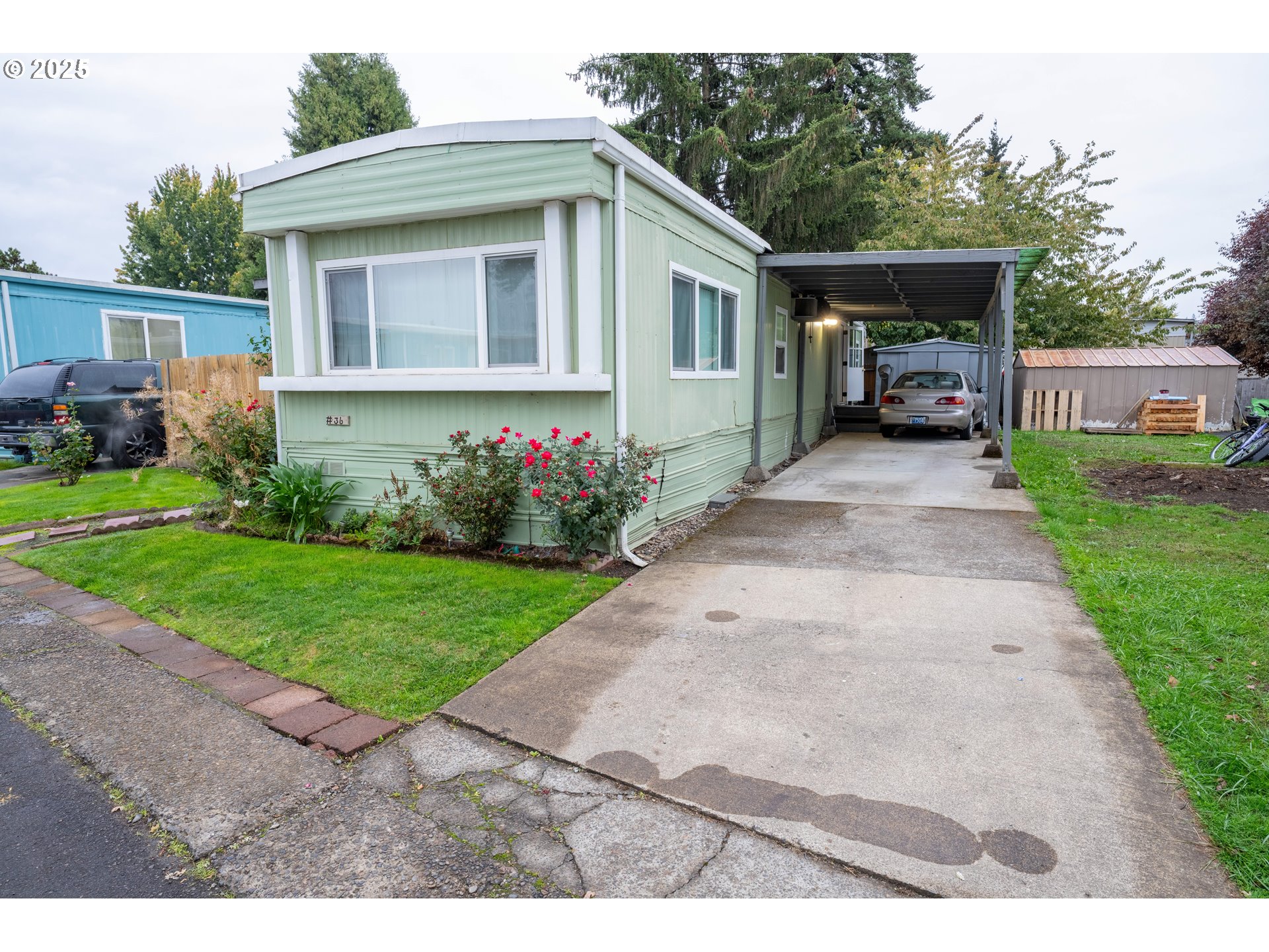 Welcome to Churchill Meadows, one of Eugene's few affordable family parks! This charming home features numerous upgrades and is move-in ready for you to enjoy. It has waterproof LVP flooring throughout, a modern, spacious kitchen, and an inviting dining and living area. Plus, there's a bonus storage shed in the backyard. Fully fenced, spacious yard. Contact your agent to schedule a showing today! Please note, unit size is approximate. Buyers should perform their own due diligence.