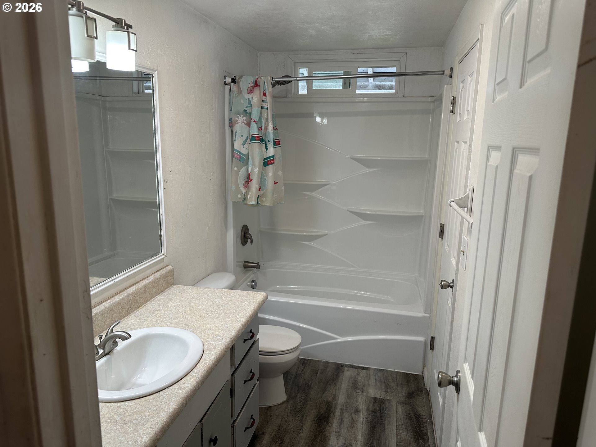 Updated home tucked away on a flag lot offering a quiet, secluded setting just moments from shopping, dining, bus lines, and everyday amenities. This well-maintained older home blends original charm with thoughtful updates completed over time, including a ductless heat pump, new garage door, covered front porch/deck, and new flooring throughout. Roof was new in 2018.Inside, you'll find double-pane vinyl windows, stainless steel kitchen appliances, two full bathrooms, and a versatile dining area off the kitchen that can accommodate a large table or serve as additional living/flex space. The main bath features a tub/shower combo, while the second bath offers a walk-in shower.Outside, enjoy a fully fenced yard with generous side-yard space, a shaded paver patio seating area, and walkway access to the side yard. Plenty of parking options with an attached 2-car garage, driveway parking, plus additional space for extra vehicles and/or RV parking along the front fence. A rare combination of privacy, convenience, and functionality.