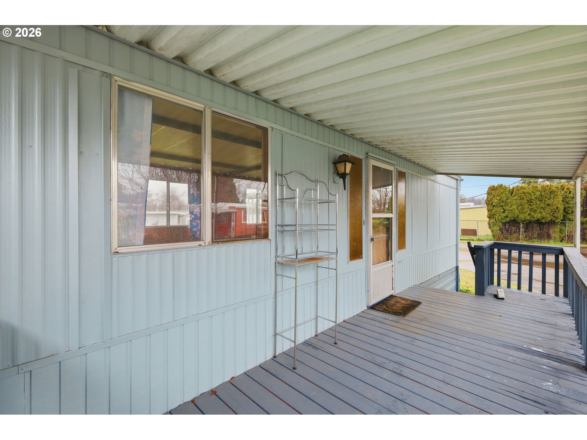 Nice, clean and well cared for affordable home in Rio Linda Estates. This is a 1977 single wide home with 2 bedrooms and 2 bathrooms. RLID lists this home as 924 square feet. Spacious living room and kitchen. Sale includes refrigerator, washer and dryer. Nice size primary bedroom with attached bathroom with stand up shower and garden tub. Second bedroom has built in shelves and desk and connects to main bathroom. Indoor utility room, covered deck, and tool shed. Convenient location, just minutes to downtown Cottage Grove. Sale subject to park's approval of buyer. Here is a link to the rules and regulations of the community: https://www.riolindaestates.com. Property is space 24.