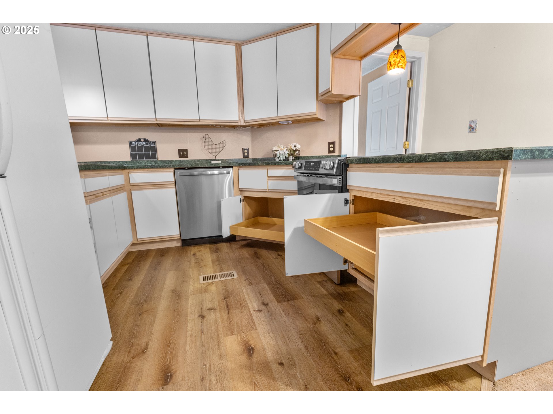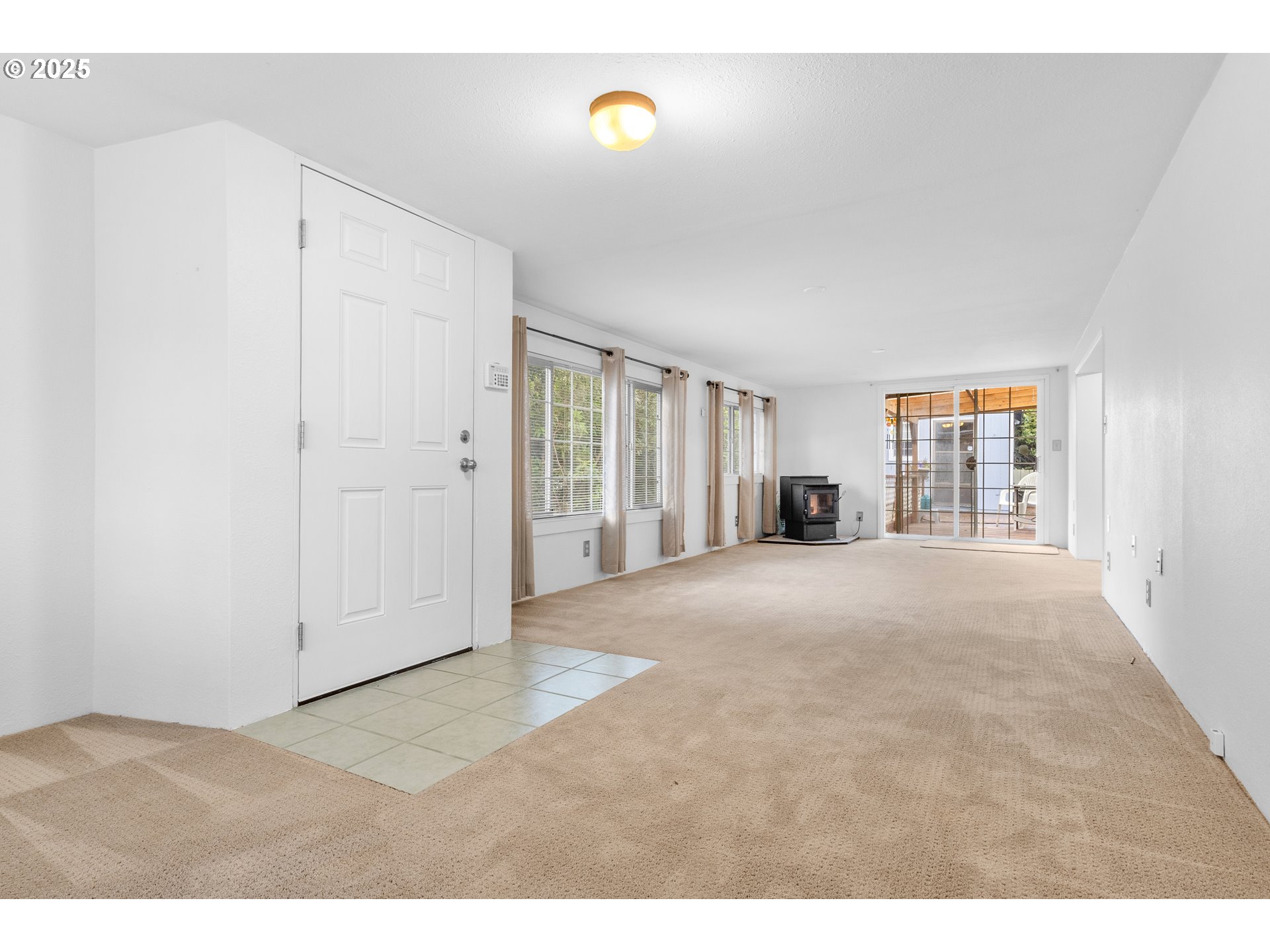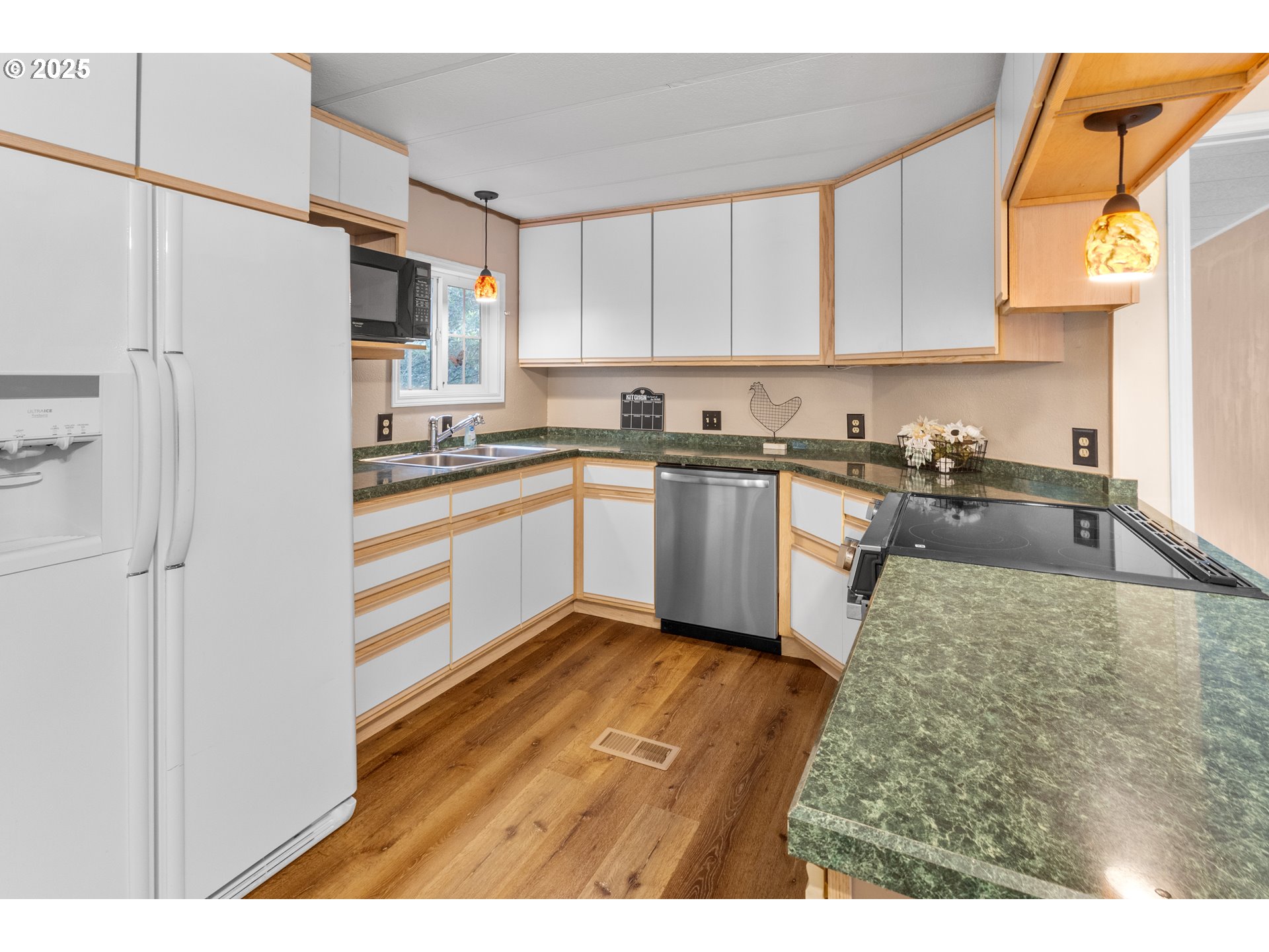 Welcome to this inviting home in the sought-after Greentrees 55+ community, just a short stroll from the clubhouse. Surrounded by trees, the setting feels private and peaceful while still offering the convenience of community living.Inside, the spacious 3-bedroom, 1-bath layout has been thoughtfully refreshed with new interior and exterior paint and freshly cleaned carpets. The light-filled living room features a cozy pellet stove—perfect for coastal evenings. The main heating system is forced air, just five years old and in excellent condition, providing efficient comfort year-round.The kitchen includes brand-new appliances, ample storage, and a dining area with charming built-in cabinetry. A washer and dryer are also included, making this home move-in ready from day one.Step outside to a covered deck that extends your living space into the fresh coastal air. A workshop and storage shed provide room for hobbies, tools, and projects, while the private driveway and established landscaping add to the home’s appeal.Residents of Greentrees enjoy exceptional amenities, including a clubhouse with an indoor pool, tennis courts, billiards, and gathering spaces for community events and activities.This home combines modern updates with the welcoming atmosphere of Greentrees, offering a comfortable and convenient place to settle in and enjoy coastal living.