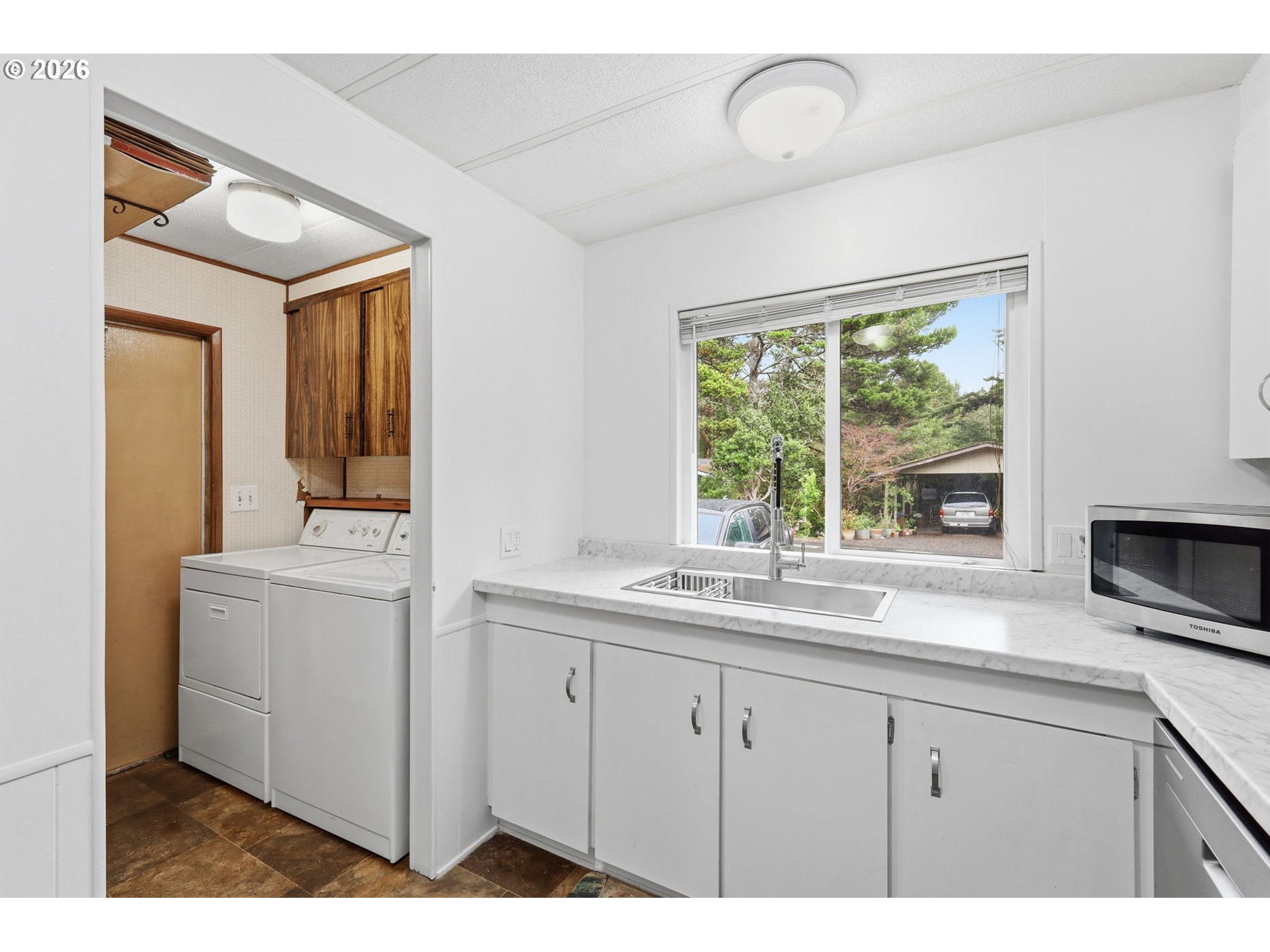You wont want to miss out on this one! Located in the highly sought-after Greentrees East 55+ community, this updated & well-maintained 2-bedroom home offers comfortable living with thoughtful updates throughout. Inside, you’ll find updated flooring and an inviting kitchen with newer counters, stainless appliances and a deep sink with a window to enjoy natural light. The primary suite has been recently updated and features updated vanity, flooring and a large step-in shower along with two closets, offering both comfort and practical storage. For peace of mind, the home also has all new pex plumbing!Outside you'll find that the large deck extends the living space outdoors and overlooks a nicely sized yard. The home sits on a generous lot, offering extra space and privacy within the community.Greentrees East is a gated community known for its quiet setting and active lifestyle. Residents enjoy access to a clubhouse, indoor and outdoor pools, a fitness room and a variety of social activities. The location is also convenient to PeaceHealth Peace Harbor Medical Center, grocery stores, restaurants and local shopping.Whether you're looking for a full-time residence or a coastal getaway, this home offers comfort, updates and access to one of the area’s most established 55+ communities.