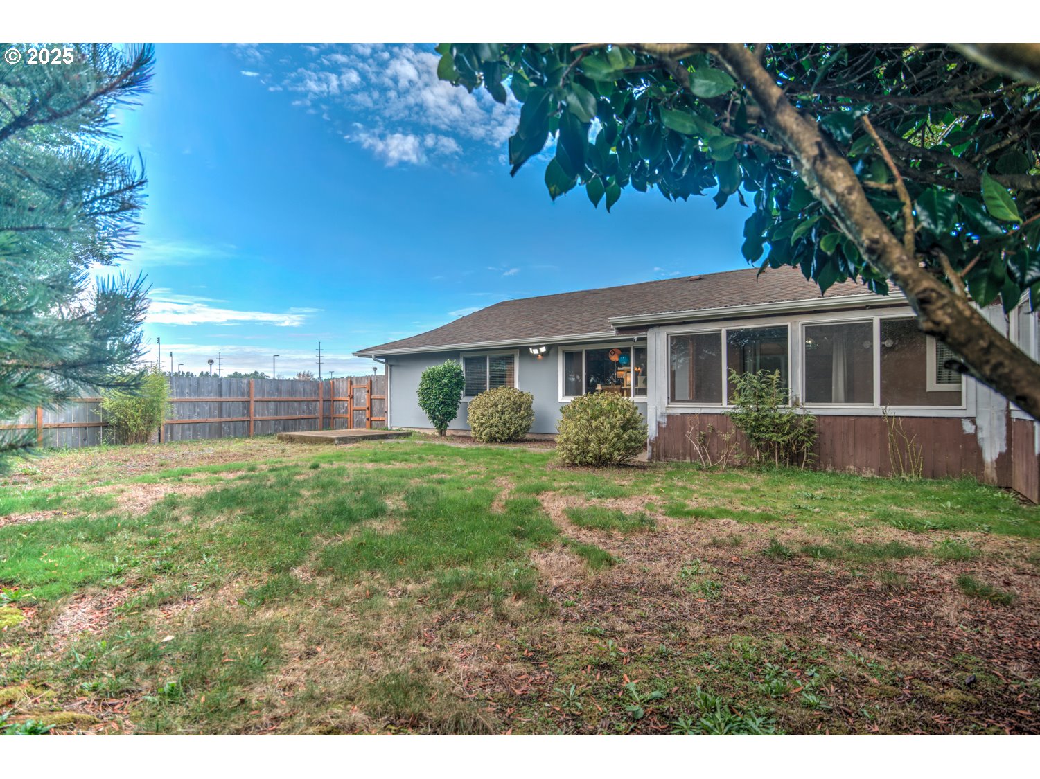 Located directly across from Siuslaw Middle School, on a roomy corner lot, this 3 bedroom, 2 bathroom home sits in one of Florence's most convenient midtown locations. Enjoy an inviting living room with elevated ceilings and a skylight that enhances the openness and brightens the space. An additional family room provides flexible space for gatherings or separate living areas. The bright sunroom offers year round space and privacy, while the fully fenced backyard is ideal for pets, gardening and a safe place for children to play. Additional features include two water heaters for busy mornings and the convenience of single-level living. Attractive rock bed landscape with trees and shrubs adds privacy and curb appeal. This is your opportunity to own and put your personal touch on a well located home in the heart of Florence!
