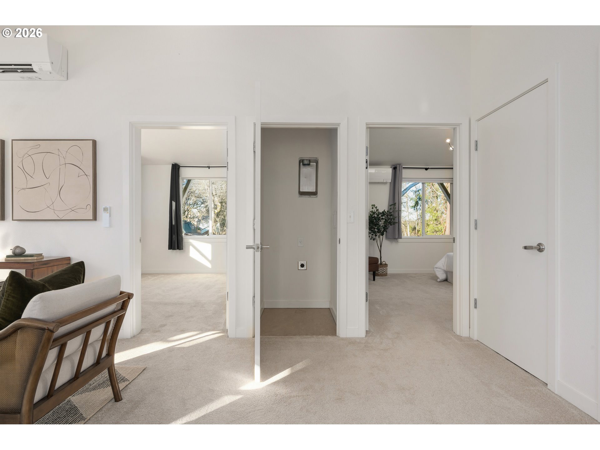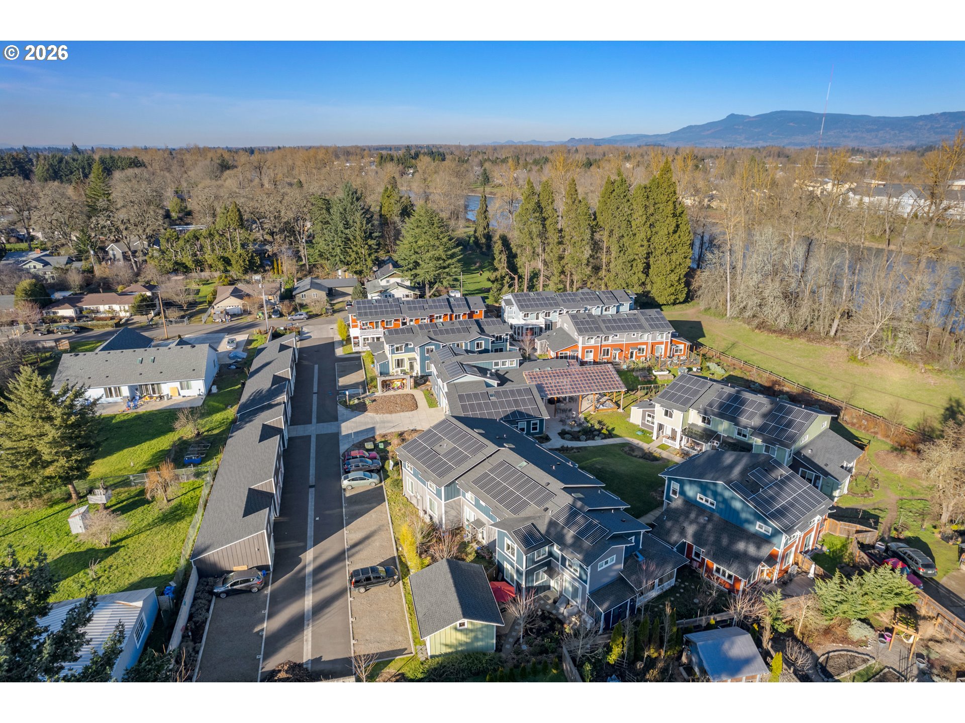 Riversong is set within a cooperative living community along the Willamette River, this home offers a lifestyle rooted in connection, simplicity, and access to nature. The emphasis here is shared stewardship and thoughtful design—where neighbors know one another, common spaces are cared for collectively, and daily life feels a little more grounded. Located on the second level, the home benefits from vaulted ceilings and an elevated perspective that brings in light and a sense of openness. Recent updates add comfort, including a new ductless heat pump for efficiency, and a renovated bath featuring a soaking tub and tile finishes. This home also includes a deeded garage. Just outside the community are bike paths, parks, and green spaces that invite walking and cycling along the beauty of the river. The heart of the community is the shared common house, which includes a dining area and full kitchen for regular community meals, gatherings, and also enjoy access to a music room, children’s play room and additional shared spaces that support connection, and everyday interaction. Cooperative ownership and HOA structure helps supporting a lifestyle with less individual maintenance-virtually covering most of your monthly expenses. riversongcohousing.org, cohousing.org.