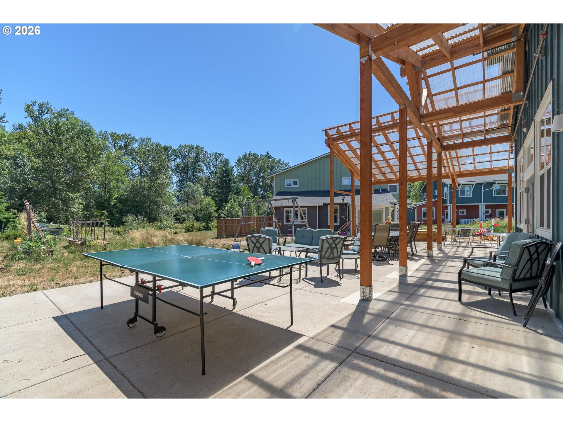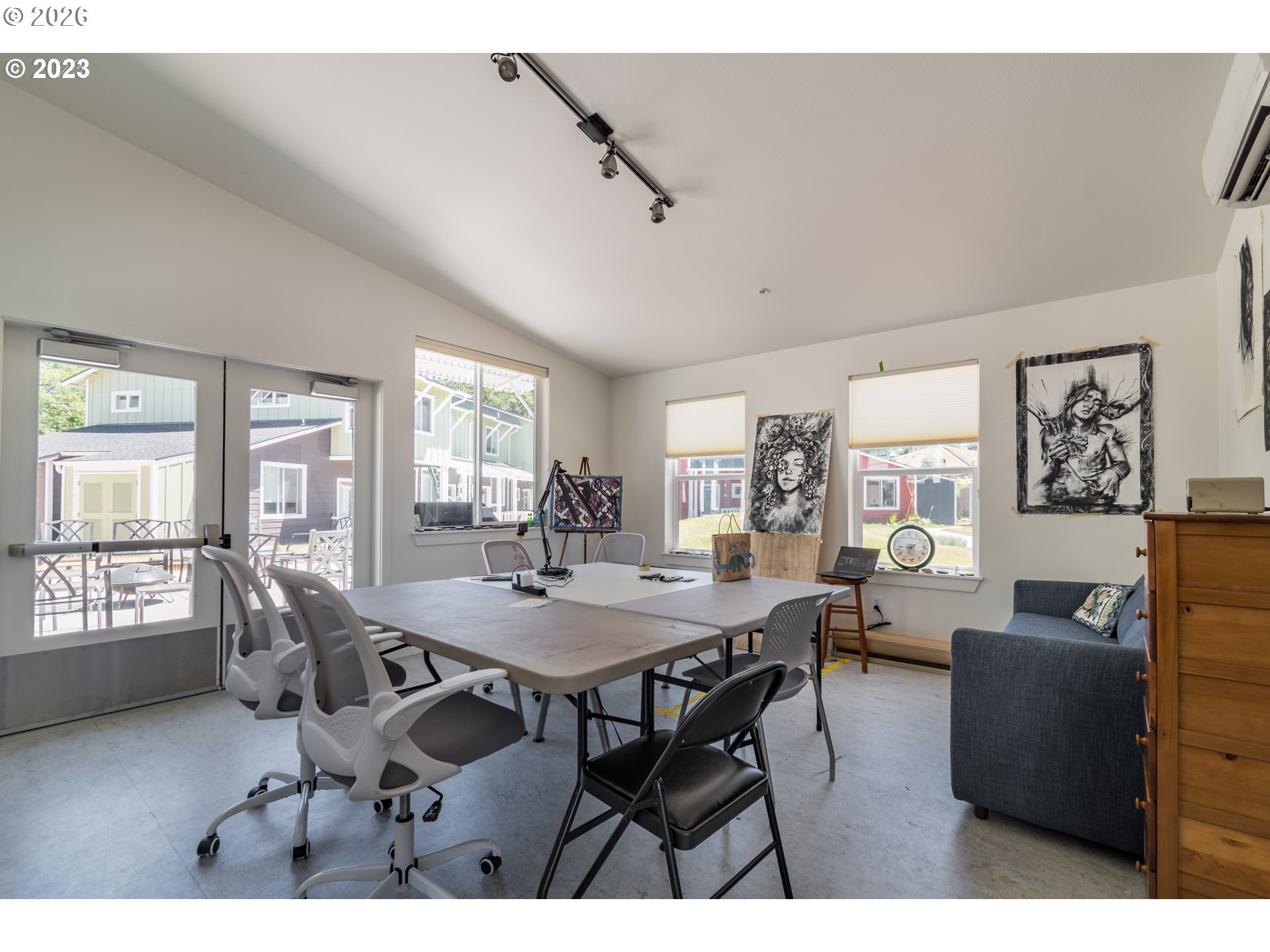 Welcome to this bright and spacious ground-level, single-level corner condominium in the heart of Eugene. This 3-bedroom, 2-bath home features an open floor plan with large windows that flood the interior with natural light. Nine-foot ceilings enhance the airy feel, while double-cell insulating blinds offer privacy and year-round comfort. Ceiling fans in every bedroom add to the thoughtful design.Both bathrooms include dual shower heads and grab bars, blending style with practical ease. The home is fully electric and offers generous closet space throughout. Step outside to a custom-fenced backyard with convenient gated access near parking, creating an easy indoor-outdoor flow. Kitchen boasts composite marble counters and open living dining design offers large windows and an open beam for warmth and style.A wrap-around porch invites morning coffee, casual conversation, and relaxed summer evenings with neighbors and friends. River Song residents enjoy shared green spaces, walking trails, and community amenities — all just steps from the Willamette River bike path. The location offers exceptional convenience with proximity to schools, restaurants, local wildlife areas, the University of Oregon, Riverbend Hospital, I-5, the Oregon Coast, and the Cascade Mountains.More than a condominium, this home is part of a thoughtfully designed co-housing community reflecting where housing demand is heading — not where it has been.Community-based living is gaining momentum nationwide. River Song offers connection without compromise: private ownership paired with shared amenities, sustainability, independence without isolation, and genuine multigenerational engagement.Come experience a different way to live. Call today for your private tour of this condominium and community and all that both have to offer.