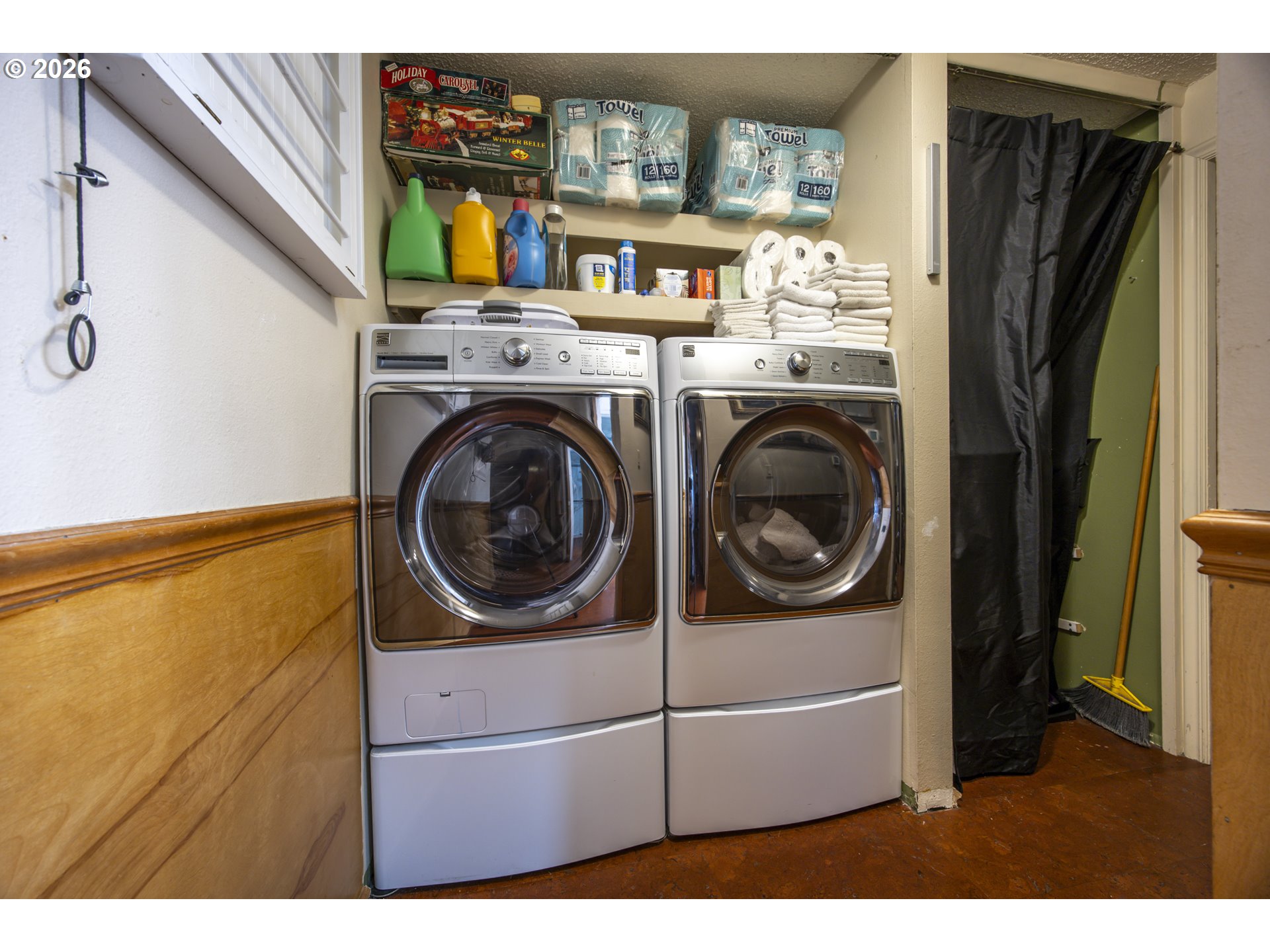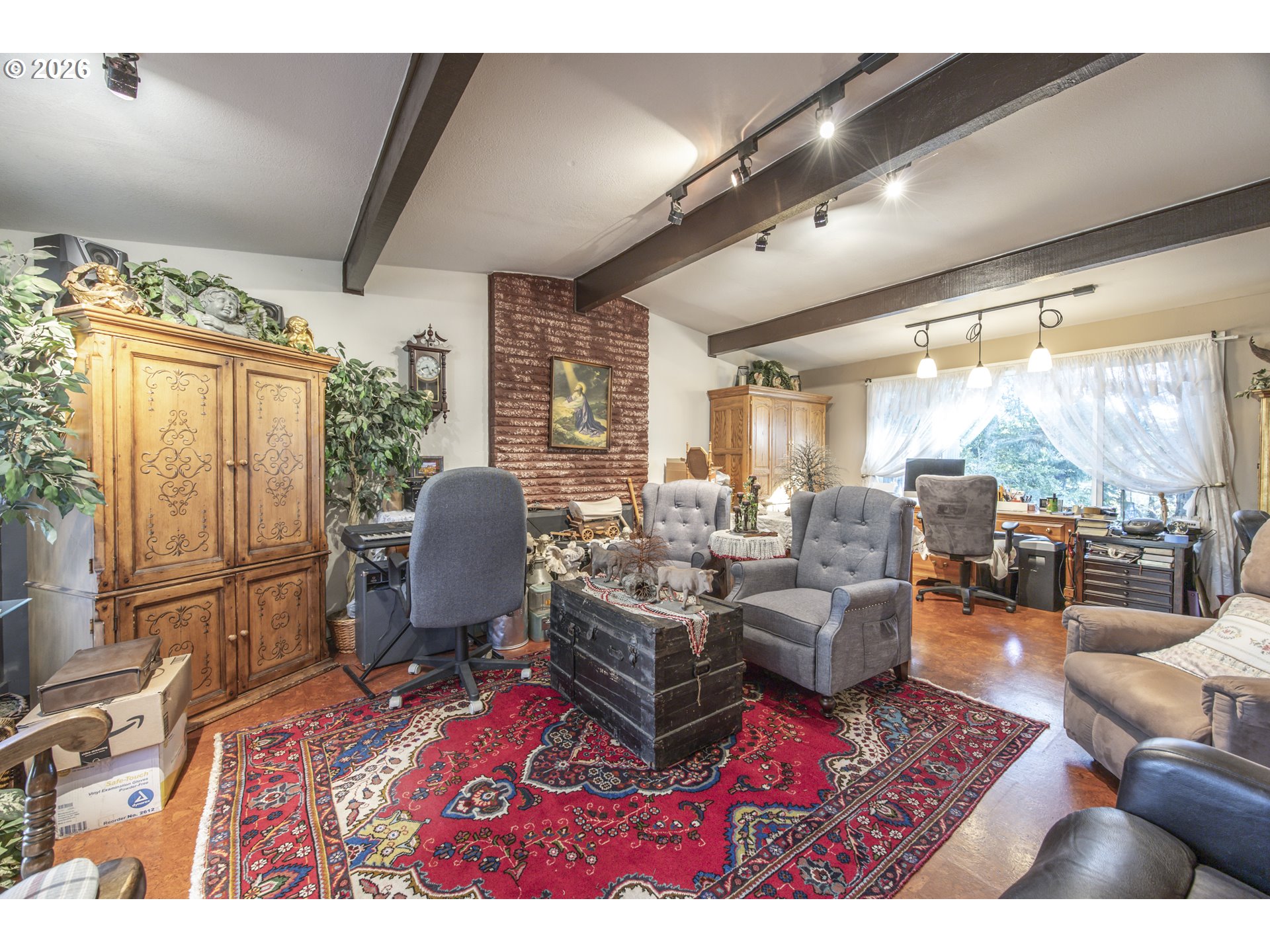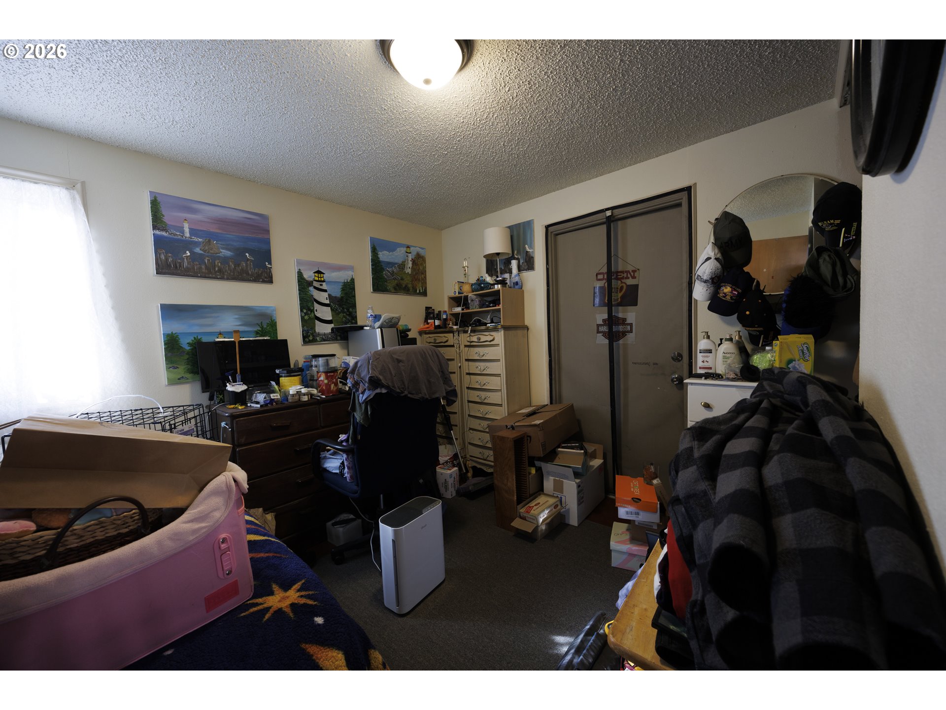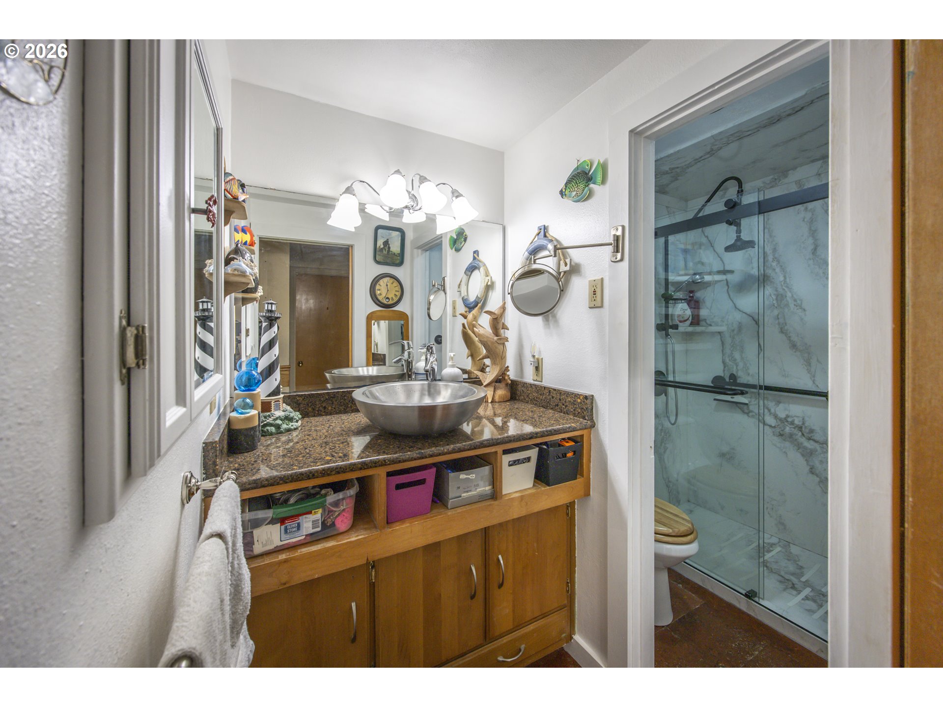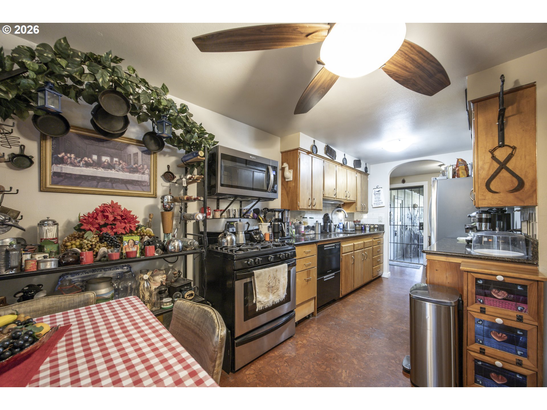 This home offers a large, enclosed private front patio just off the entry. The kitchen is appointed with wood cabinetry, granite countertops, a gas range, and a double dishwasher. Cork flooring runs throughout most of the home. The primary bedroom includes a walk-in closet, and the updated bathroom features a tiled shower. The living room is warmed by a pellet stove insert and accented with wood beam ceilings. Behind the front fenced gate, there is RV parking leading to a storage shed. The backyard is a nature lover’s retreat, overlooking Munsel Creek and featuring a charming finished studio shed with power. A bonus sunroom adds additional living space. Newer washer and dryer and all kitchen appliances are included. The covered back deck includes a steam sauna, creating a peaceful and relaxing outdoor setting.